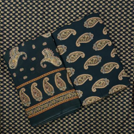 Premium Black BB Silk Kurta Fabric with Golden Embroidery – Designer Menswear Collection
