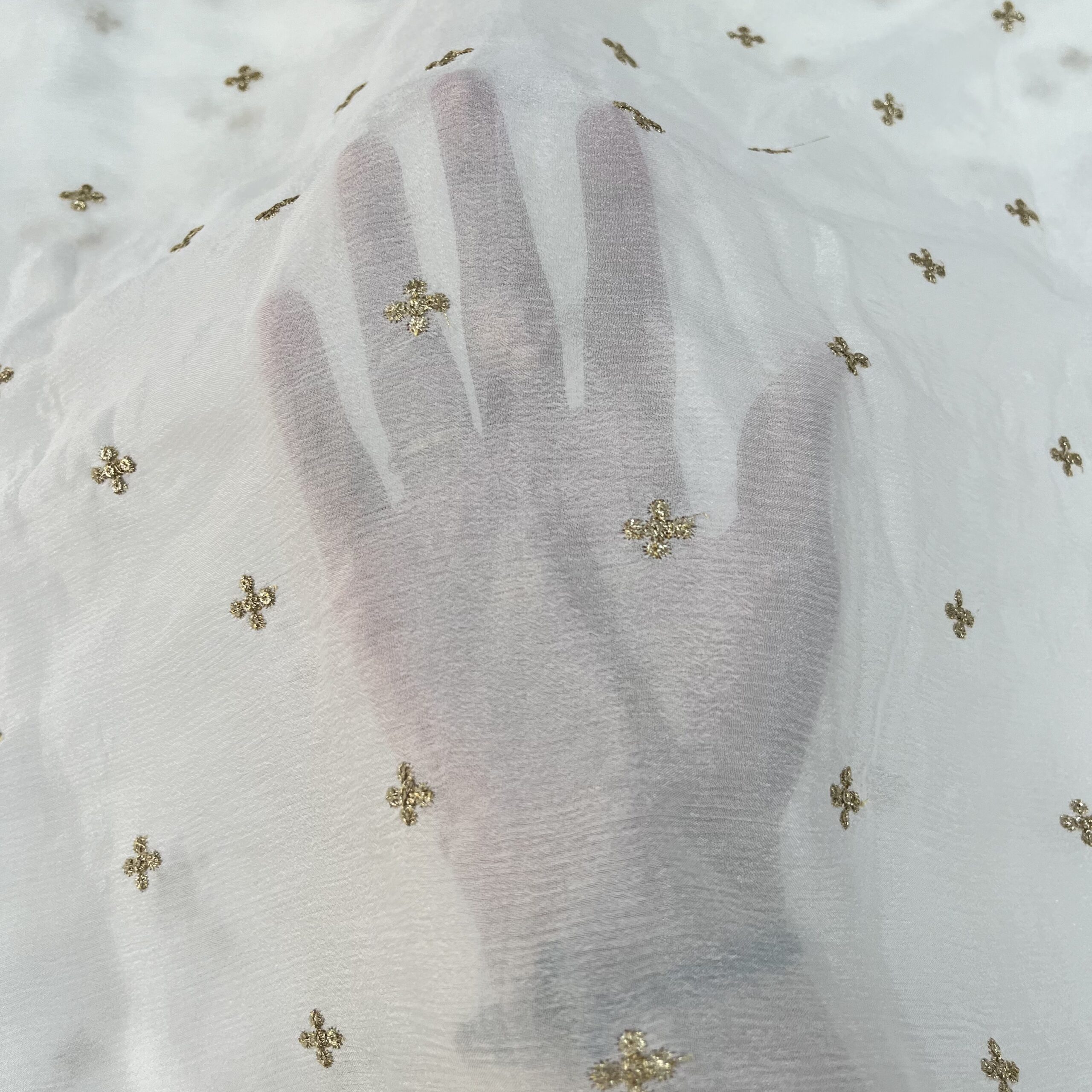 Experience the versatility of our Chinnon and Georgette dyeable butti fabric, crafted for elegance and comfort. This high-quality fabric is ideal for designing suits, lehengas, kurtas, gowns, and indo-western outfits suitable for both casual and party wear.