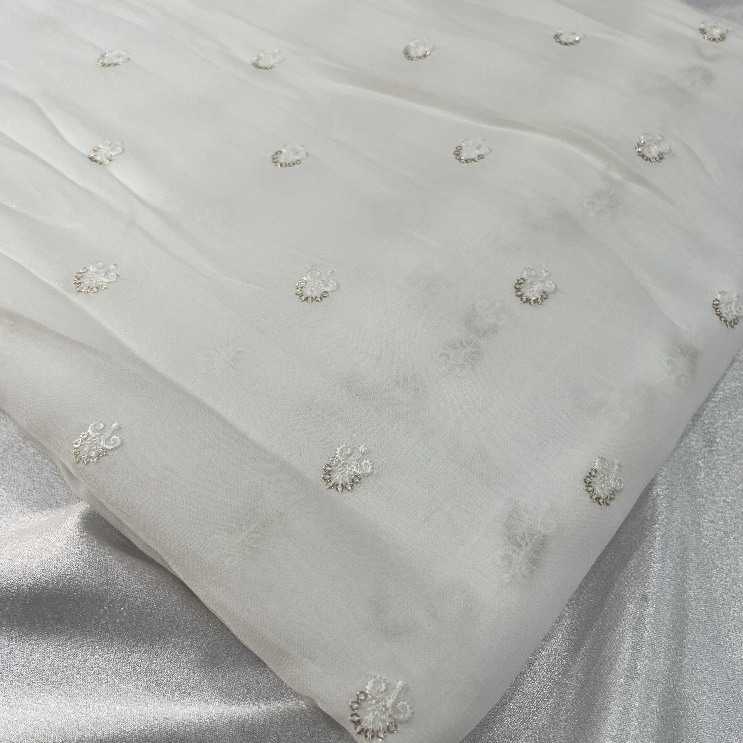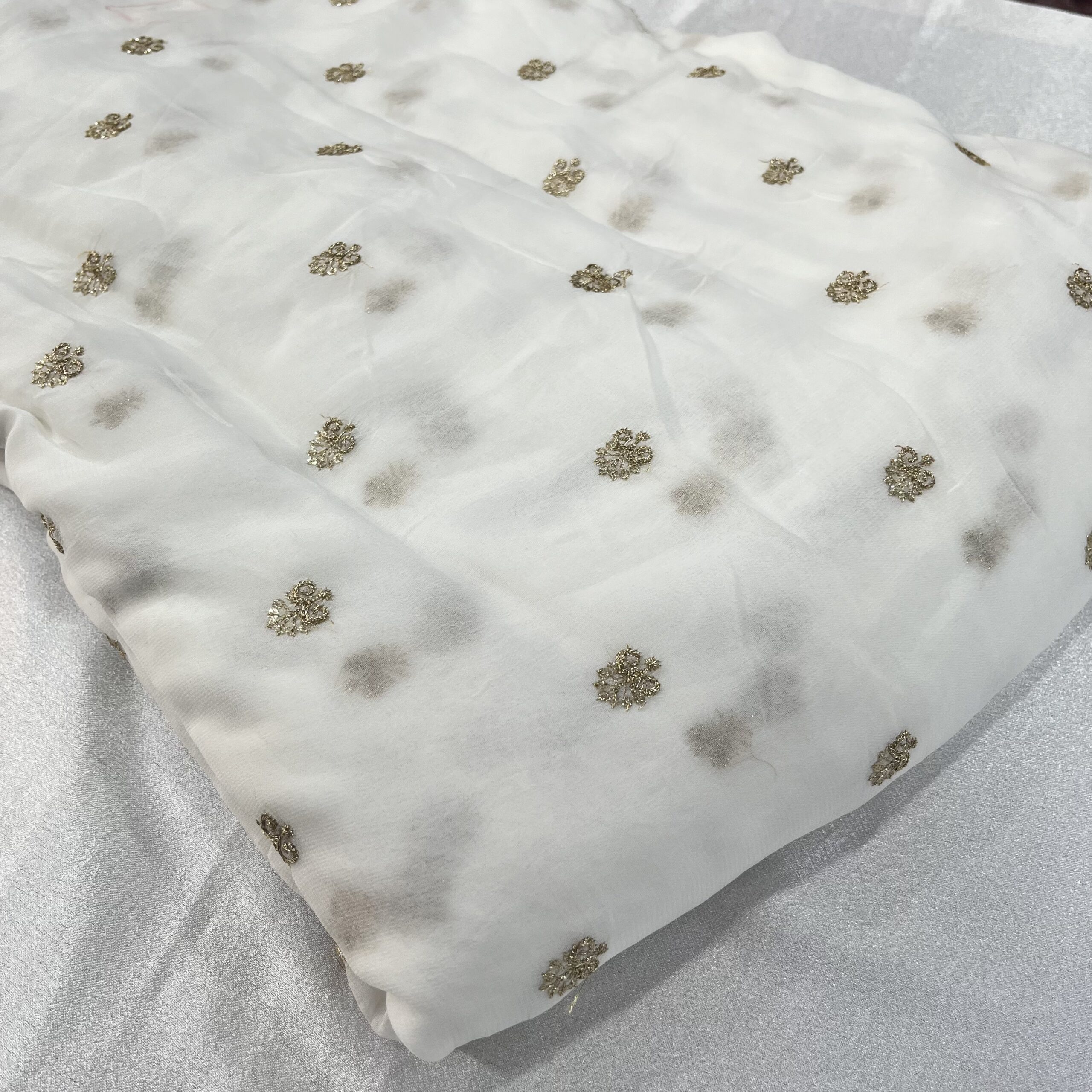 Chinnon and Georgette Dyeable Butti Fabric – Elegant and Customizable for All Occasions