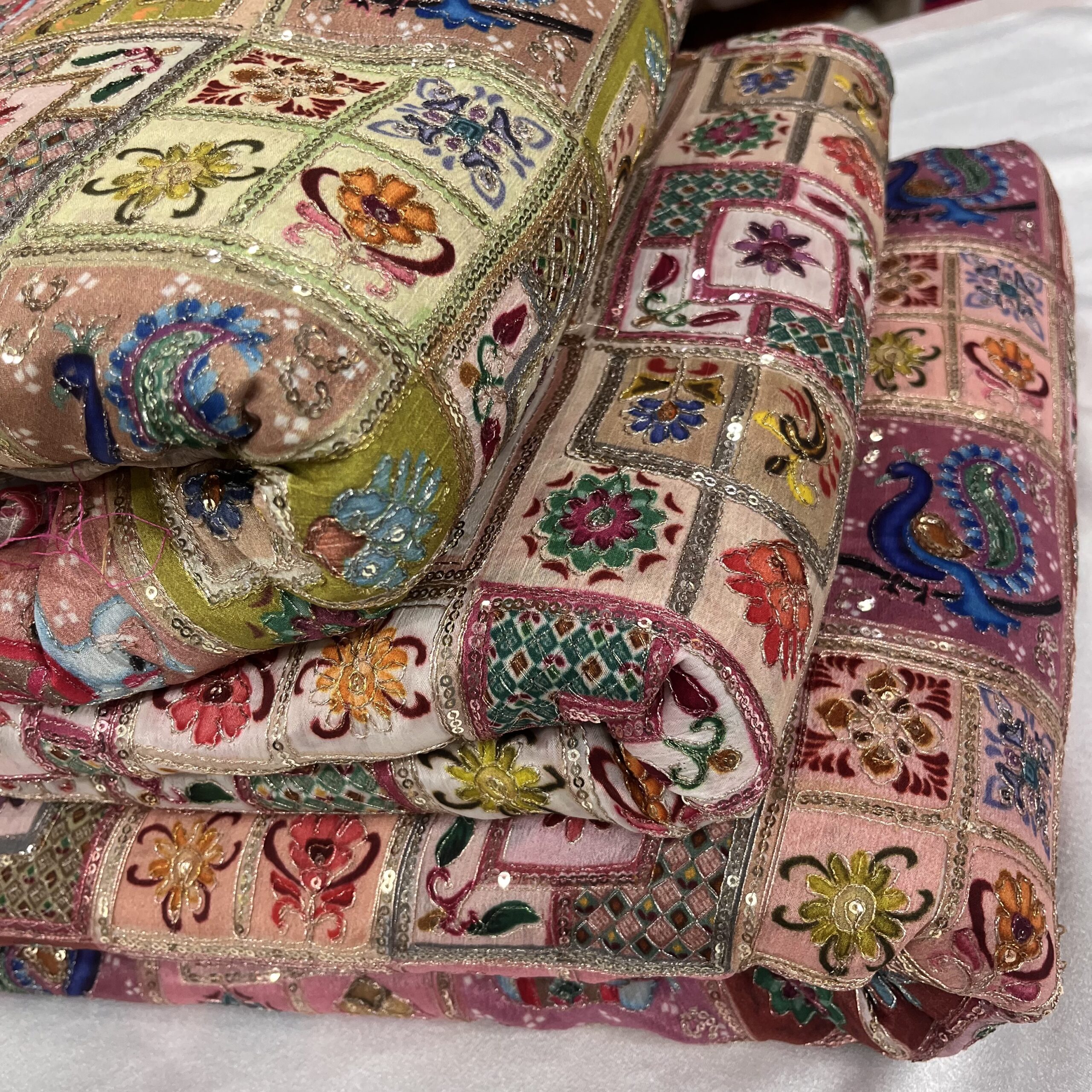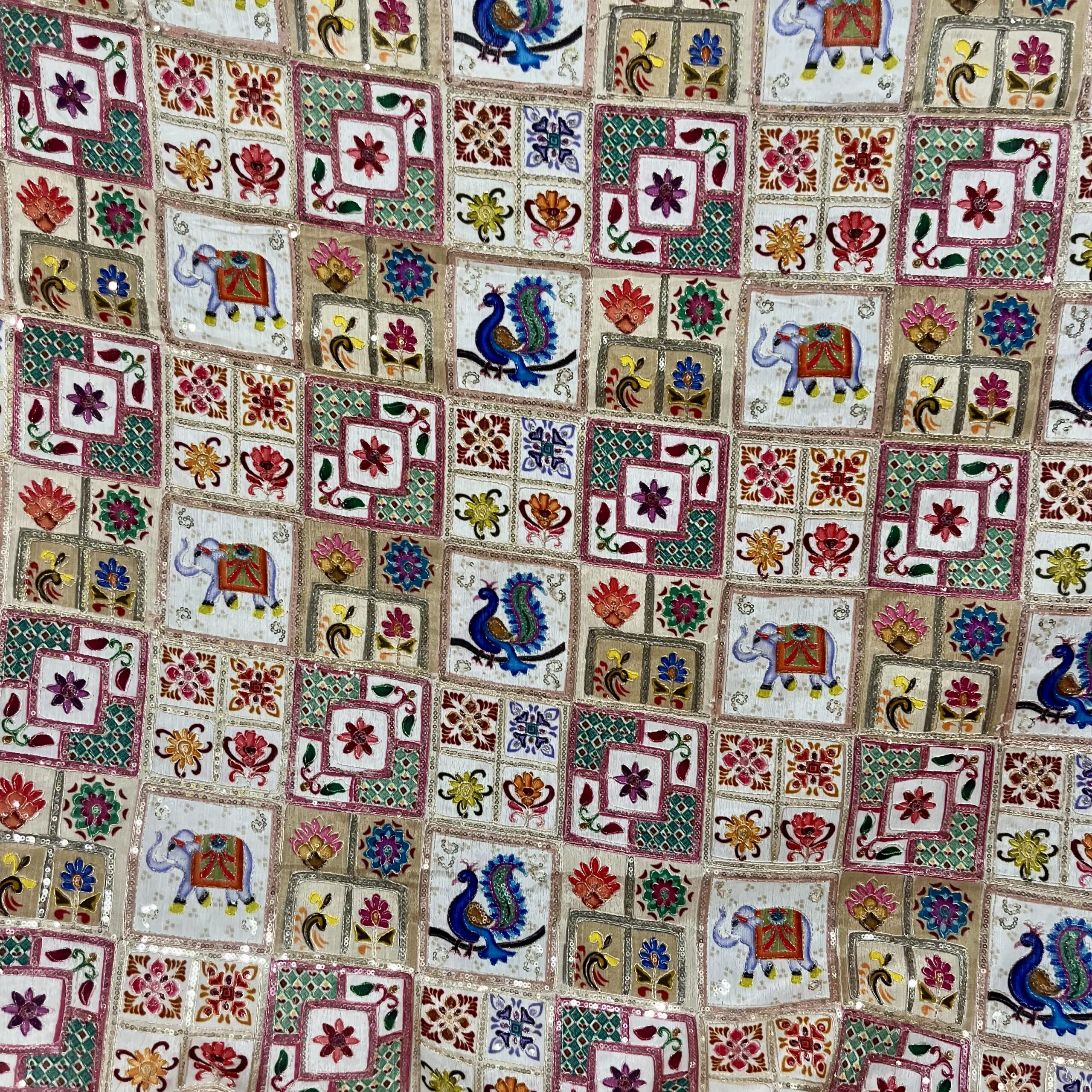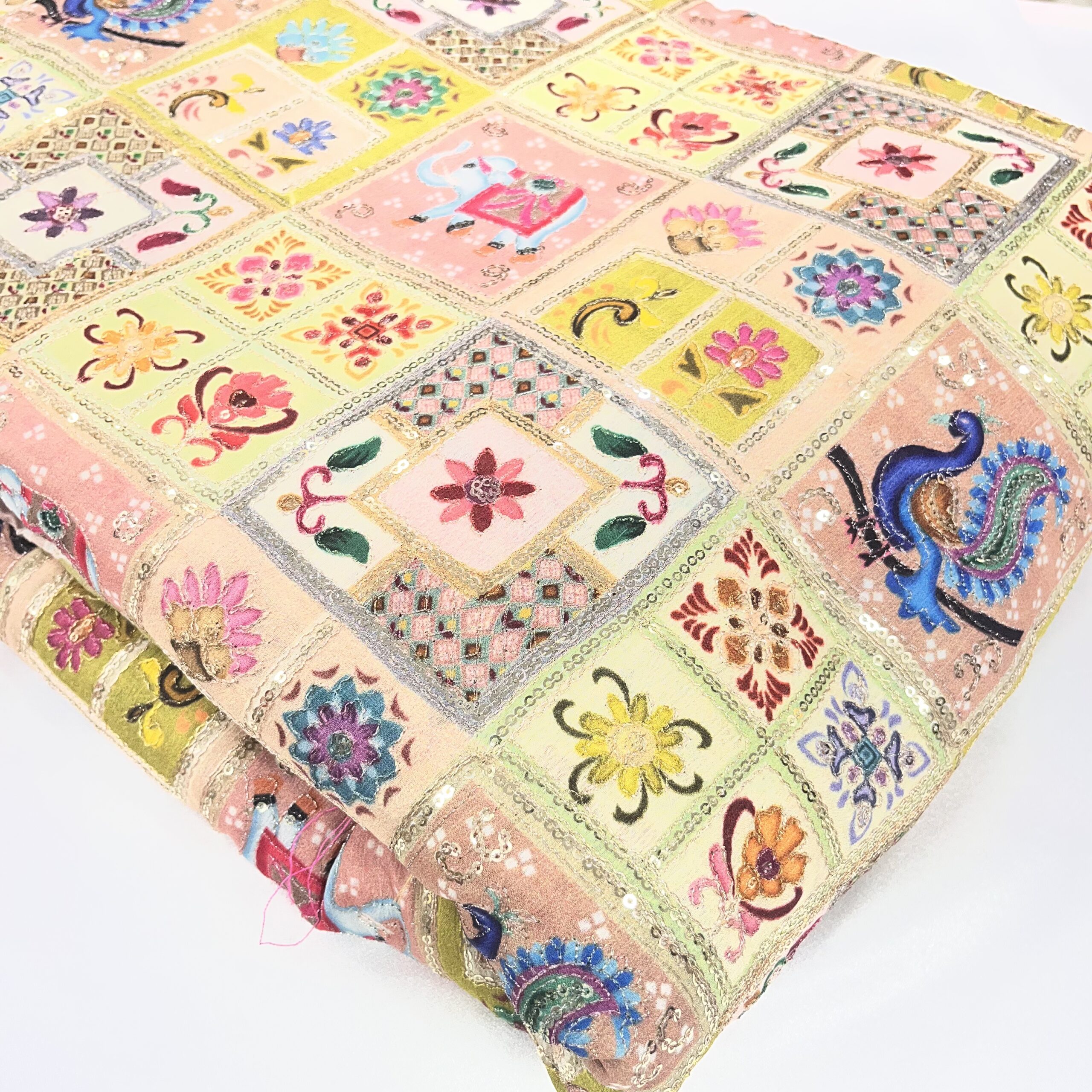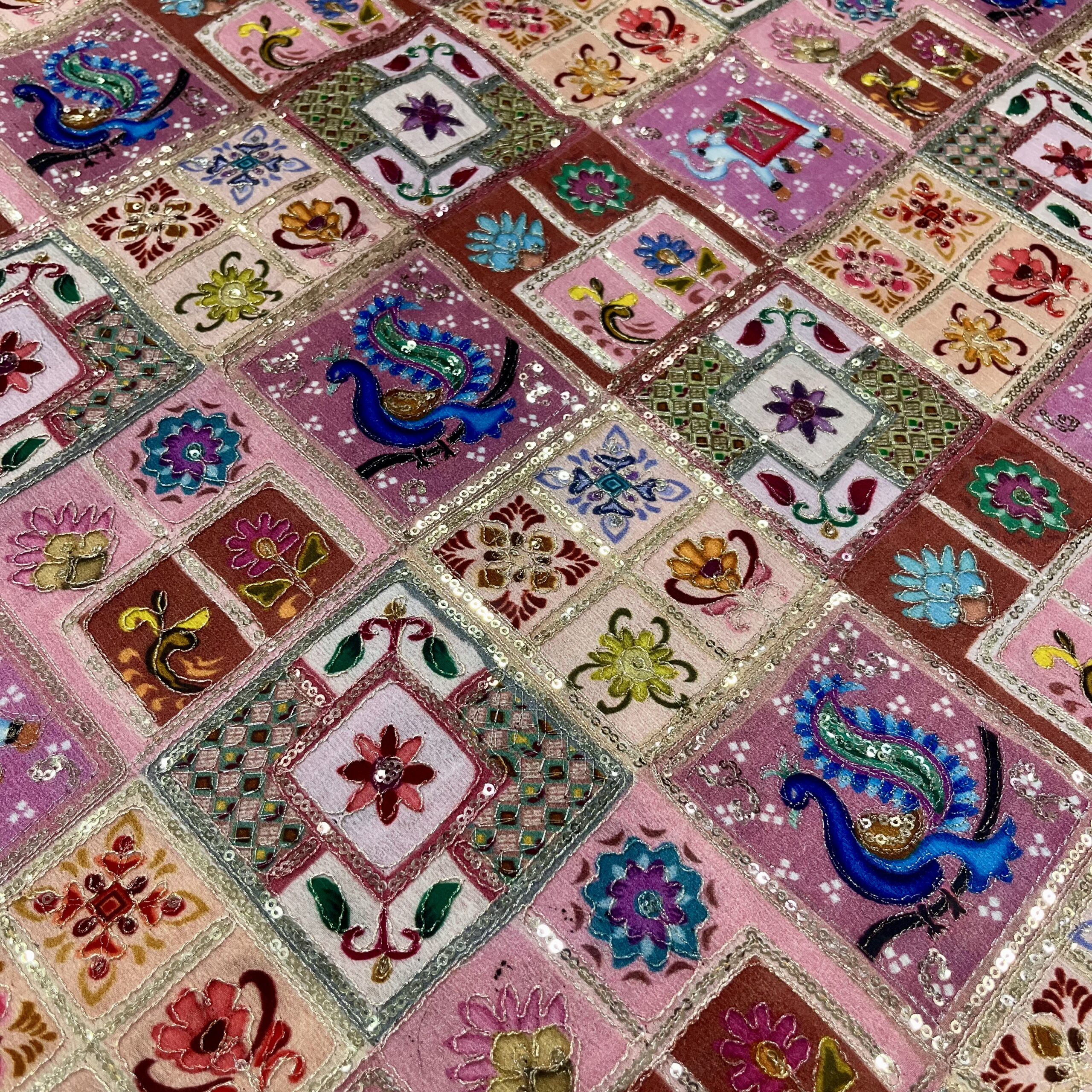 Chinnon Fabric with Sequins & Thread Work in Pastel Multicolor Shades