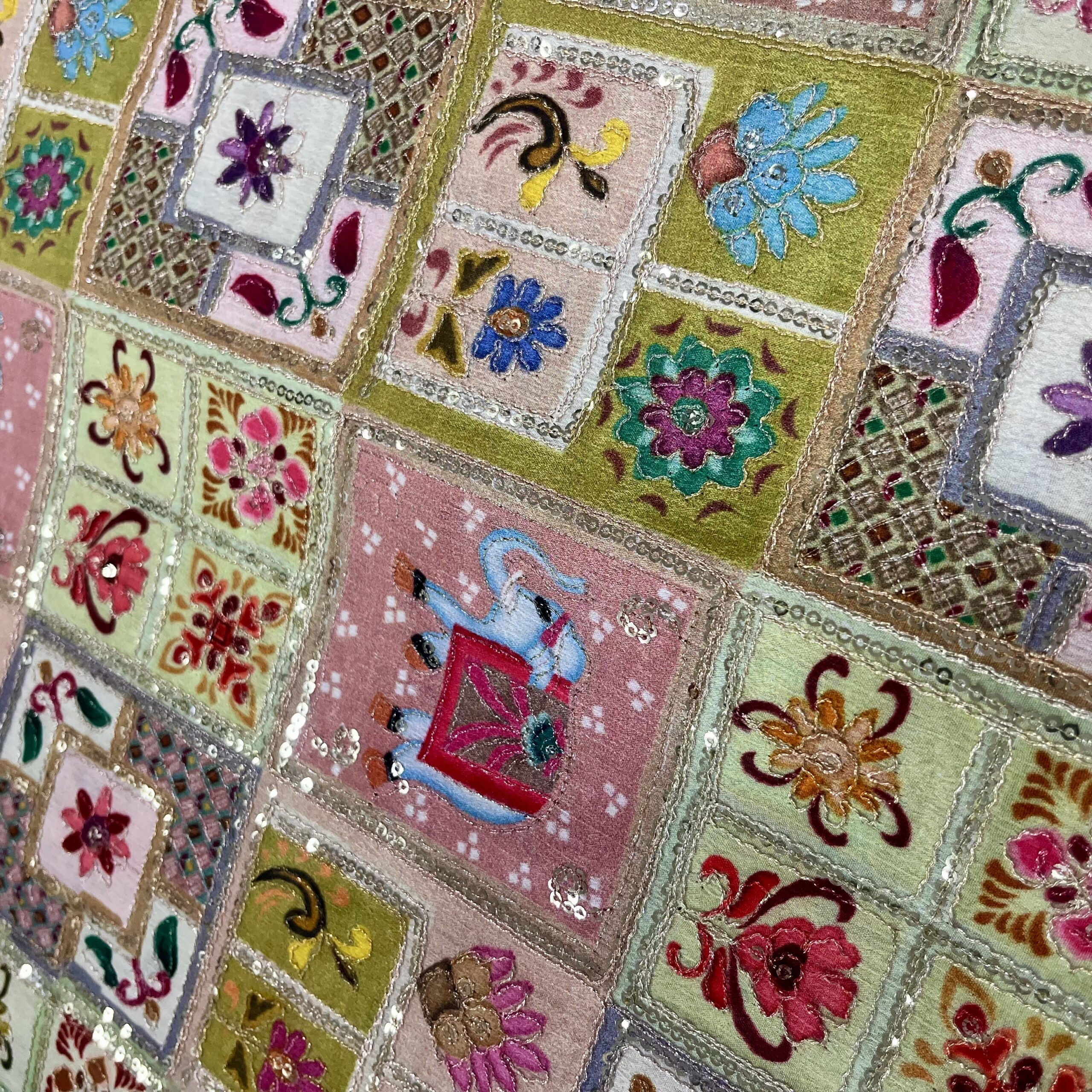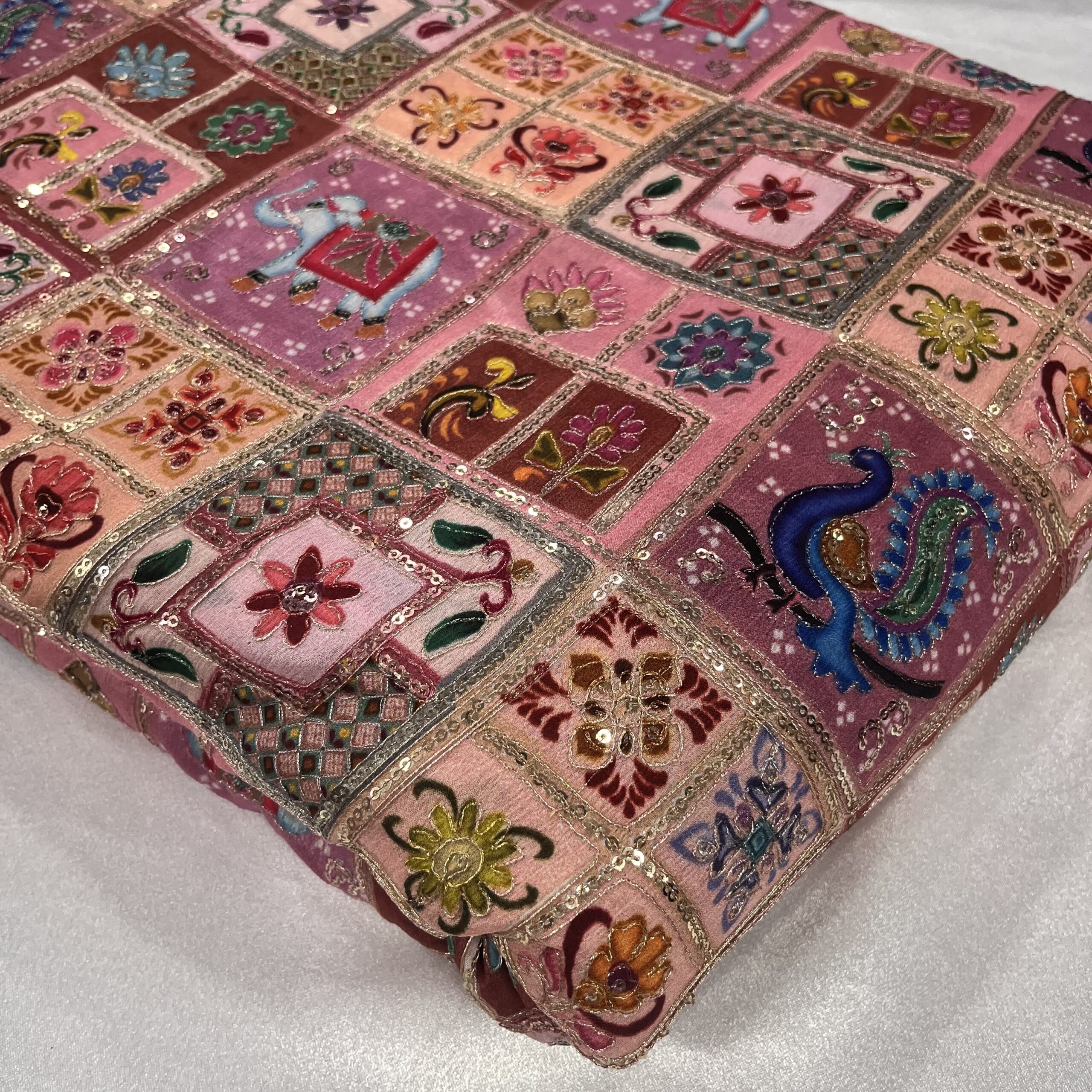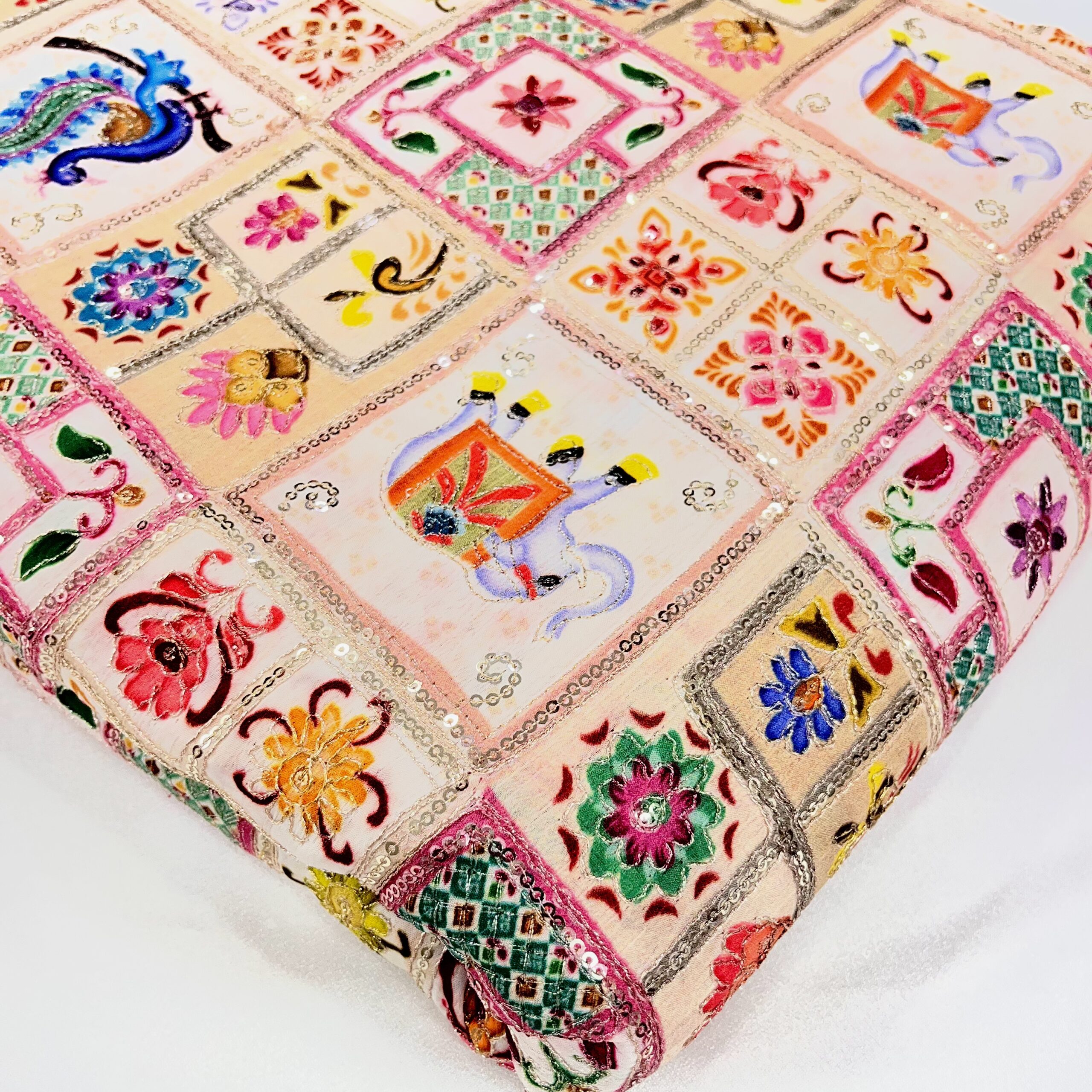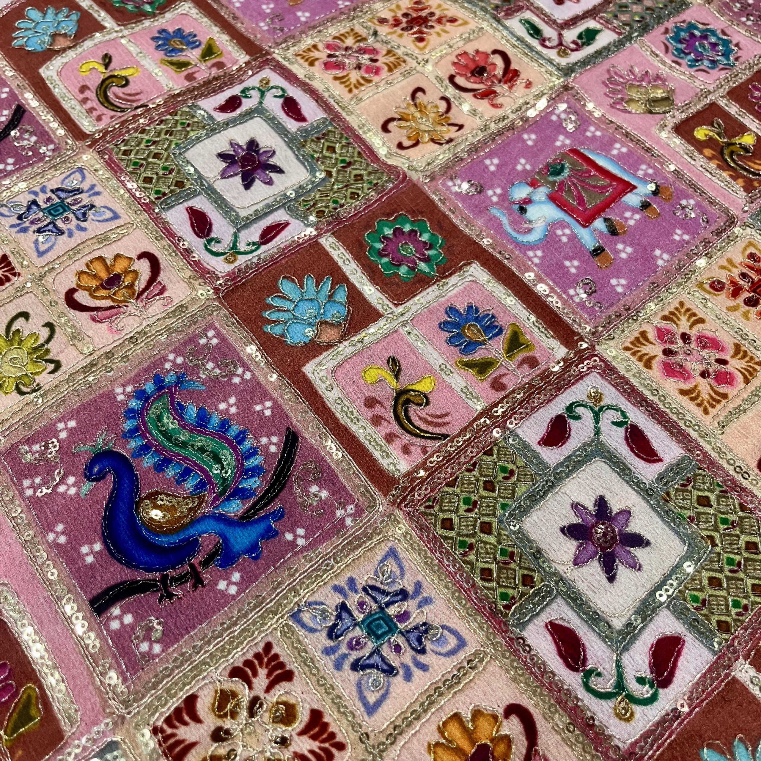 Chinnon Fabric with Sequins & Thread Work in Pastel Multicolor Shades