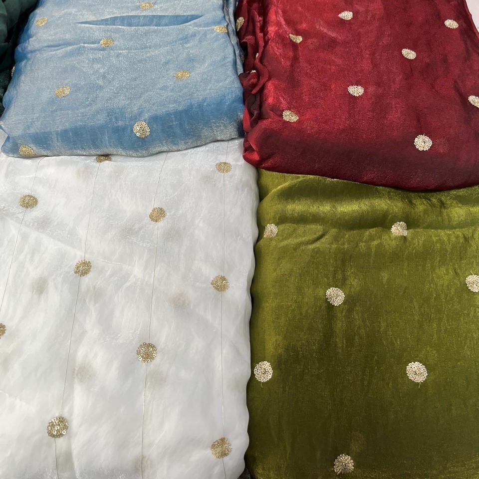 This versatile silk fabric is ideal for designing kurtas, blouses, dresses, skirts, lehengas, suits, and festive outfits. Its subtle sheen and delicate butti detailing make it a great choice for casual, festive, and party wear ensembles.