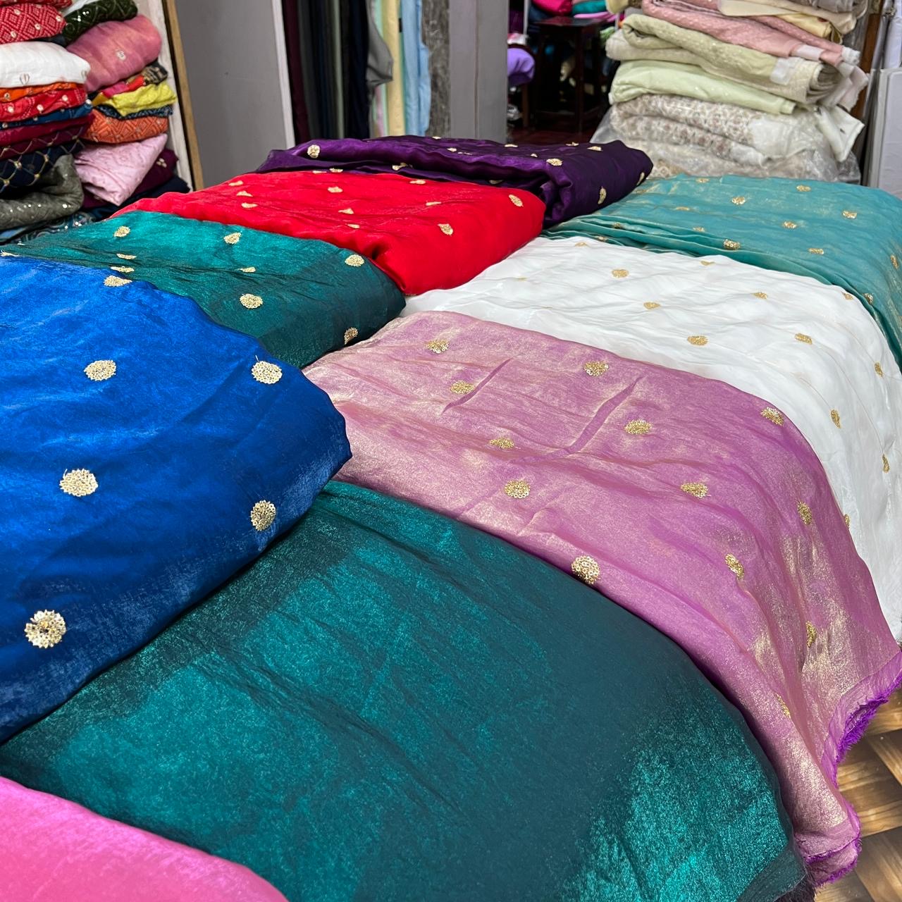 Fandy Silk Fabric with Allover Small Butti | Soft & Smooth Fabric for Casual and Party Wear | ₹180/mtr | Width 44 Inches