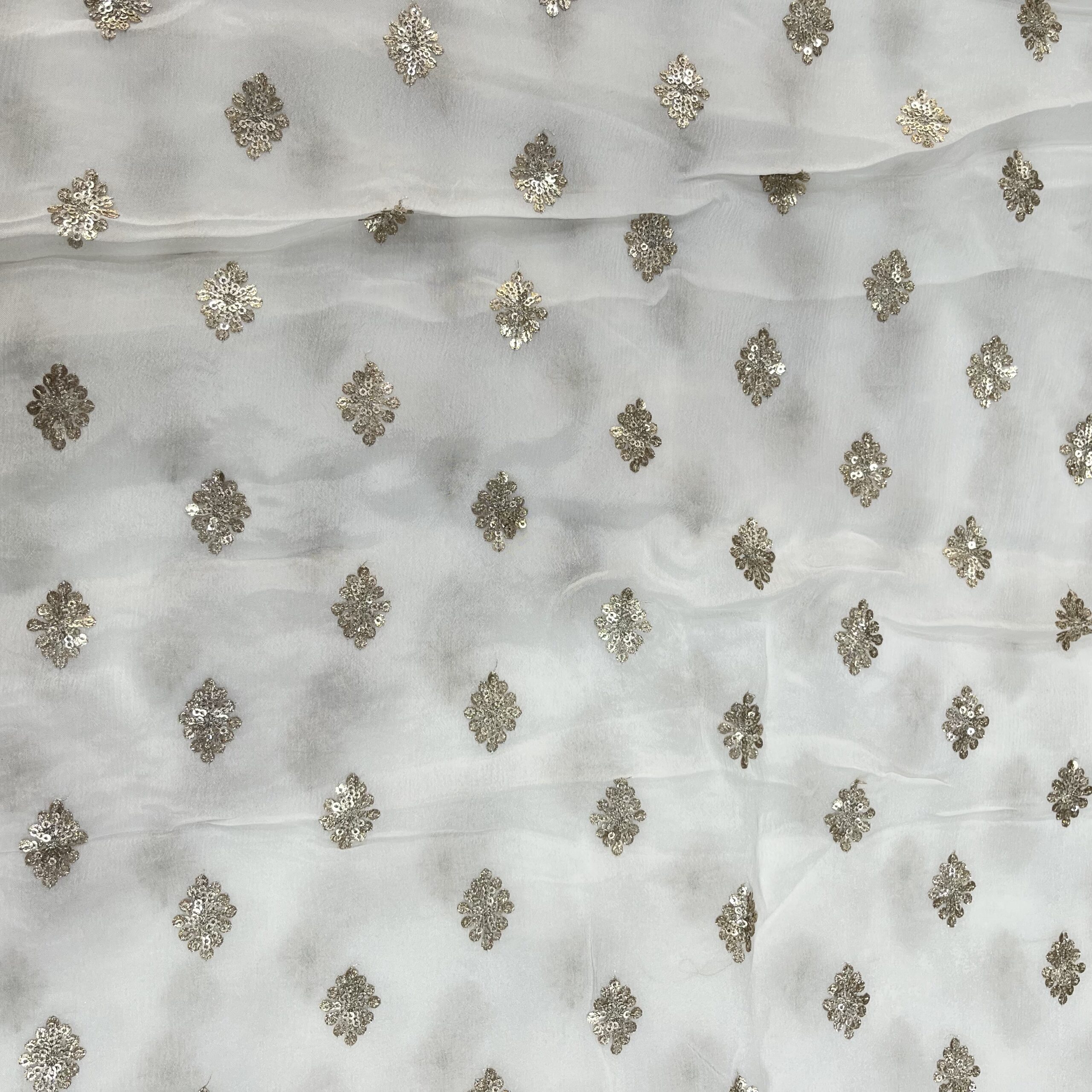 Experience the versatility of our Georgette dyeable butti fabric, crafted for elegance and comfort. This high-quality fabric is ideal for designing suits, lehengas, kurtas, gowns, and indo-western outfits suitable for both casual and party wear.