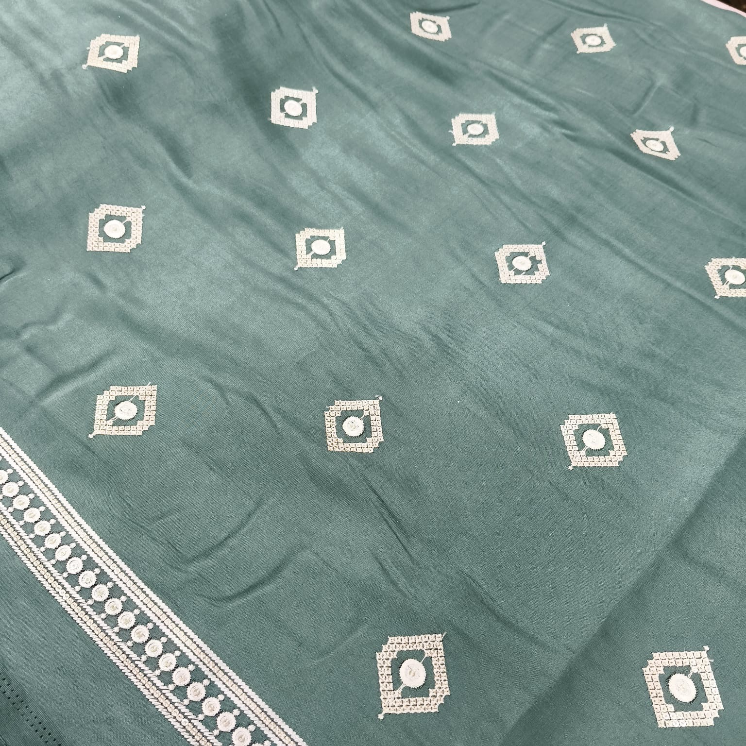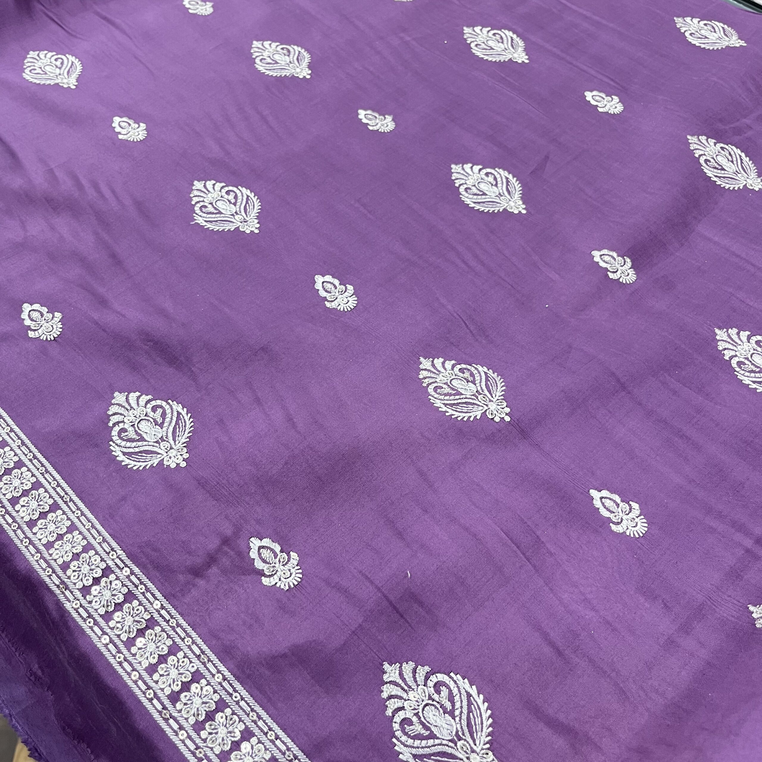 Malai Satin Fabric with Embroidered Butti & One-Sided Border | 5 Stunning Colors | Perfect for Men’s Kurtas & Kothis