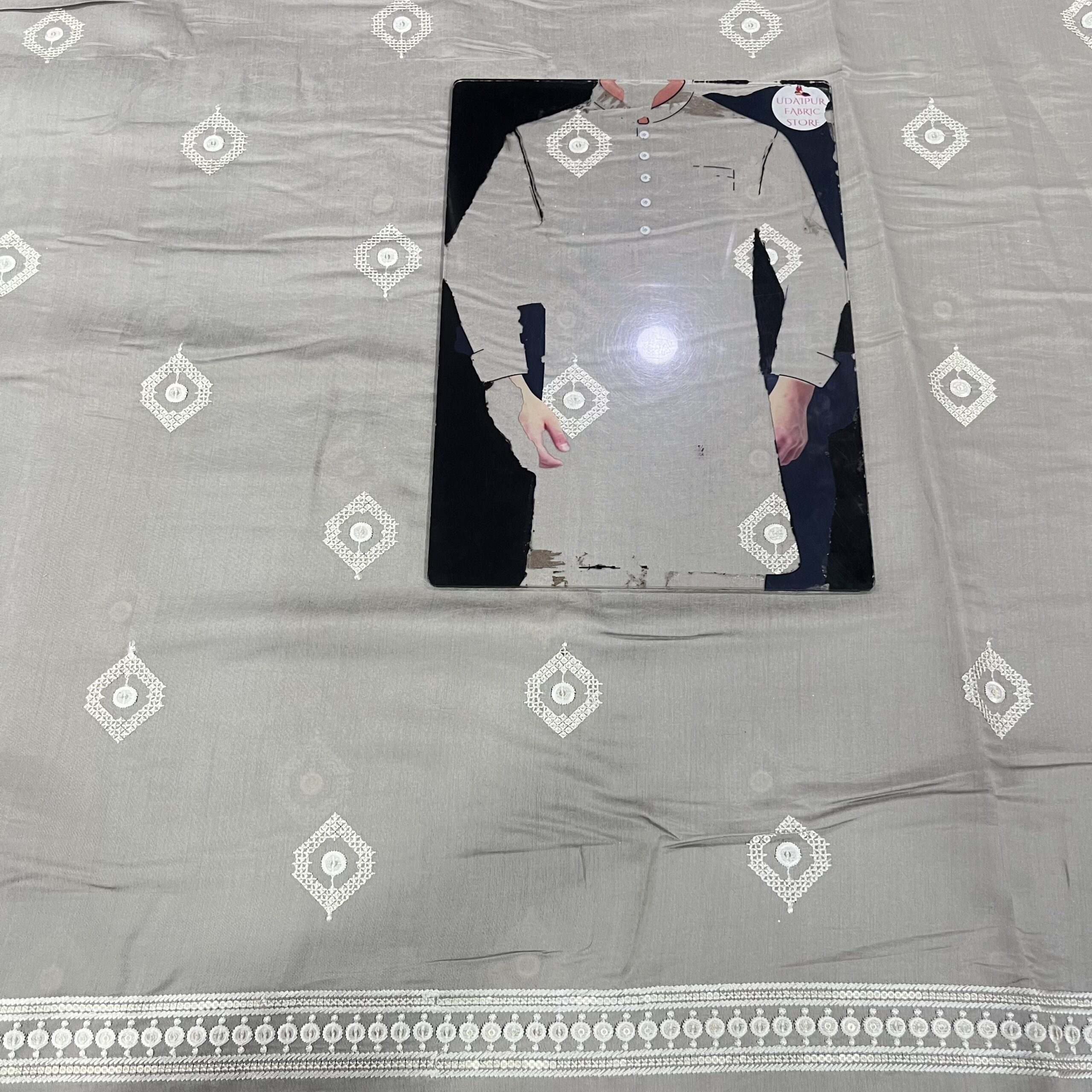 malai satin embroidered fabric, malai satin butti fabric, men’s kurta fabric online, satin fabric with border, kothi fabric for men, embroidered satin fabric 450 per meter, festive wear fabric for men, wedding kurta fabric, pastel satin fabric for men, designer malai satin fabric 58 inches width.