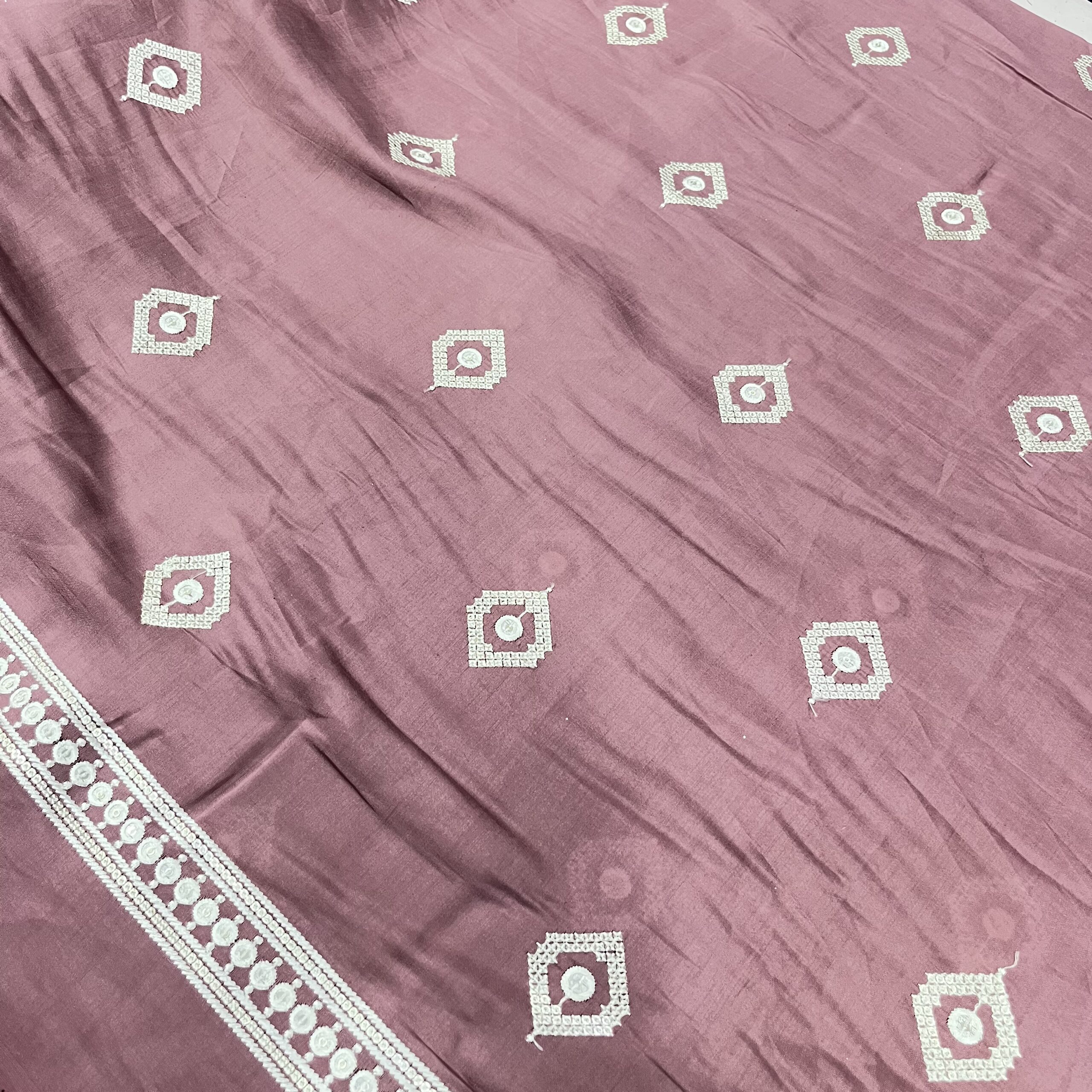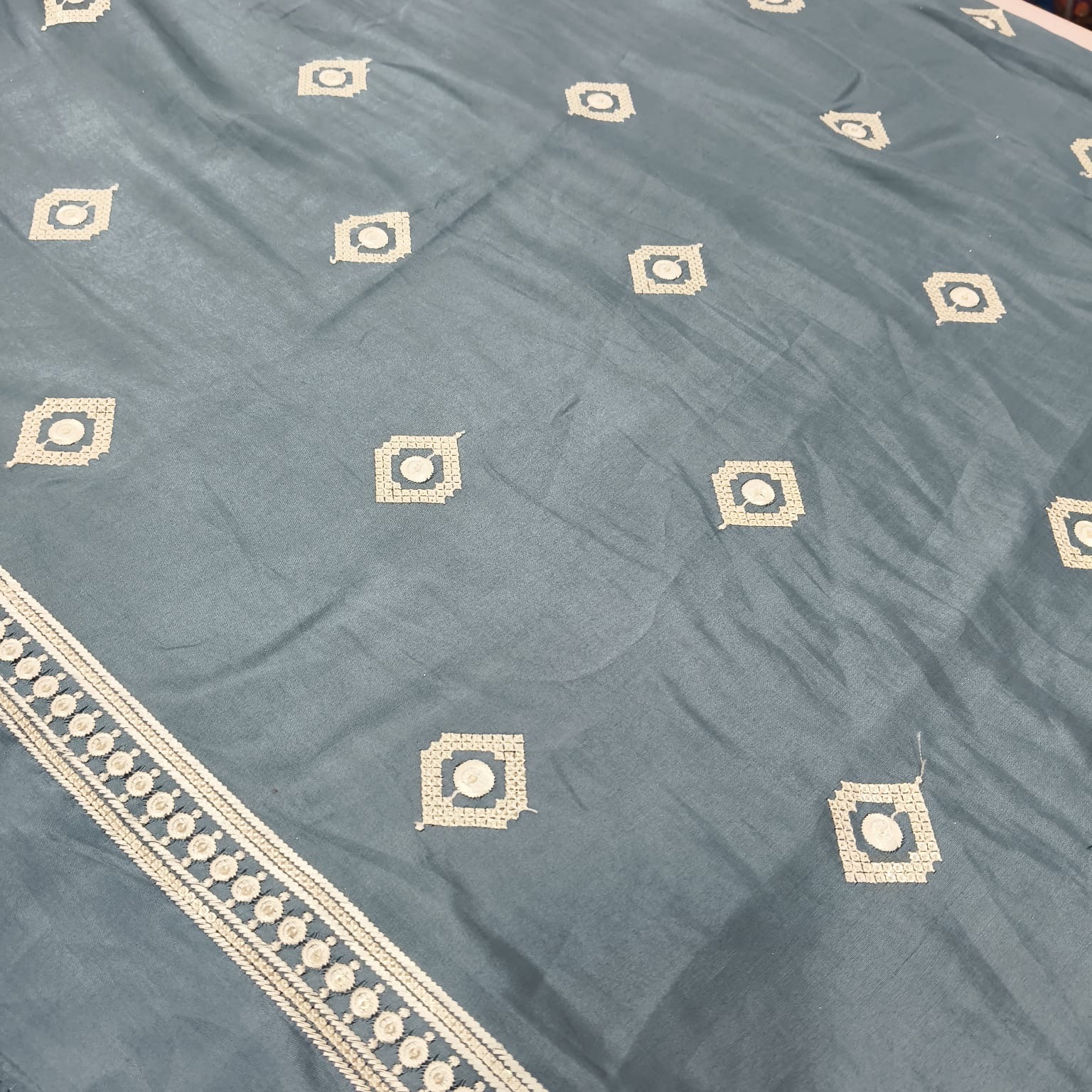 Discover the elegance of our premium Malai Satin fabric, available in 5 stunning shades — Grey, Purple, Peach, Sea Green, and Powder Blue. This ultra-smooth, soft, and luxurious fabric comes with small embroidered butti work all over and a beautiful one-sided border, perfect for crafting stylish sleeves, collars, and designer detailing.
