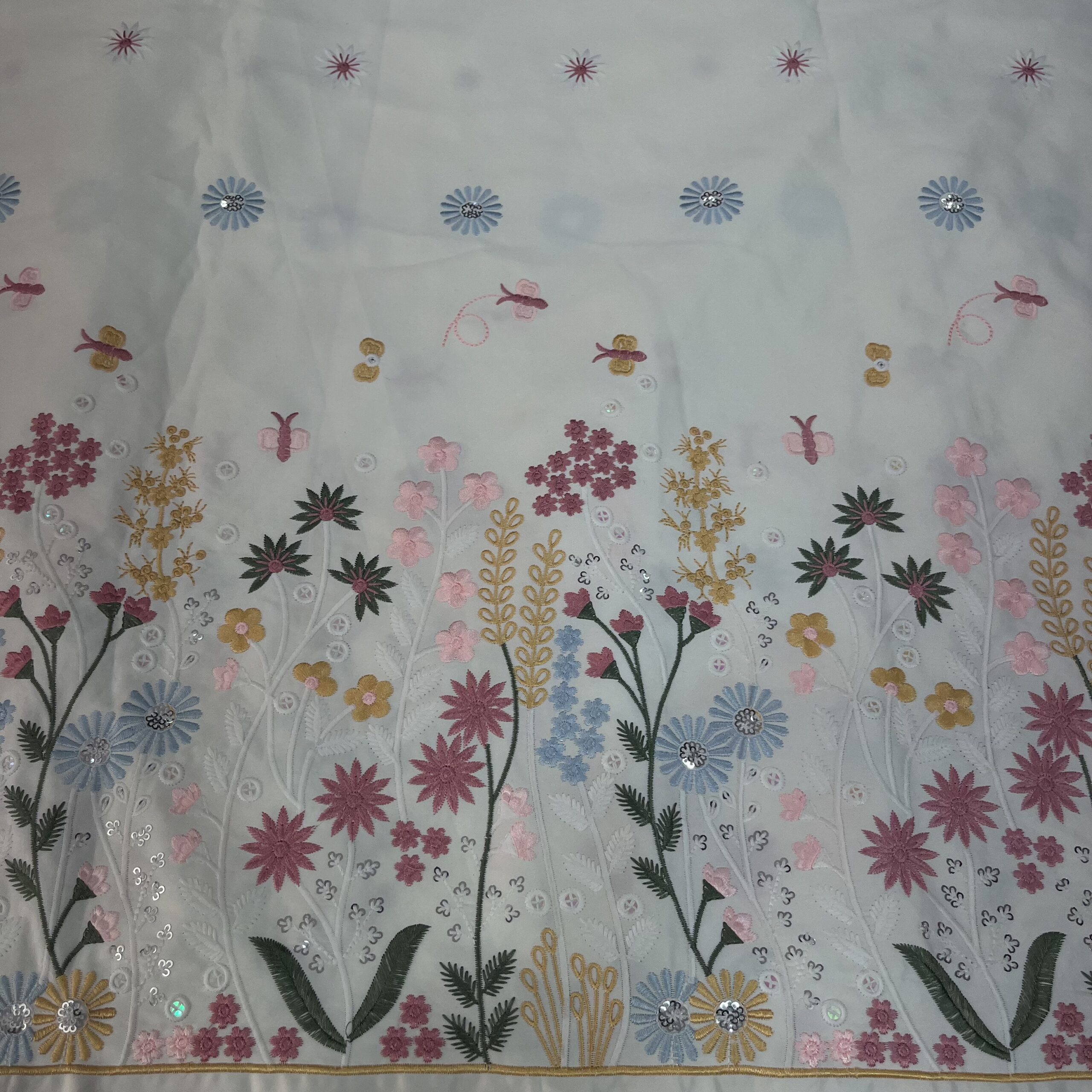 Be the first to review “Malai Satin Fabric with Floral & Leaf Panel Embroidery | Elegant Multicolor Design” Cancel reply