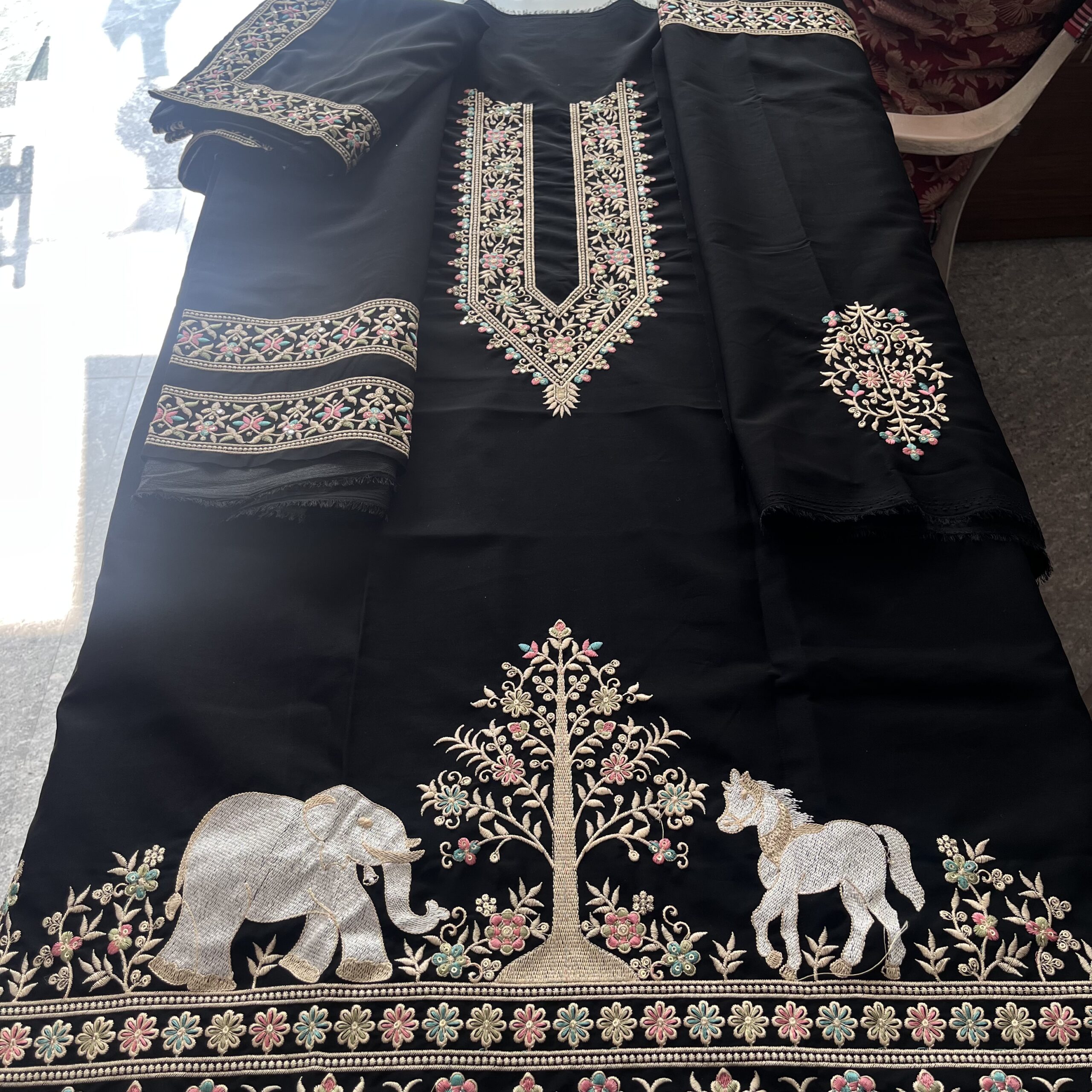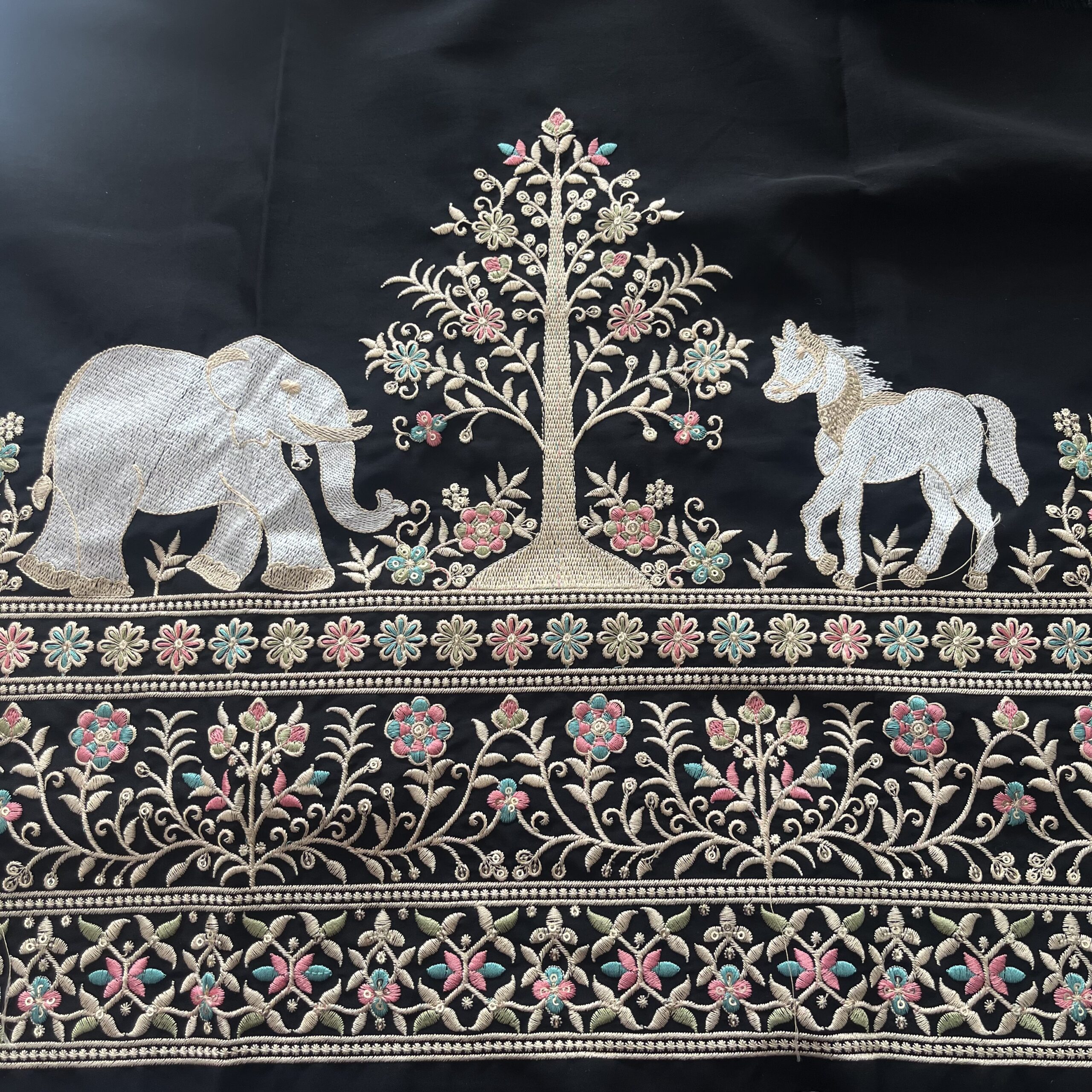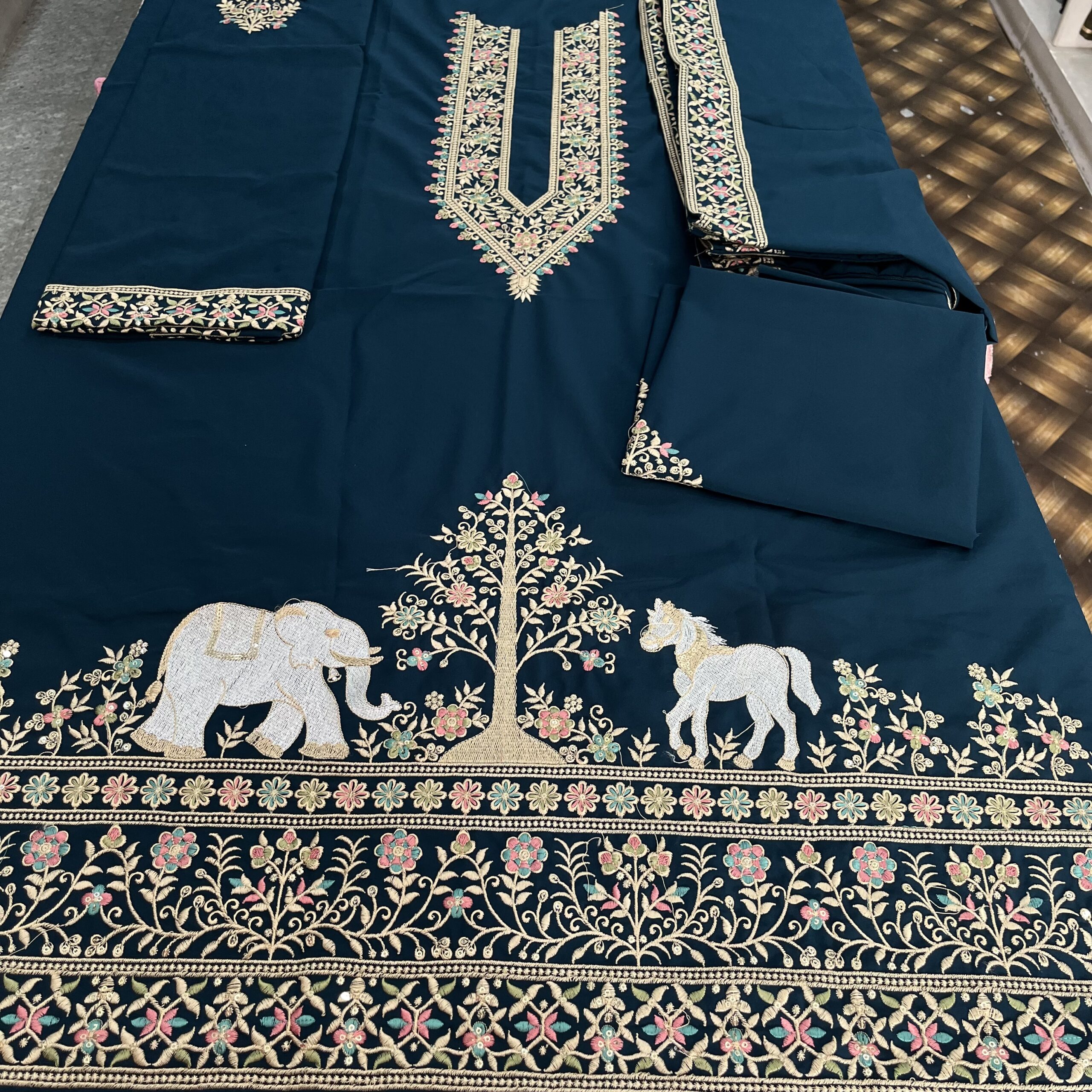 ✔ Rich embroidery with traditional elephant motifs