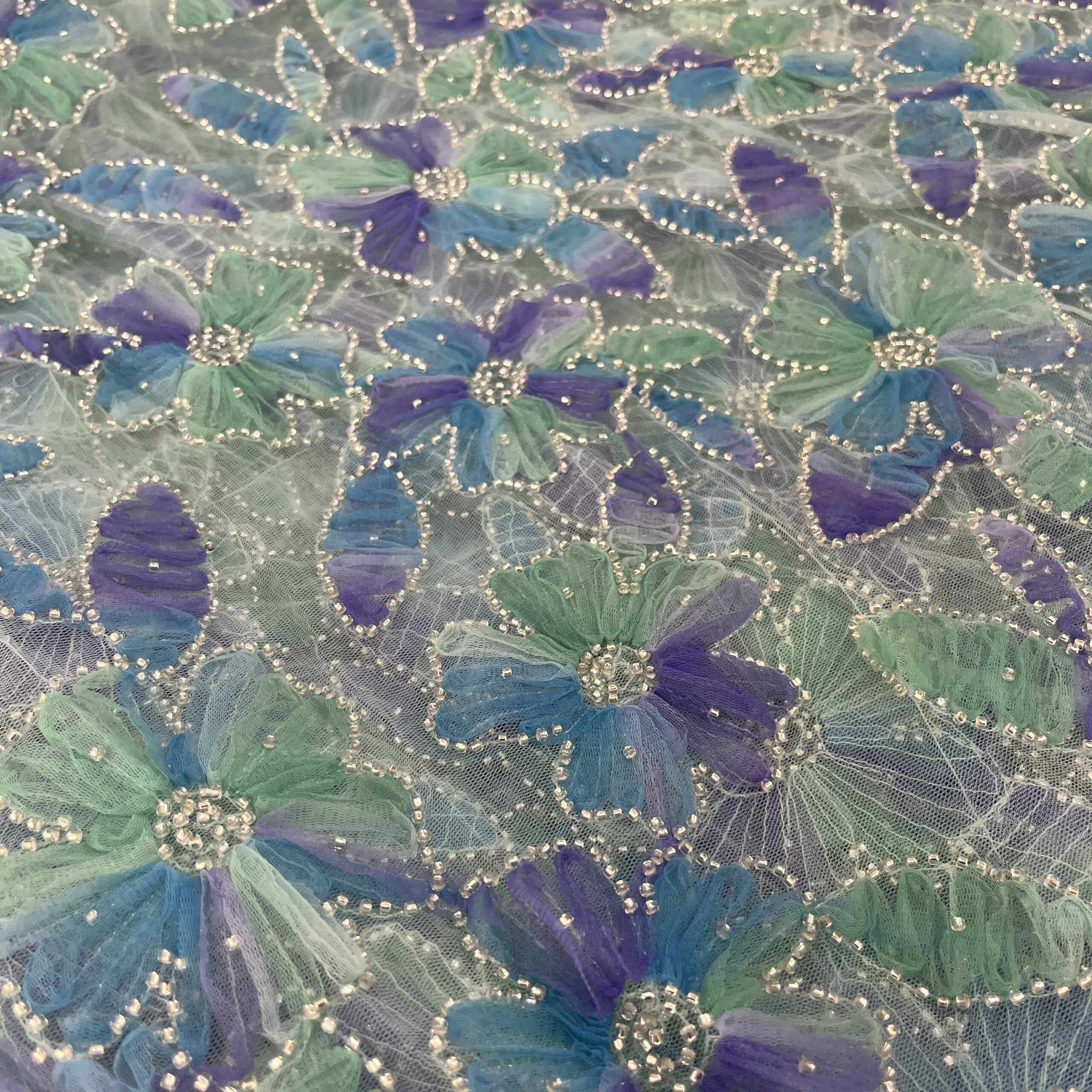 Net Fabric with Heavy Applique Floral & Cutdana Bead Work | Multicolor Party & Wedding Wear | ₹1150/Meter