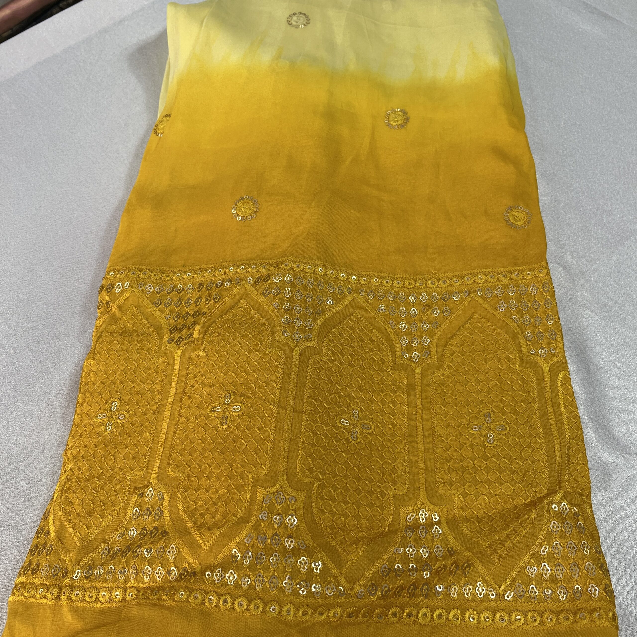 Elevate your ethnic wardrobe with our Ombre Upada Silk Fabric, featuring a heavy embroidered panel design and delicate all-over small butti work. This luxurious silk fabric showcases double-shaded ombre tones available in 5 beautiful colors, offering a perfect balance of tradition and modern elegance.