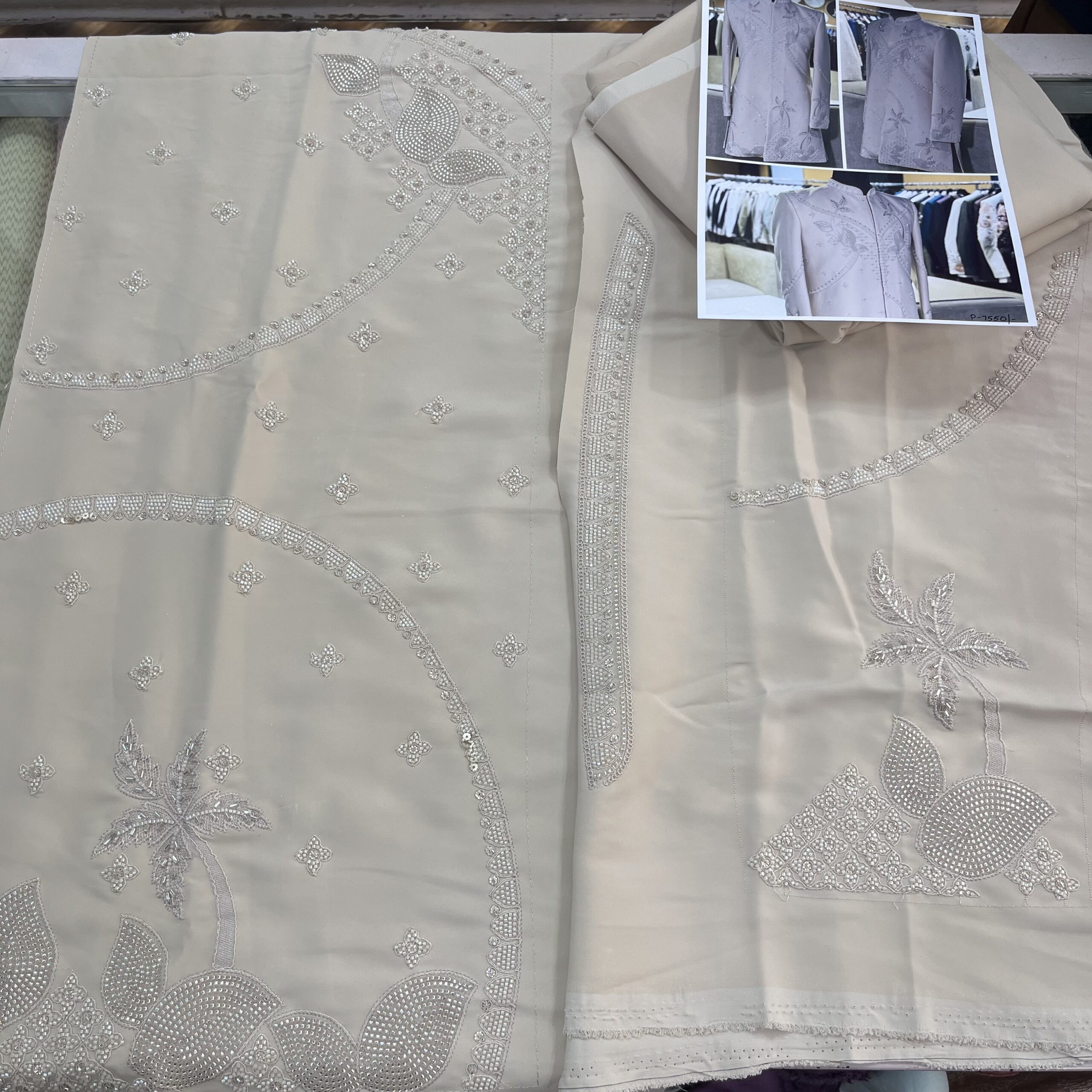 Donear satin precut fabric, men’s Jodhpuri fabric set, Indo western men fabric, cutdana embroidery fabric for men, designer men wedding fabric, heavy embroidered Armaani, men’s party wear fabric set, luxury men ethnic fabric.