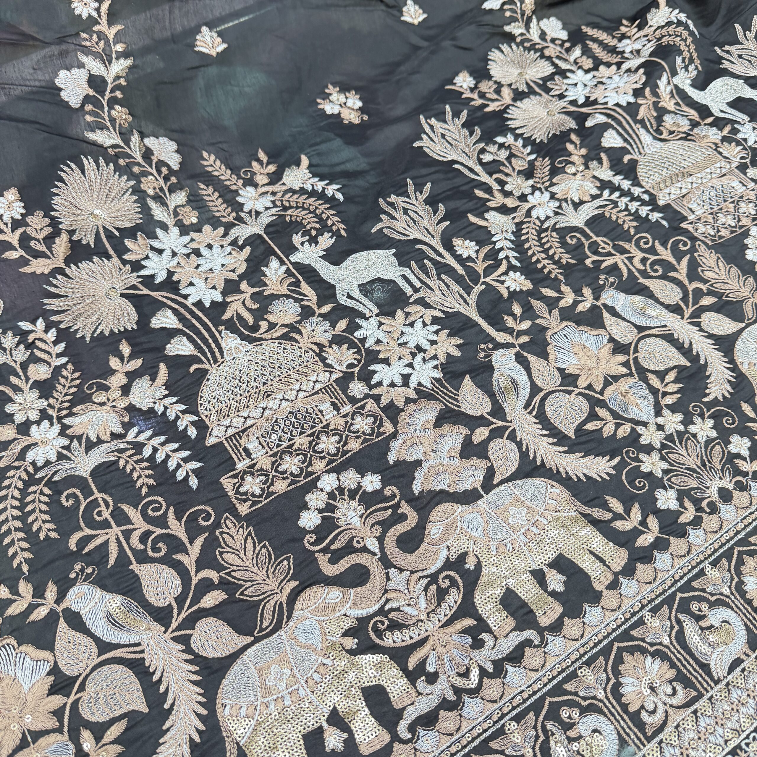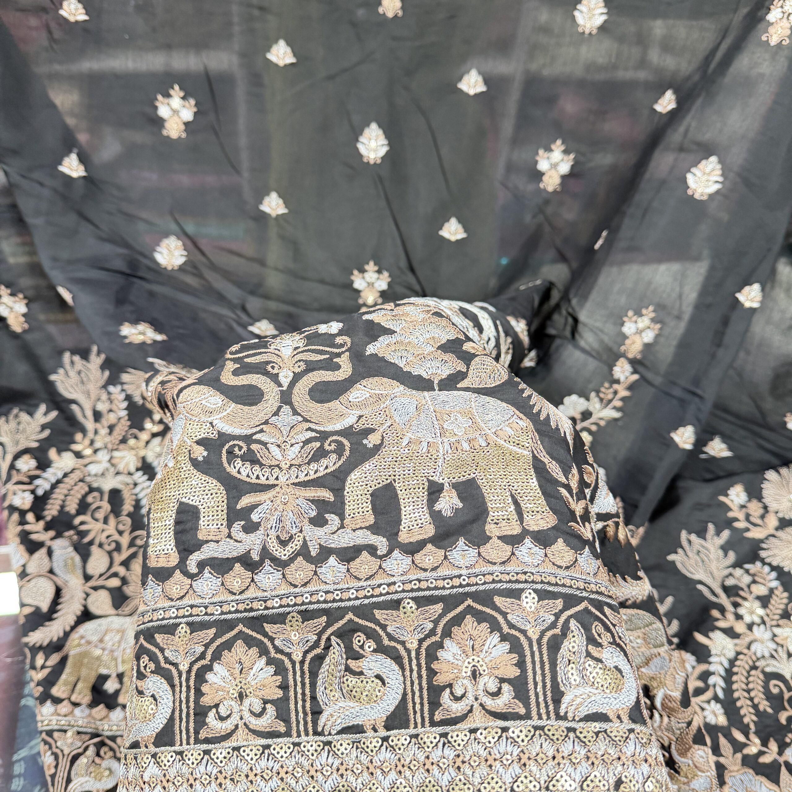 Premium Lucknowi Georgette Fabric with Sequins Work – Lightweight Designer Fabric