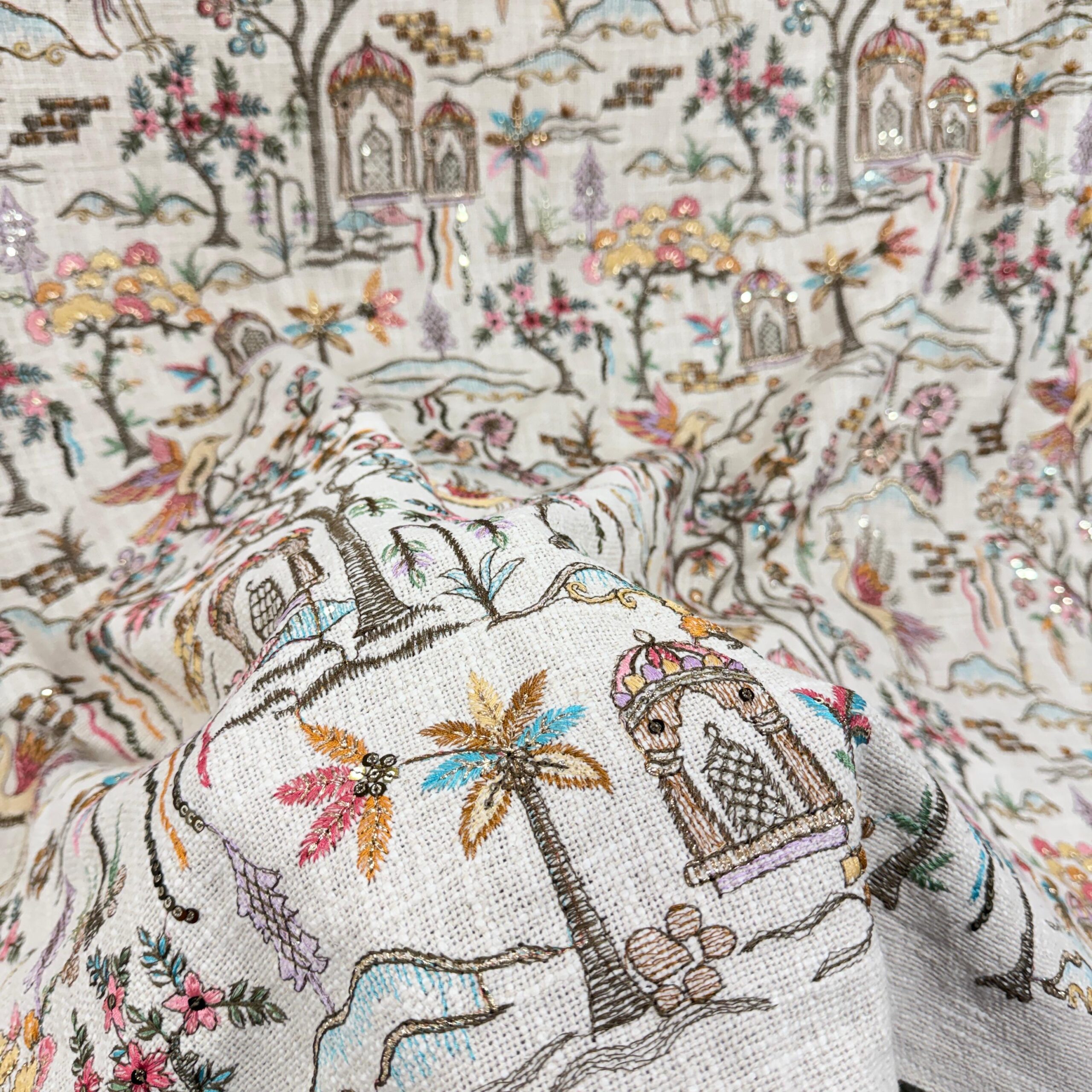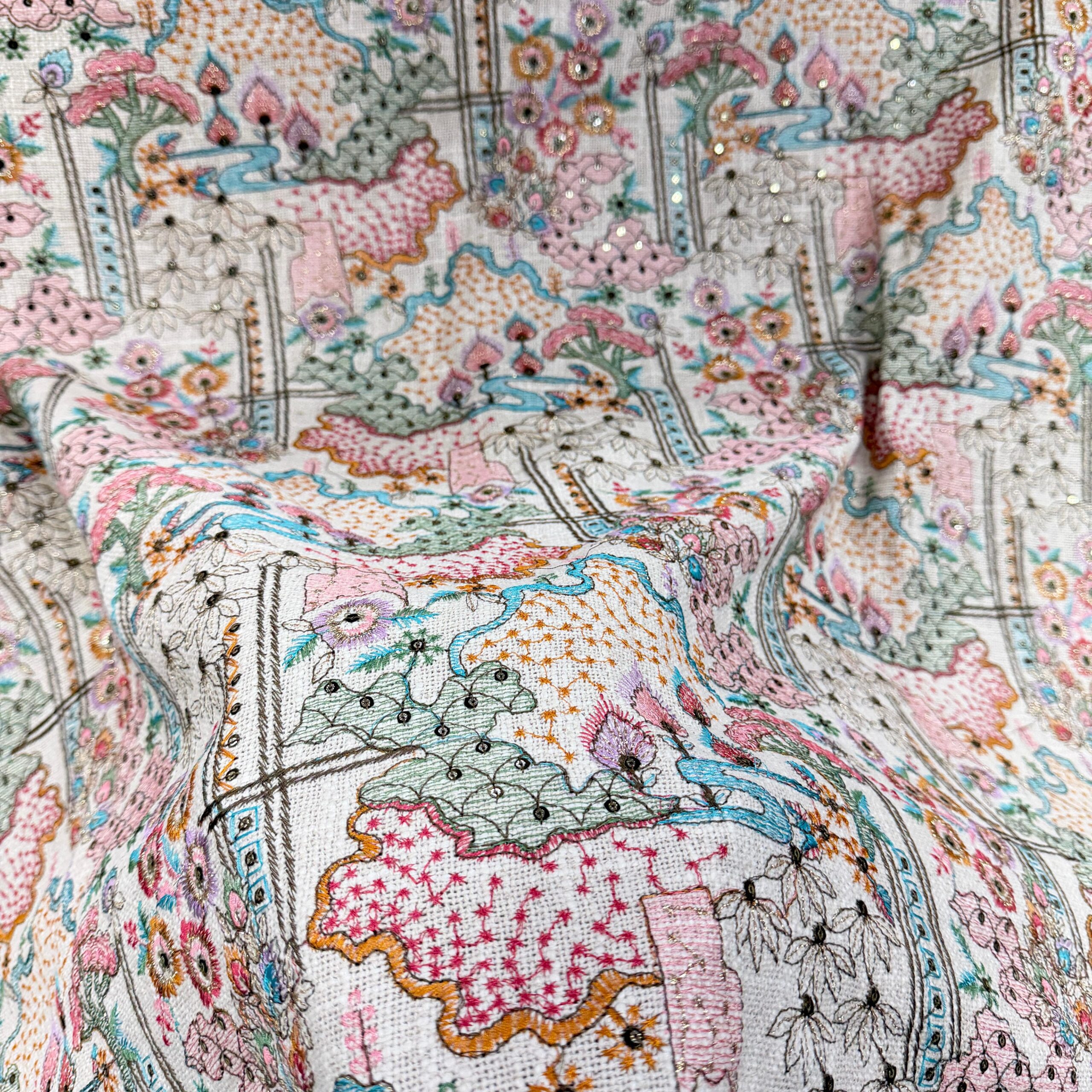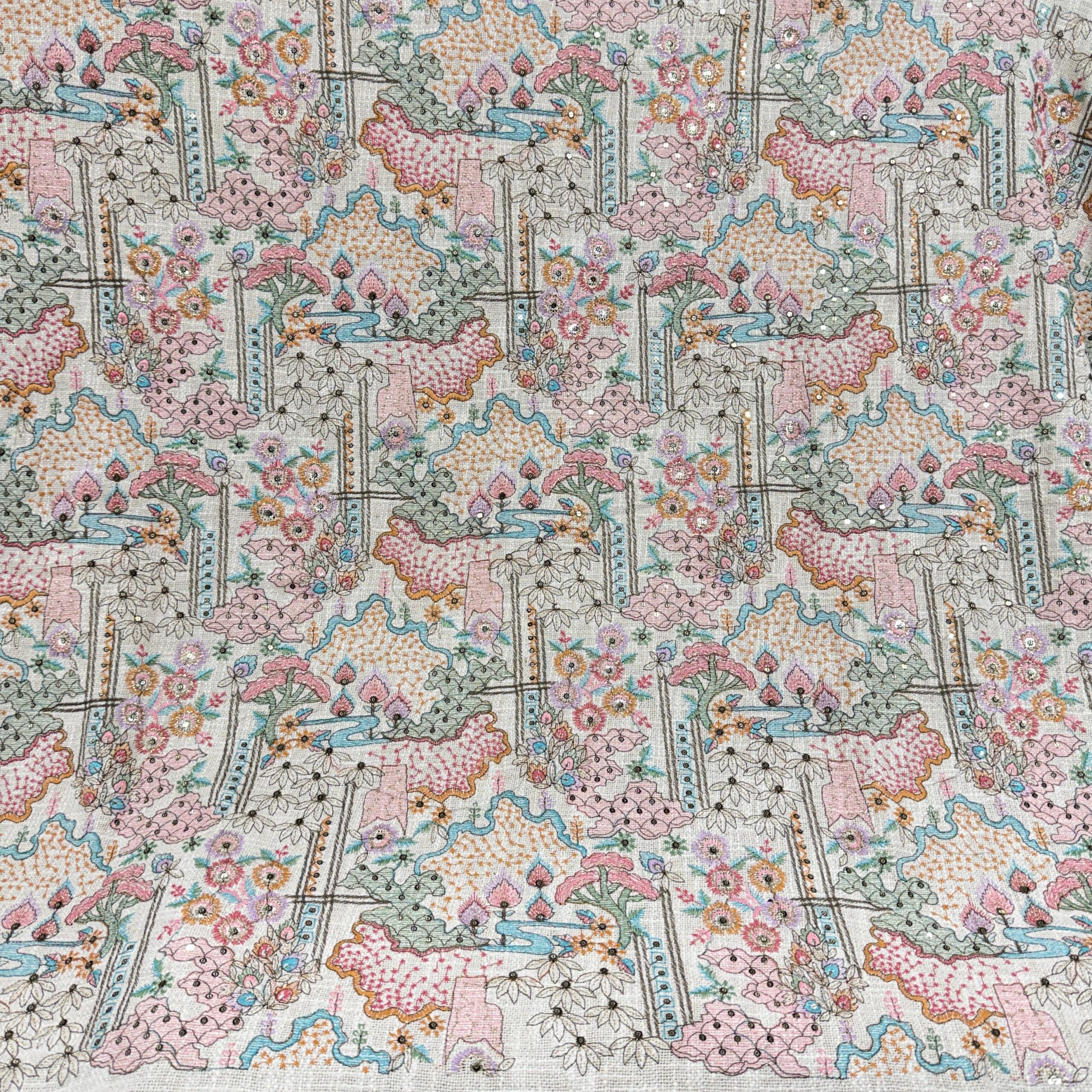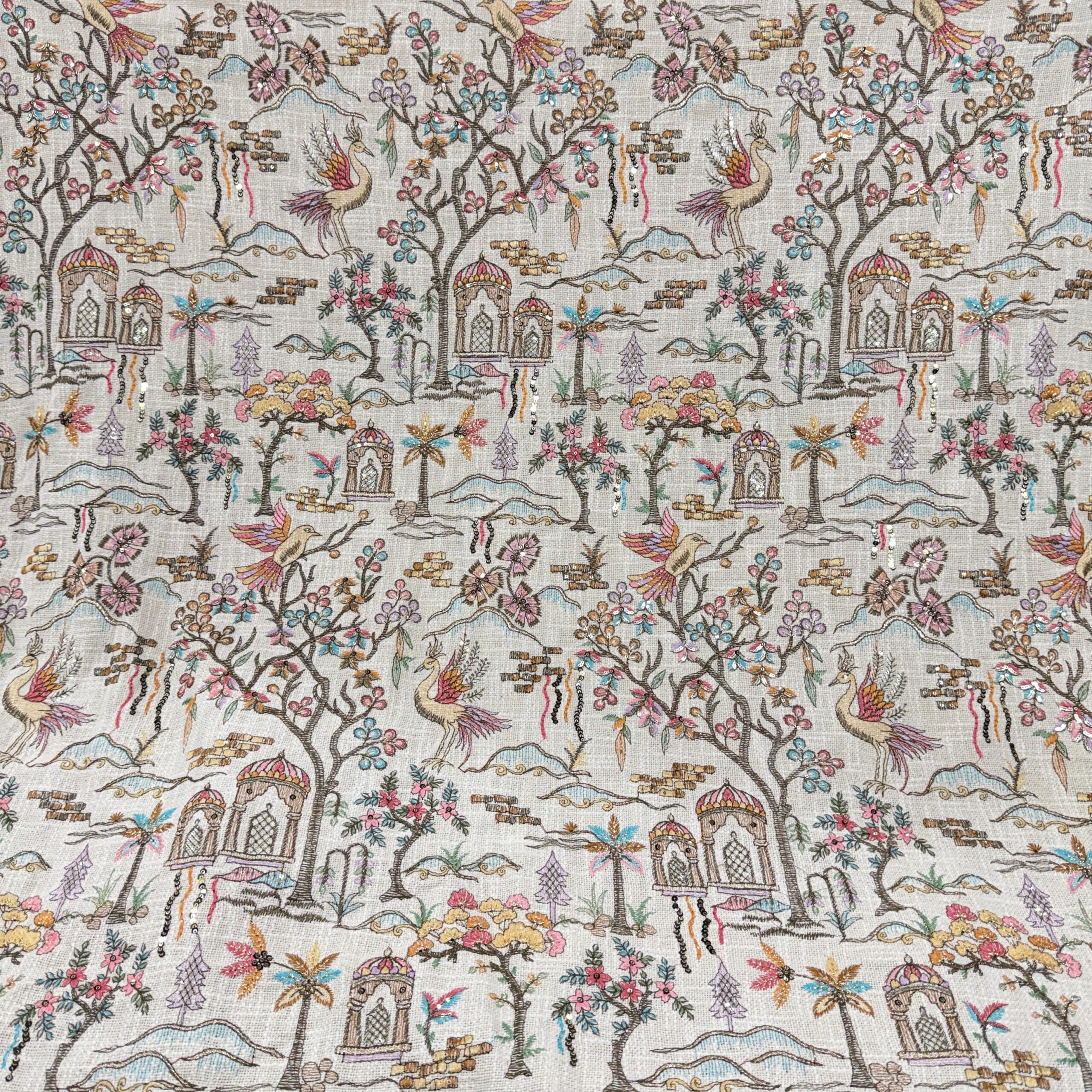 Premium Jute Cotton Embroidered Fabric – Nature Inspired Designer Collection