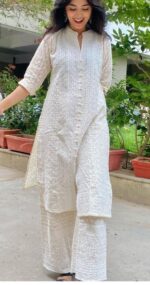 🌟 A trendy and versatile embroidered fabric that combines traditional Lucknowi craftsmanship with modern elegance, perfect for creating stylish outfits for both men and women.