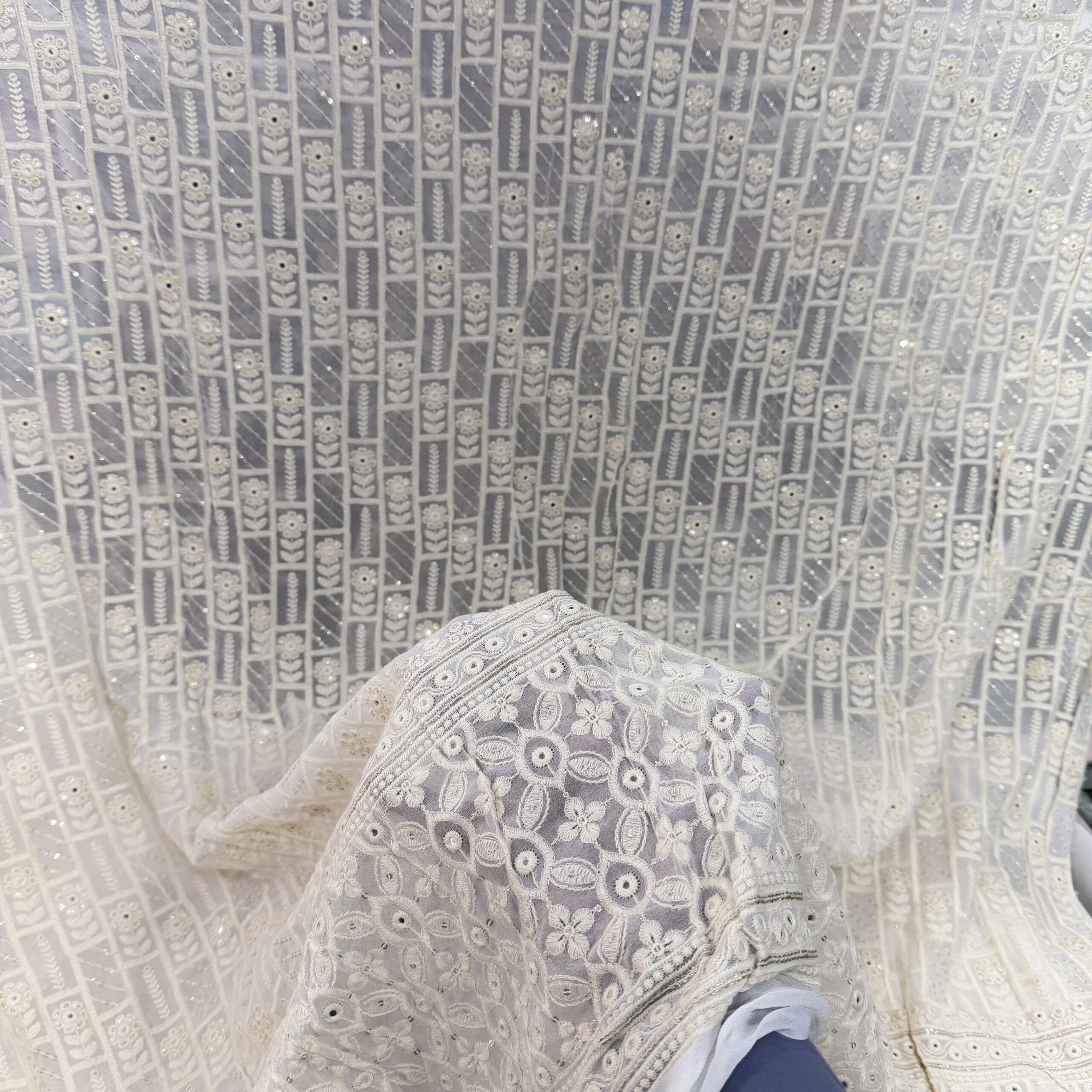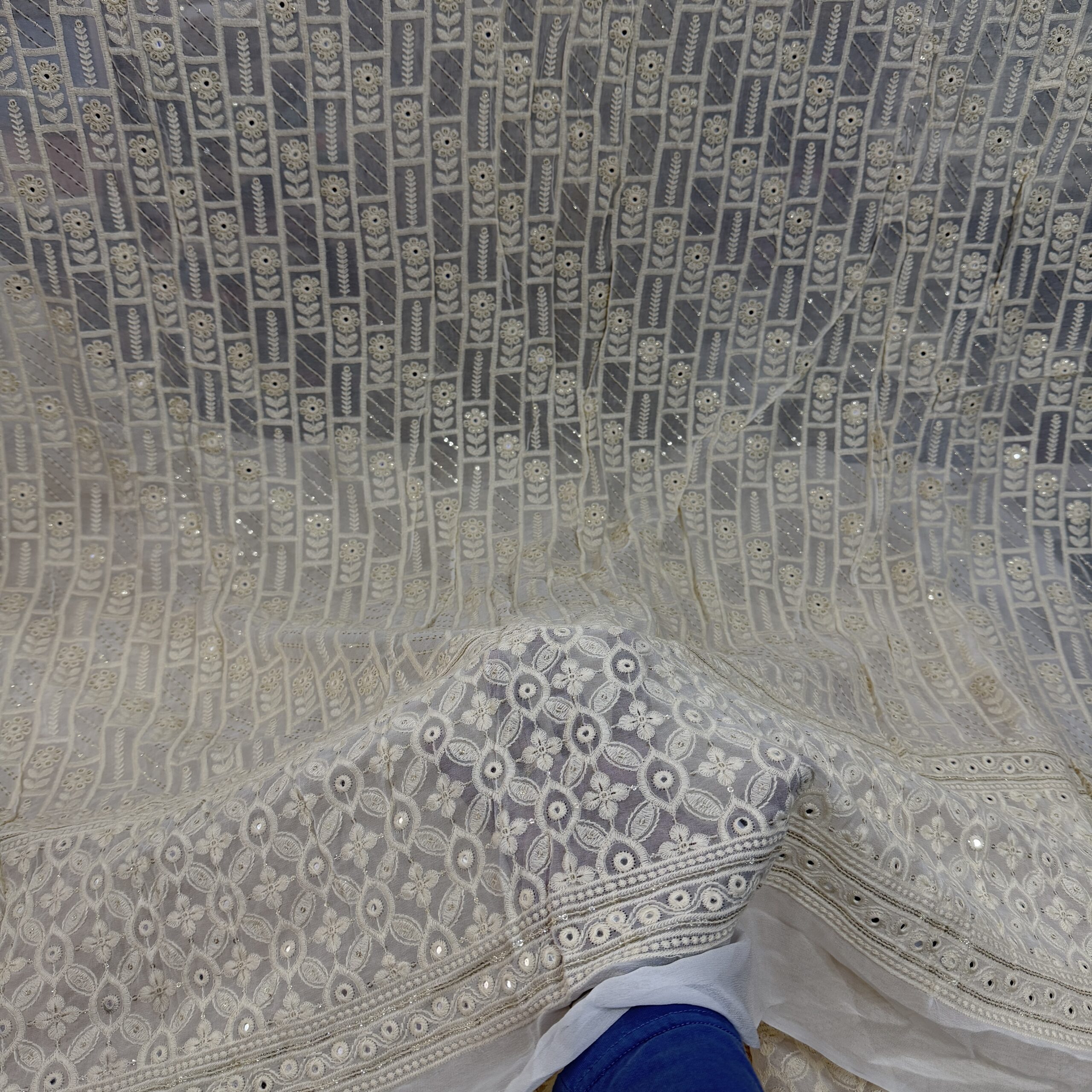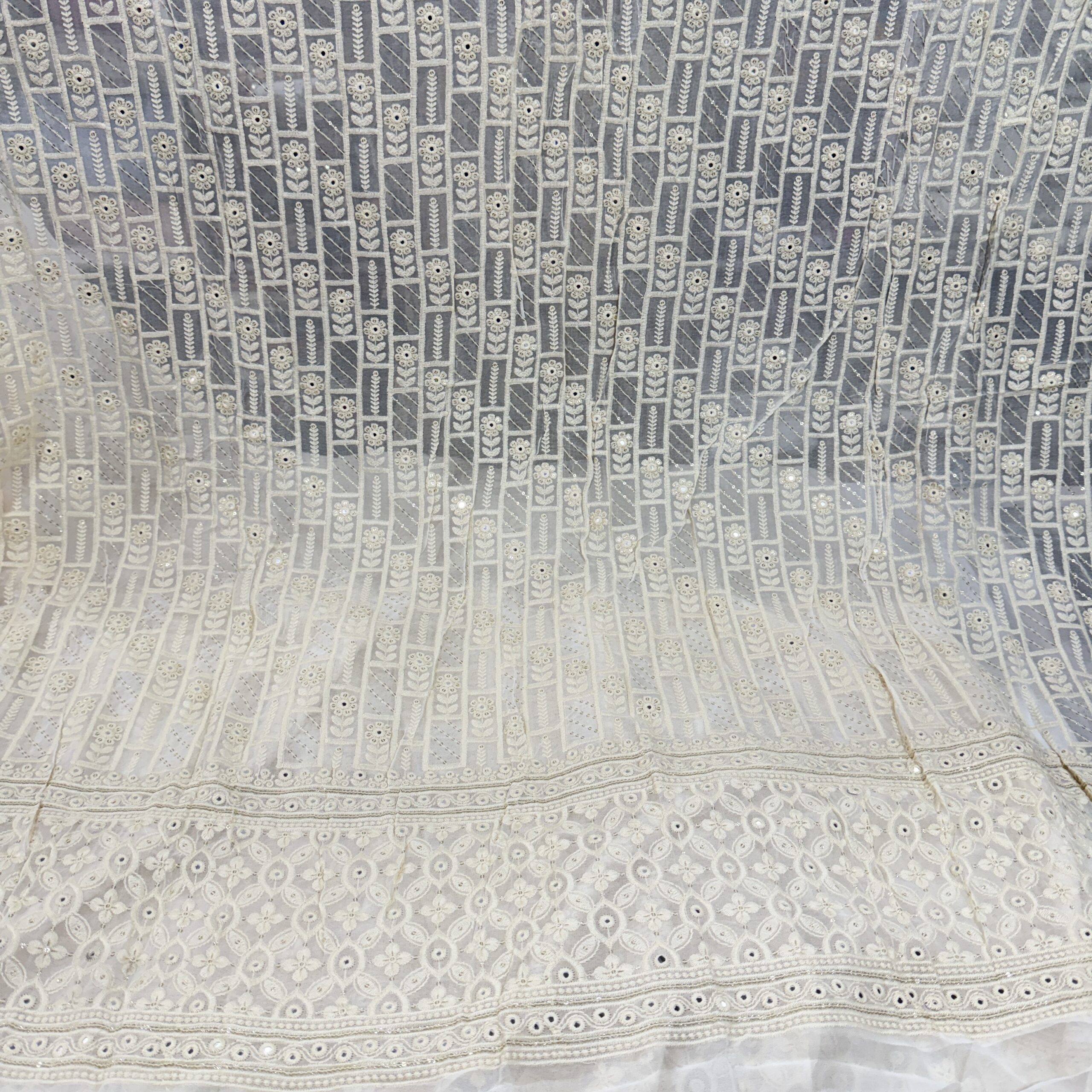Premium Lucknowi Georgette Fabric with Sequins Work – Lightweight Designer Fabric