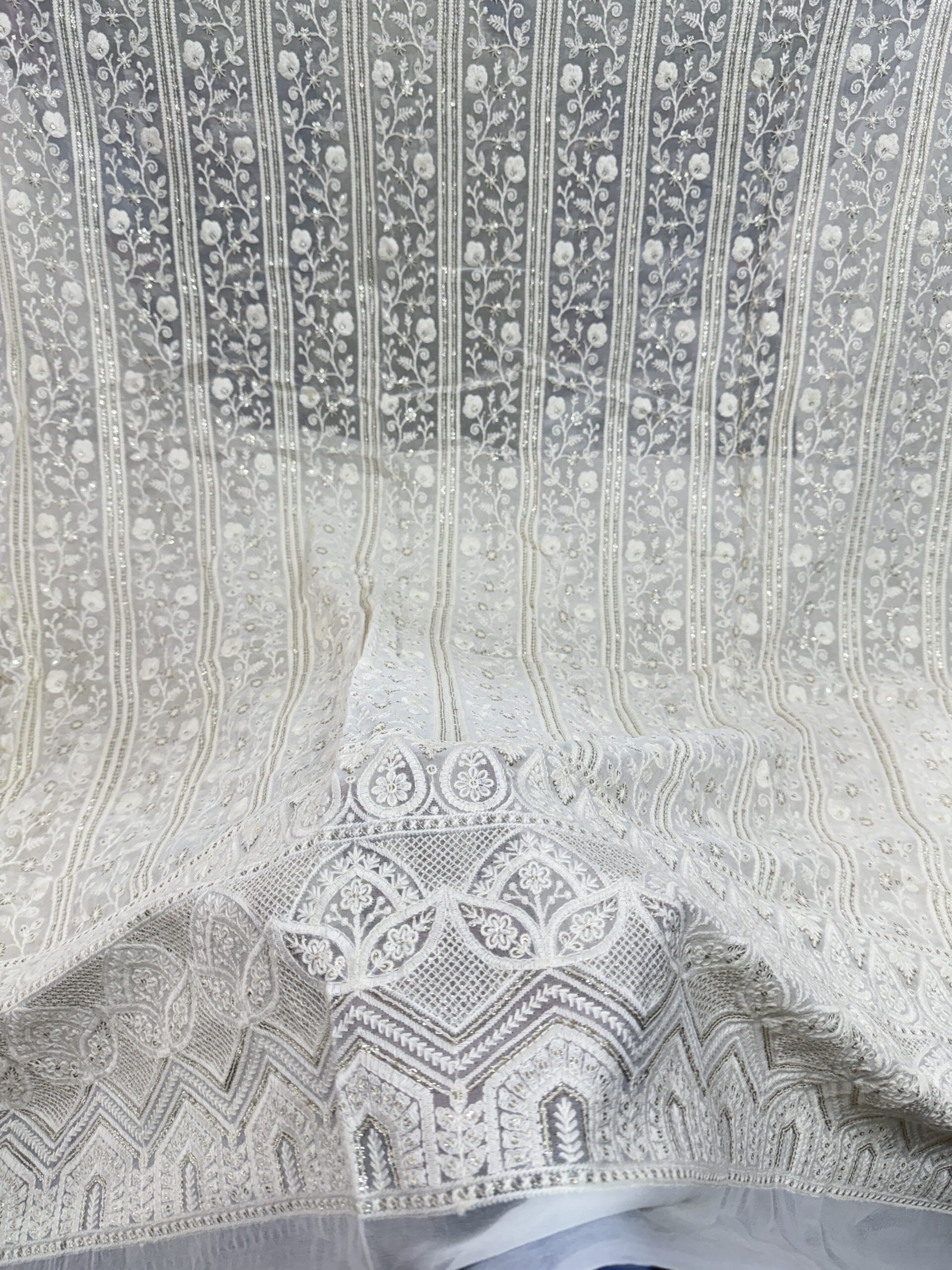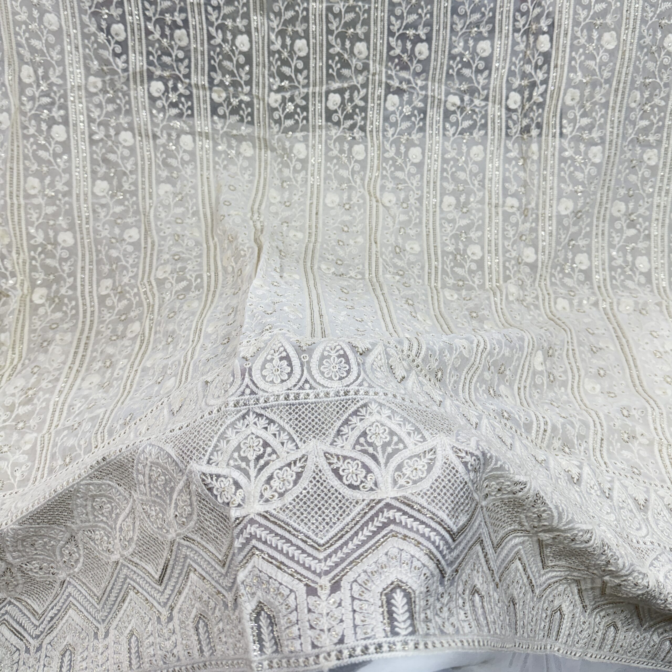 🌟 A trendy and versatile embroidered fabric that combines traditional Lucknowi craftsmanship with modern elegance, perfect for creating stylish outfits for both men and women.
