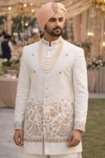 This stunning and premium fabric is perfect for creating coordinated couple outfits and family sets. Its smooth texture, rich shine, and detailed craftsmanship make it ideal for designing men’s kothi, jackets, sherwanis, jodhpuri outfits, as well as women’s lehengas, suits, indo-western outfits, and festive ensembles. 👑💃🤵