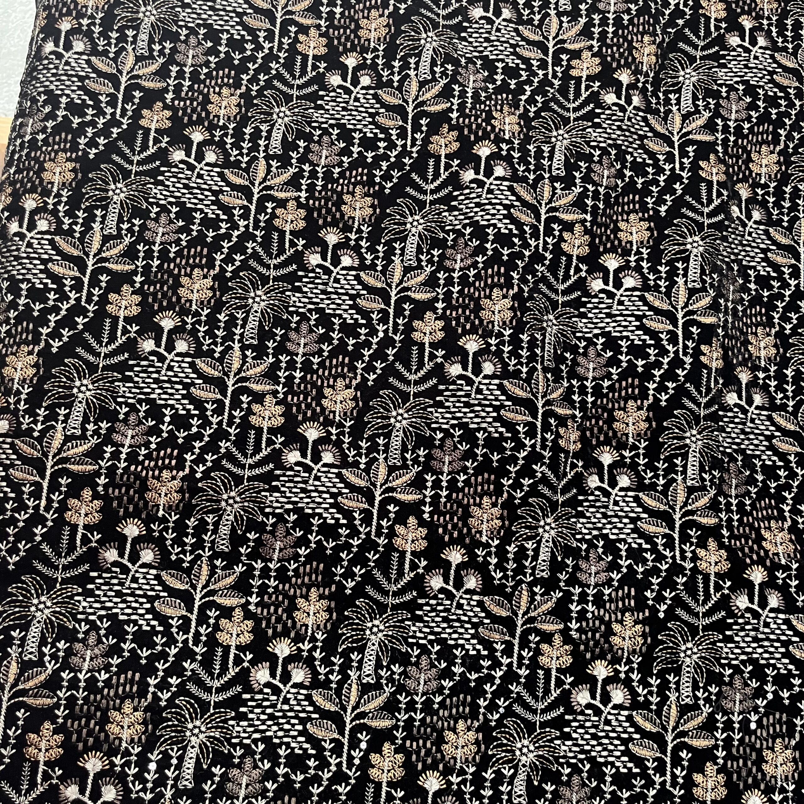 Elevate your style with our Trendy Velvet 9000 Fabric in classic black, featuring allover heavy multicolor embroidery with shimmering sequins work for a rich and luxurious look. This premium designer fabric is ideal for both men’s ethnic wear like Jodhpuri, jackets, achkans, and sherwanis, as well as women’s lehengas, gowns, and Indo-western outfits.