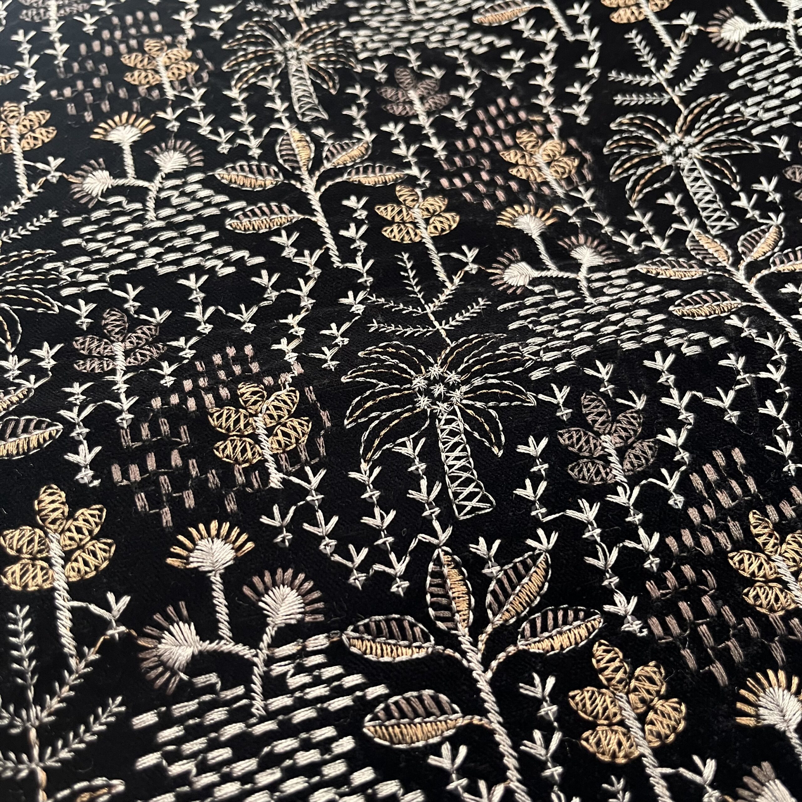 Premium Velvet 9000 Black Fabric with Heavy Multicolor Embroidery & Sequins – Wedding & Party Wear – ₹1050/Meter