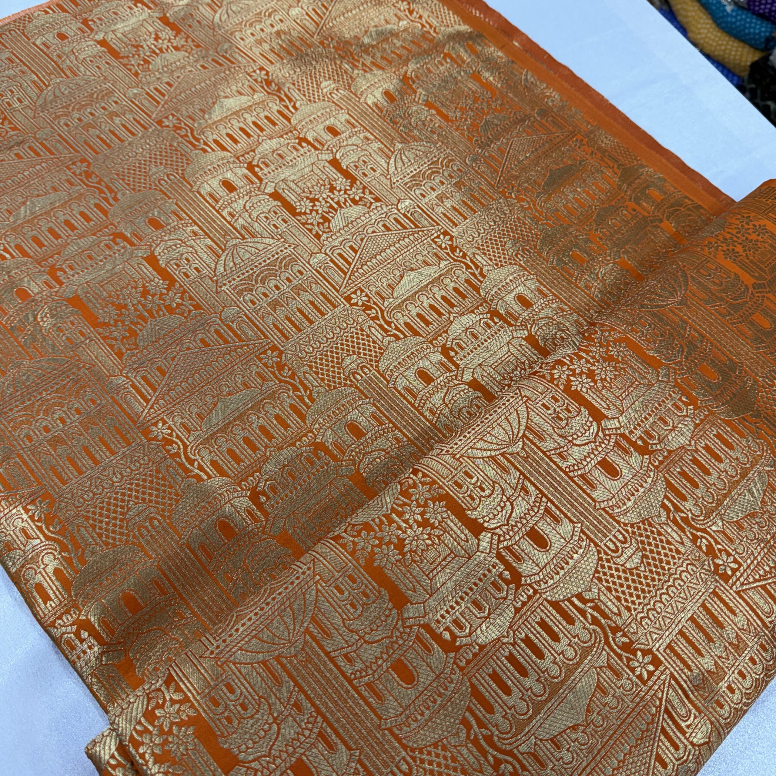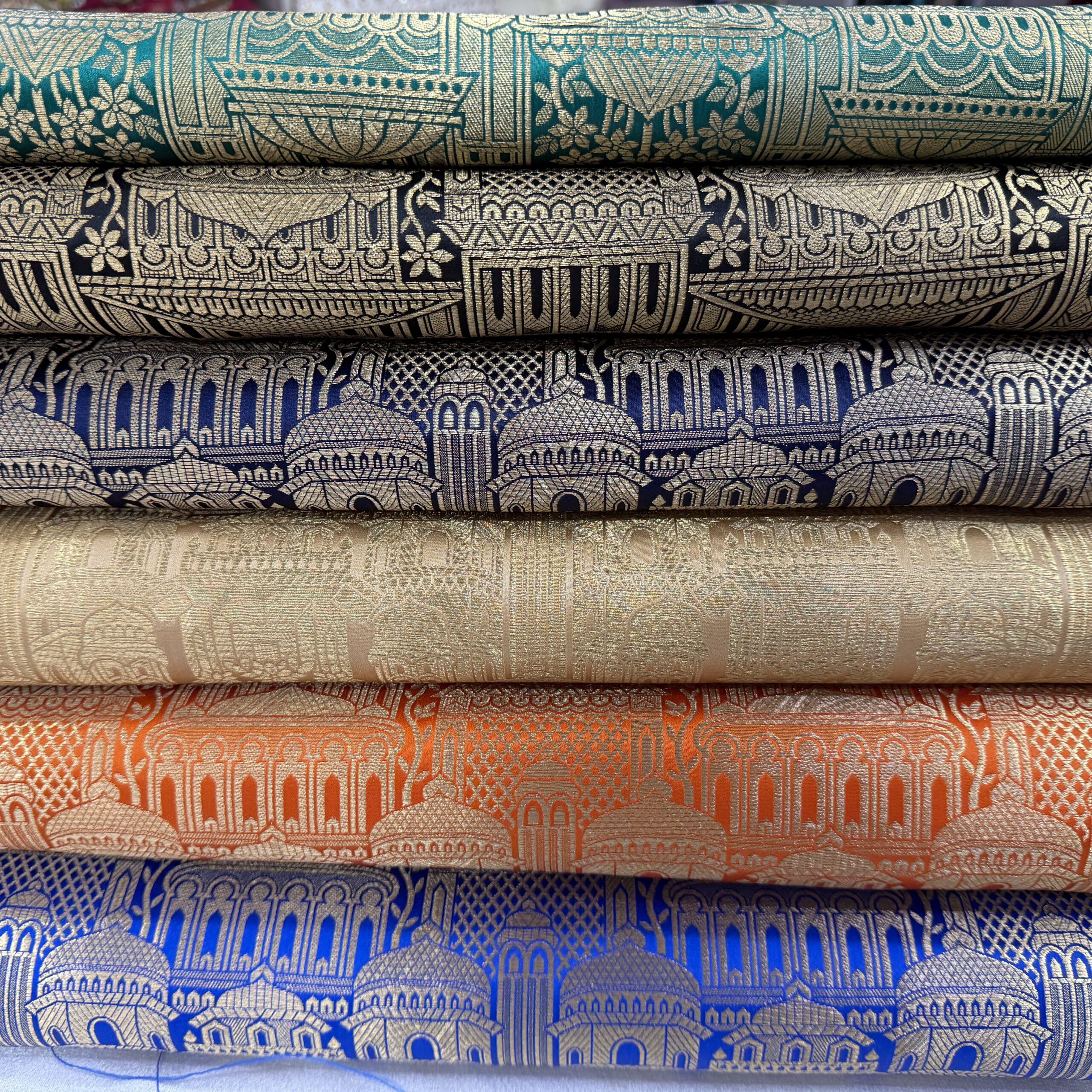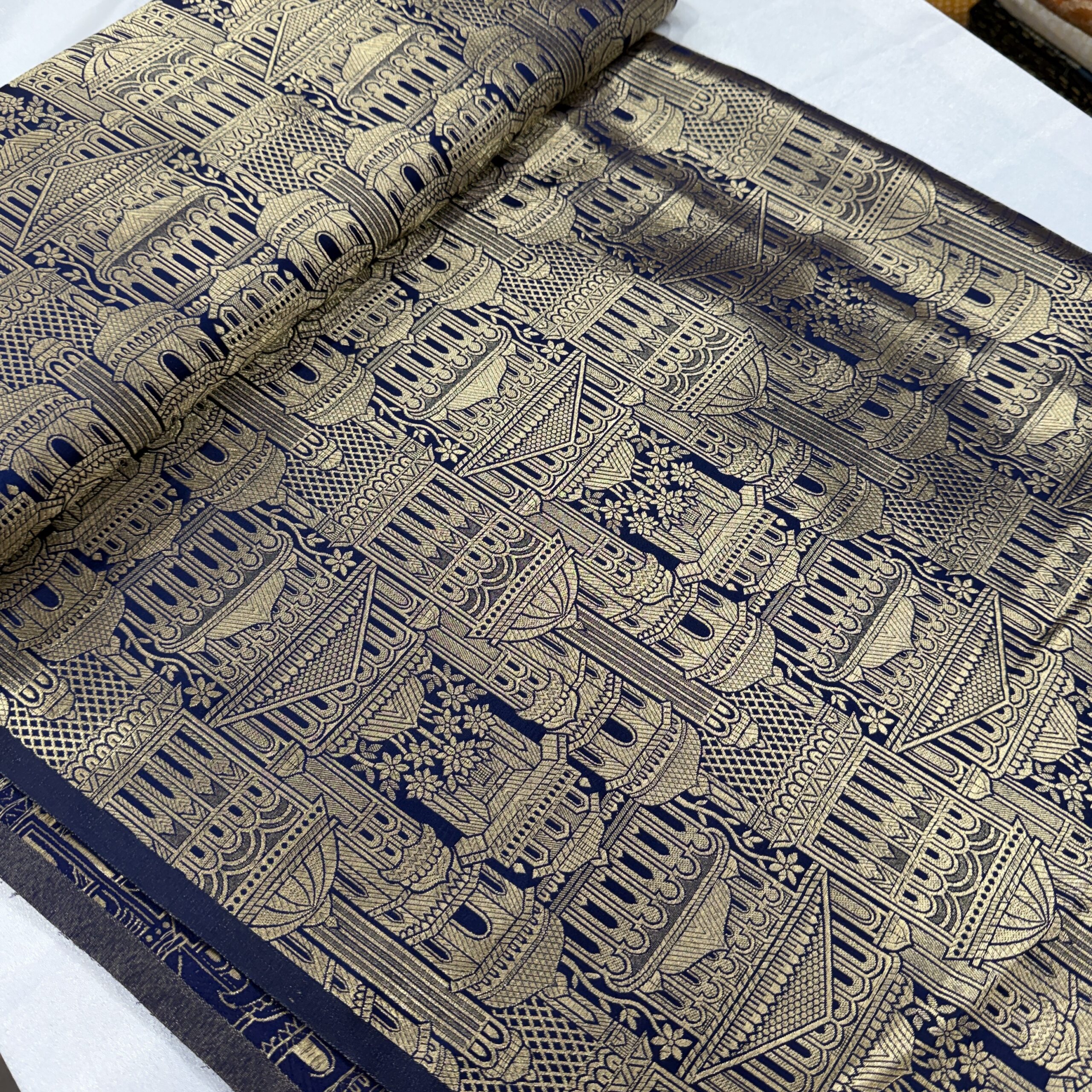 Elevate your festive and bridal collection with this Banarasi Kim Khab temple design fabric — a perfect blend of heritage craftsmanship and modern elegance 🌺