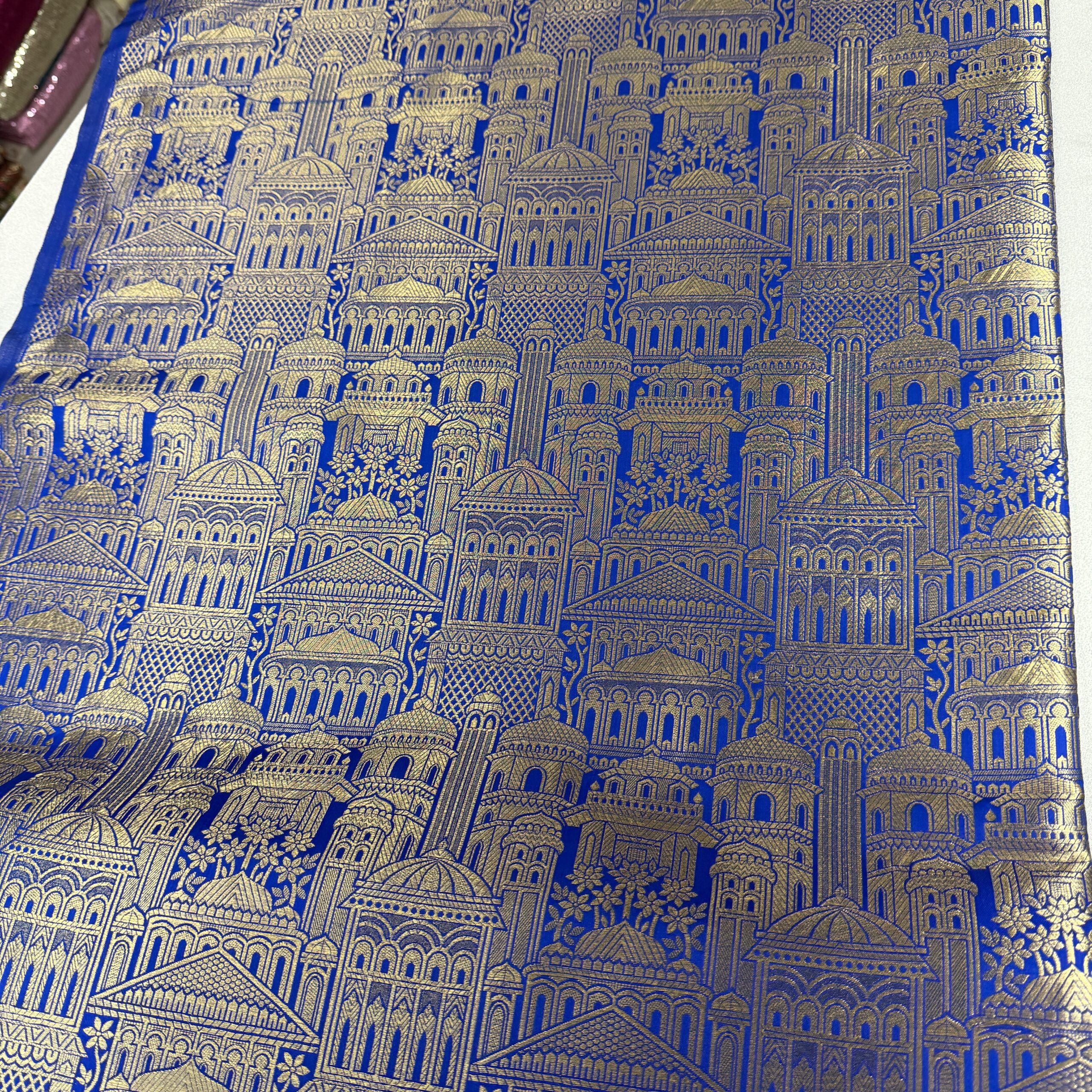 Bring home timeless elegance with this Pure Banarasi Kim Khab fabric featuring an exquisite allover temple motif design 🌸. Inspired by classic Indian architecture, the temple pattern adds a rich traditional charm while the luxurious kim khab weave gives a grand, royal finish 👑. This fabric is one of the most trending choices for wedding and party wear outfits this season.