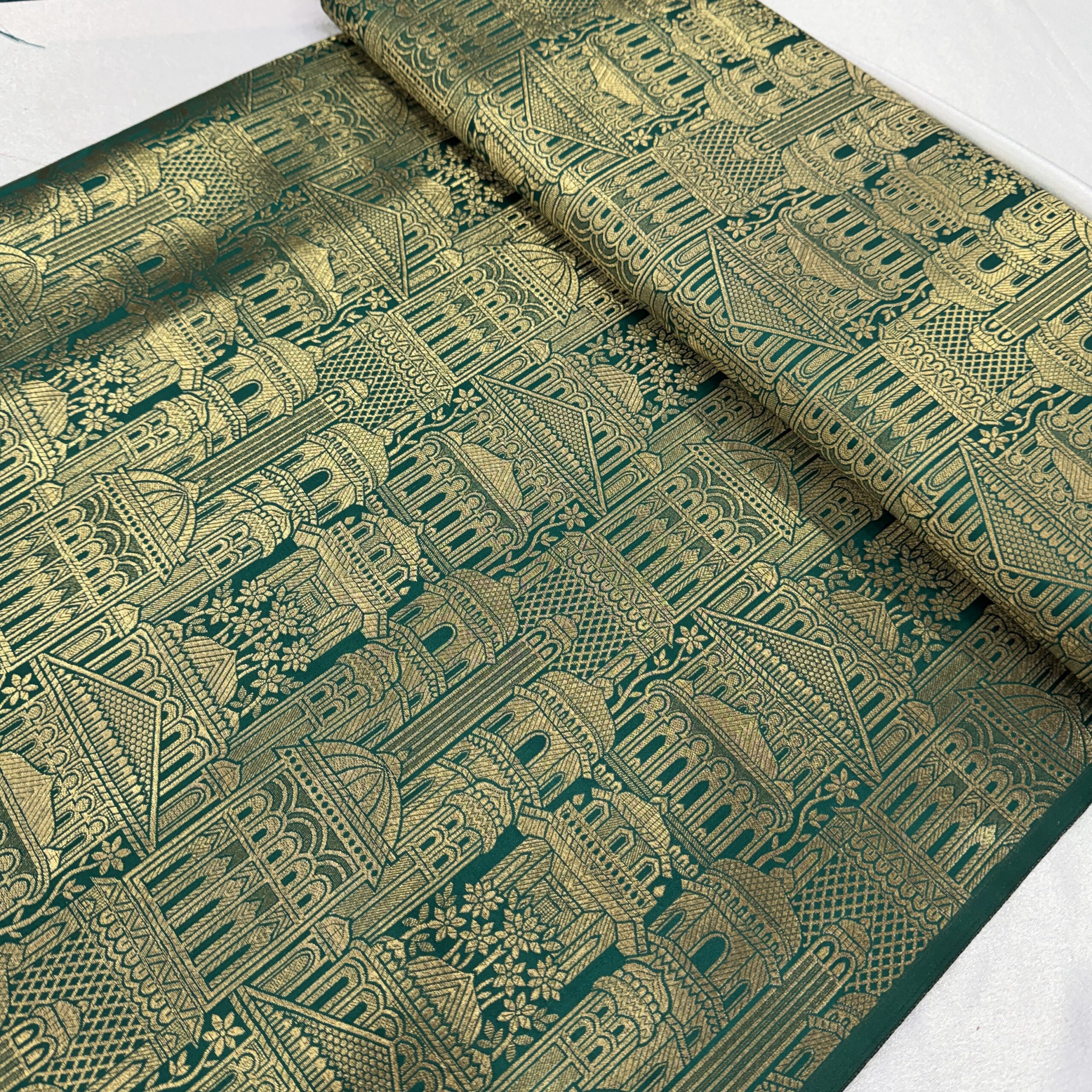 ✨🏛️ Pure Banarasi Kim Khab Fabric with Allover Temple Design – Royal Wedding & Festive Wear 🏛️✨