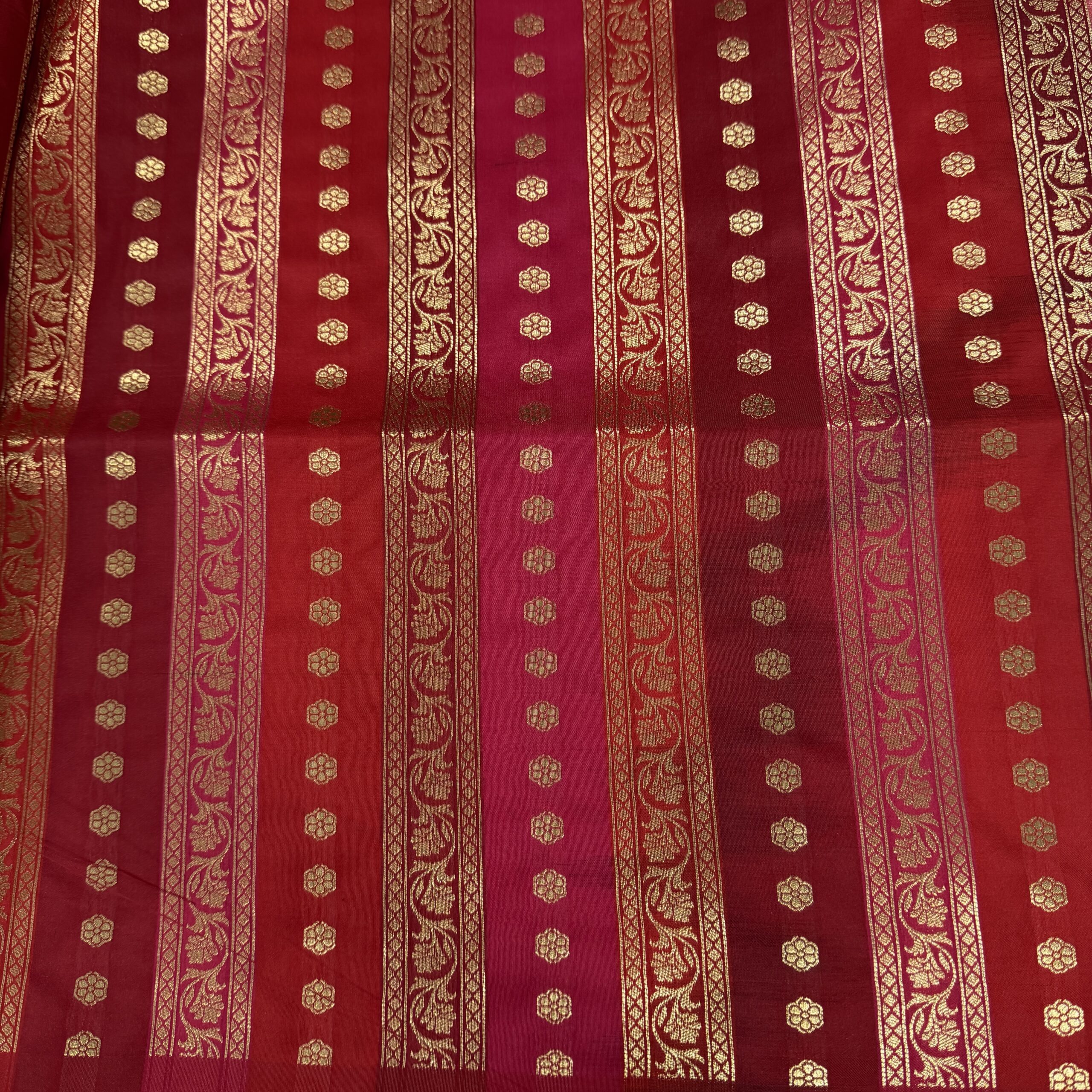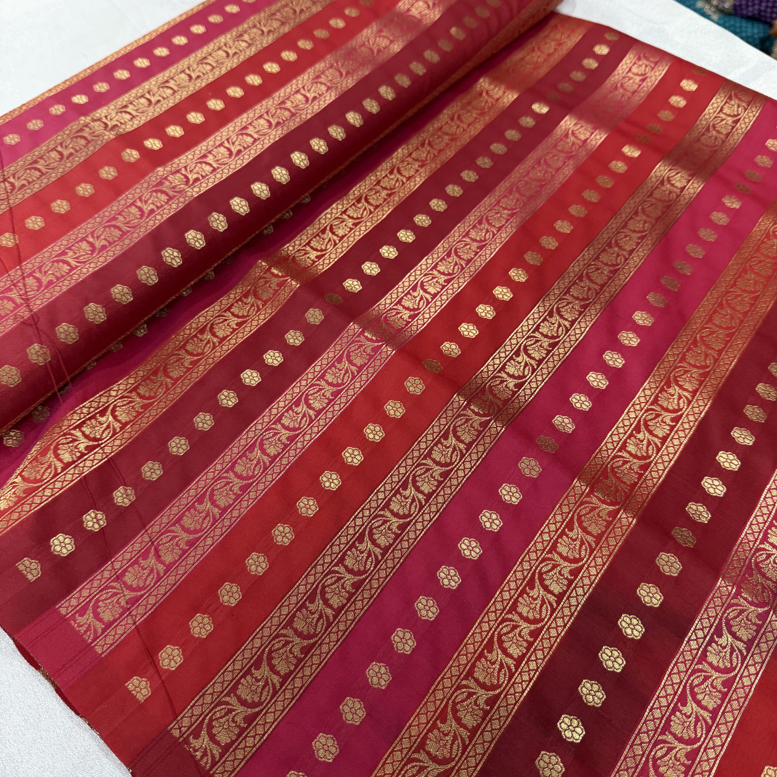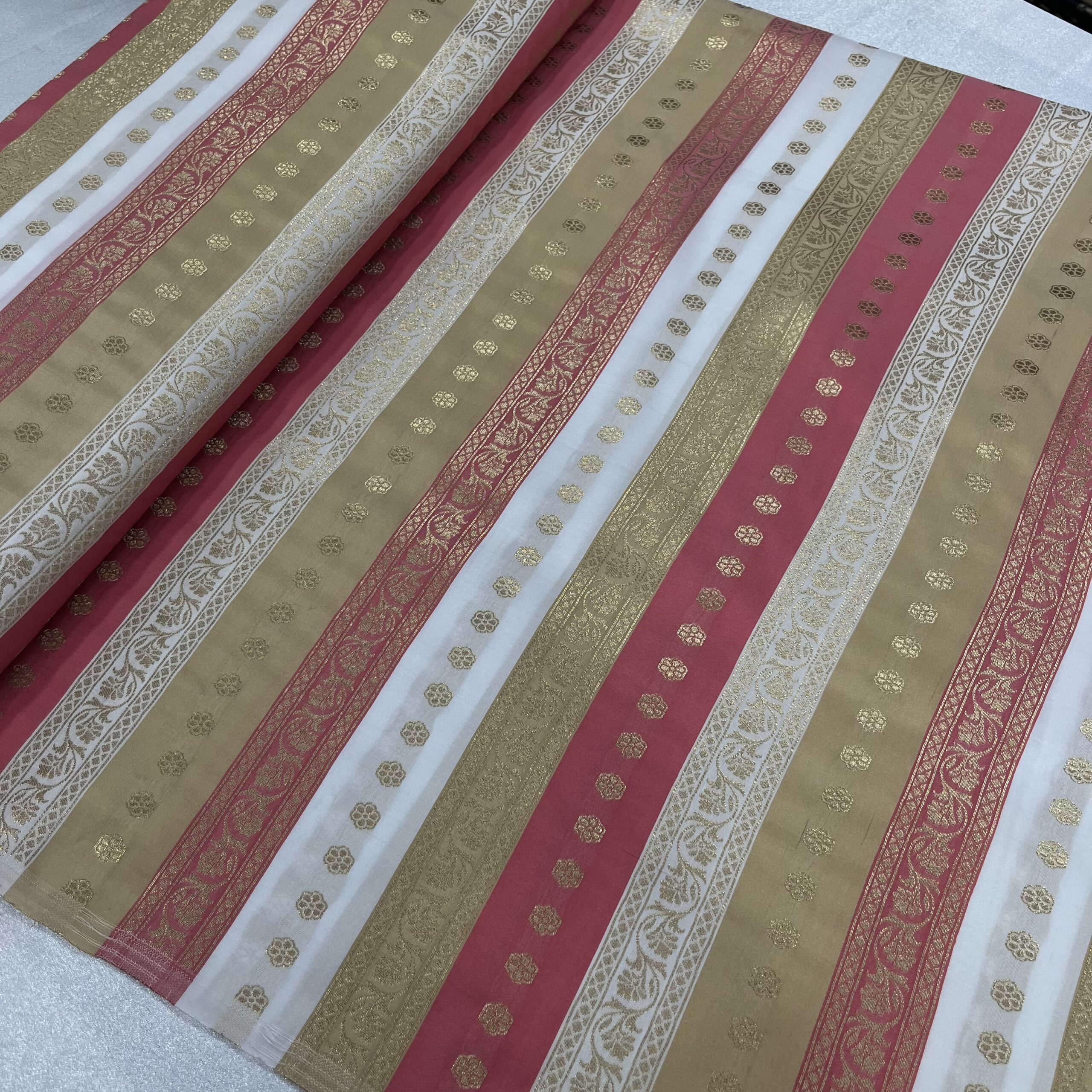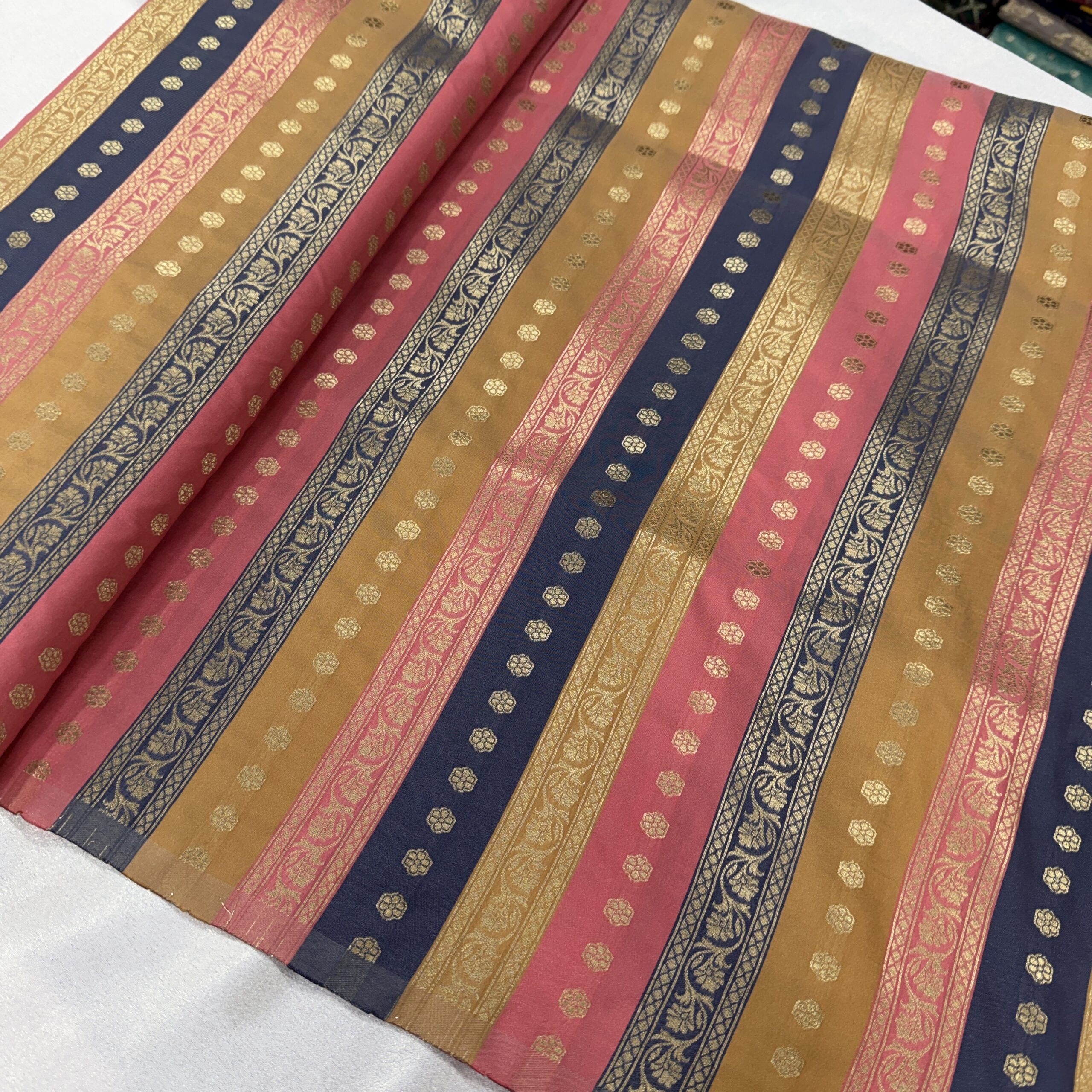 ✨🌸 Pure Banarasi Stripe Print Fabric with Multicolor Butti Work – Elegant & Festive Wear Fabric 🌸✨