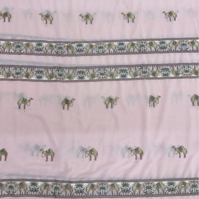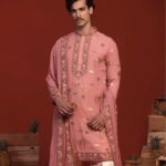 Add a touch of royal Rajasthan to your festive wardrobe with this Pure Georgette Kurta Precut Set for Men, crafted in a soothing peachish pink shade. Featuring a traditional Rajasthani camel motif, this designer precut set offers a rich ethnic appeal with heavy detailing on the front, back, and sleeves, paired with a ready dupatta for a complete and elegant look.