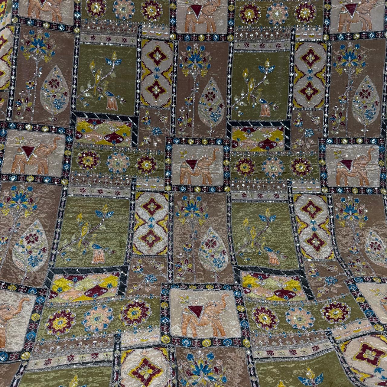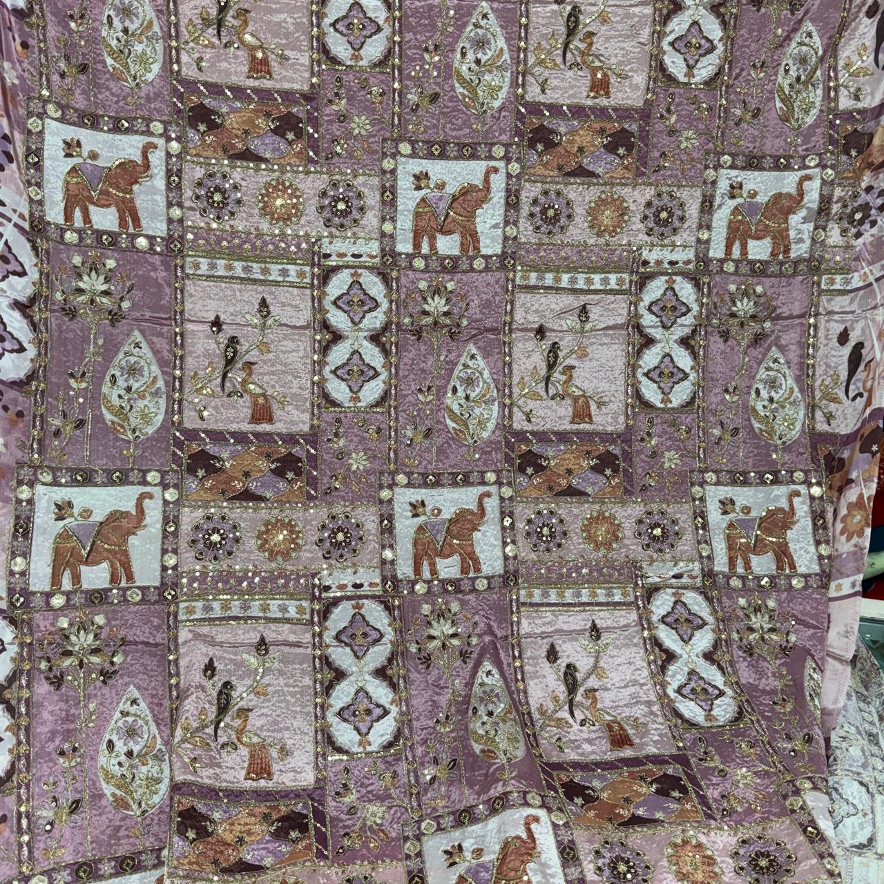 Add timeless elegance to your festive and wedding creations with this premium pure natural crepe fabric featuring an artistic allover design with beautiful elephant motifs and floral work combined with classy position printing ✨