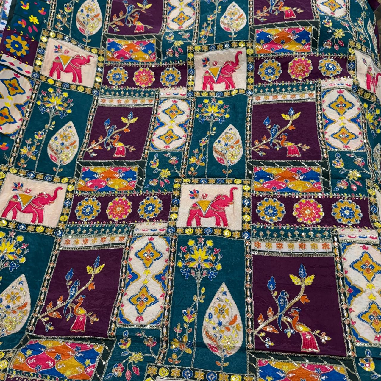 Pure georgette fox mirror embroidery fabric