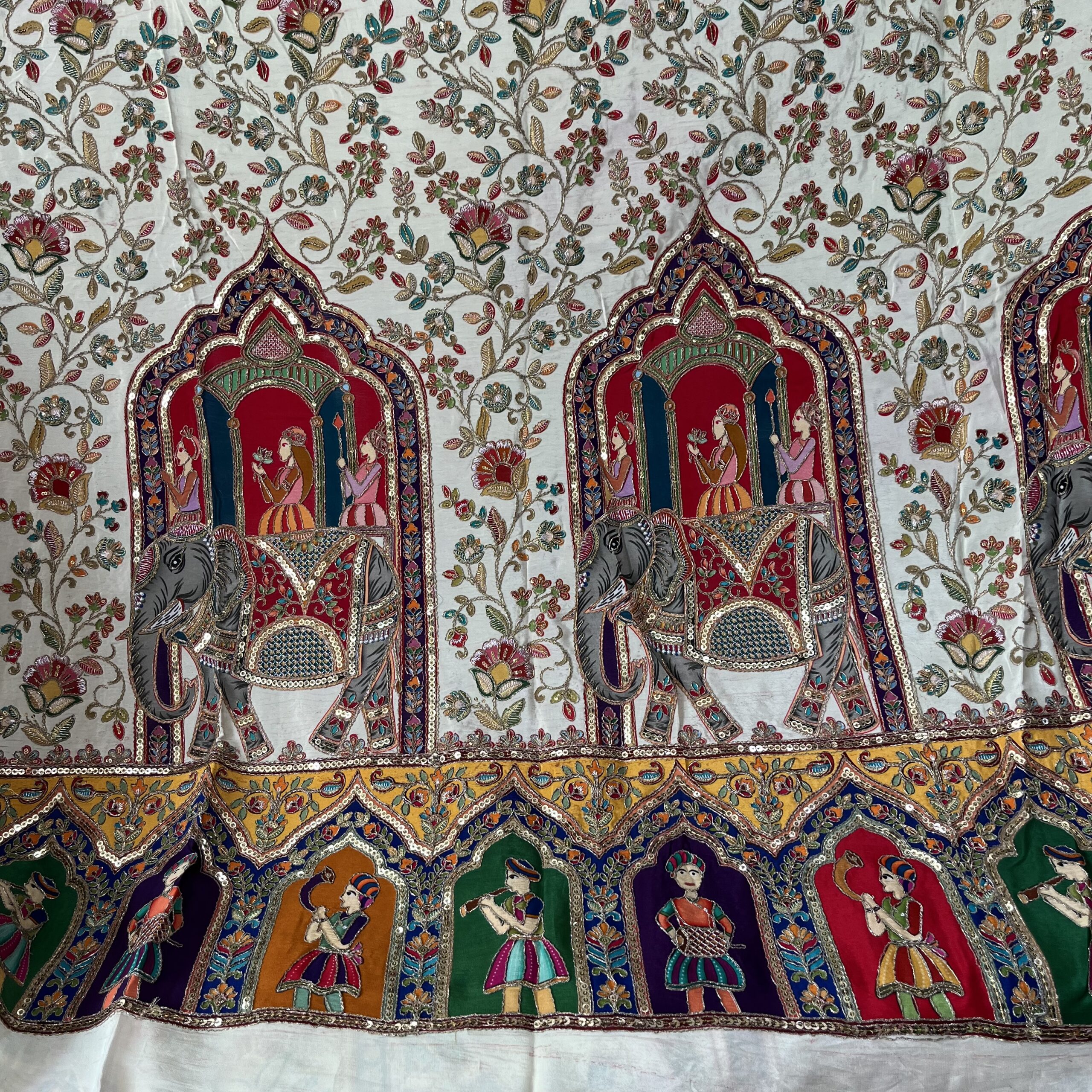 Pure Natural Crepe Fabric with Heavy Gudda Gudia Panel & Big Elephant Design | ₹1250/mtr | Width 44 Inches
