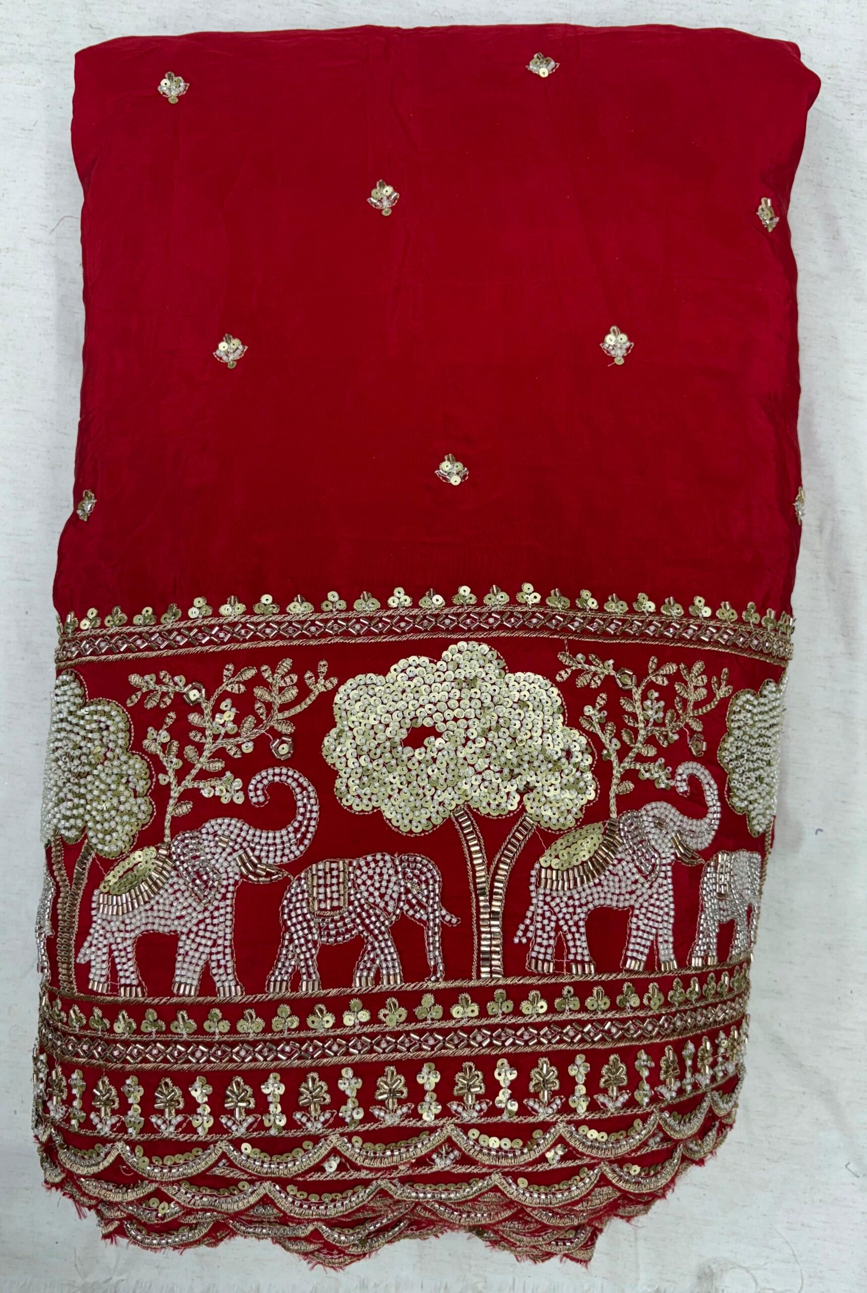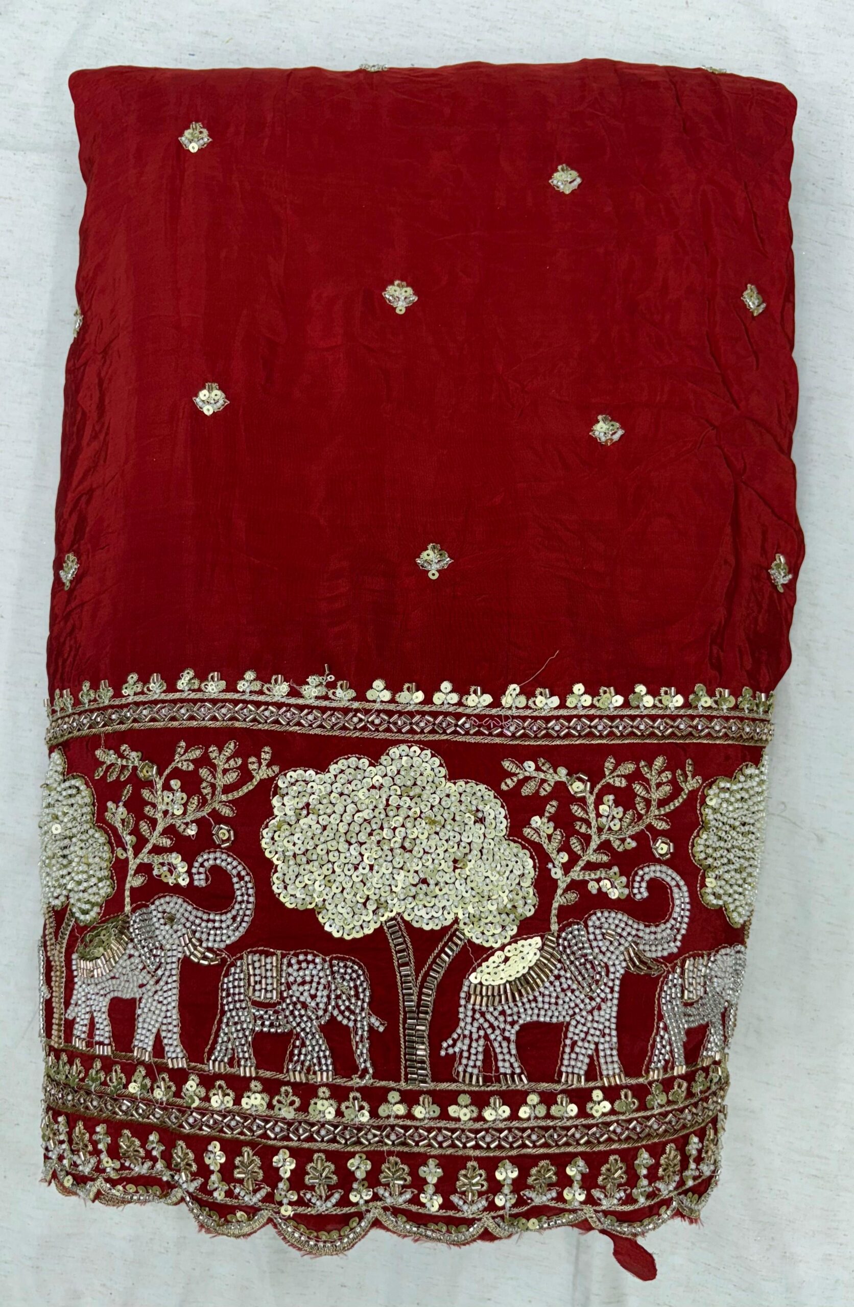 Pure Natural Crepe Handwork Fabric with Heavy Elephant Border | Rajasthani Cultural Design | ₹1250/mtr | Width 44 Inches