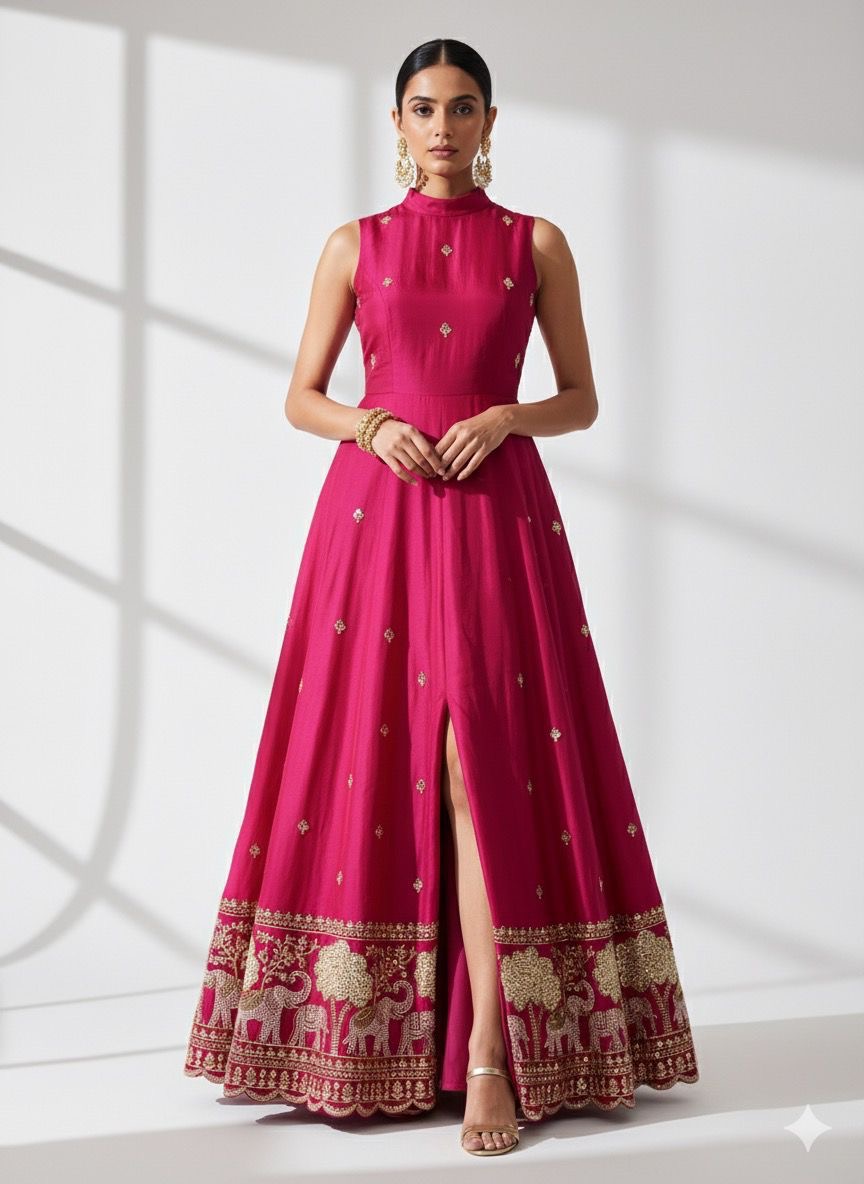 Crafted from luxurious natural crepe, this fabric drapes beautifully and is perfect for designing lehenga cholis, Indo-Western outfits, anarkalis, suits, kurtas, and jackets for both men and women. Ideal for wedding wear, festive outfits, sangeet nights, and cultural celebrations, it’s a timeless blend of heritage and elegance.