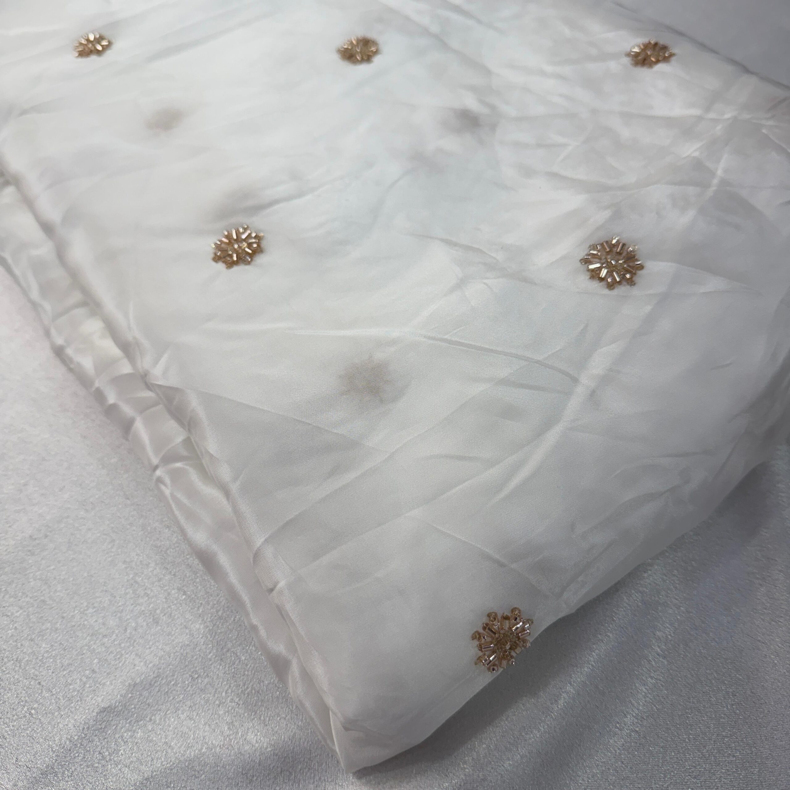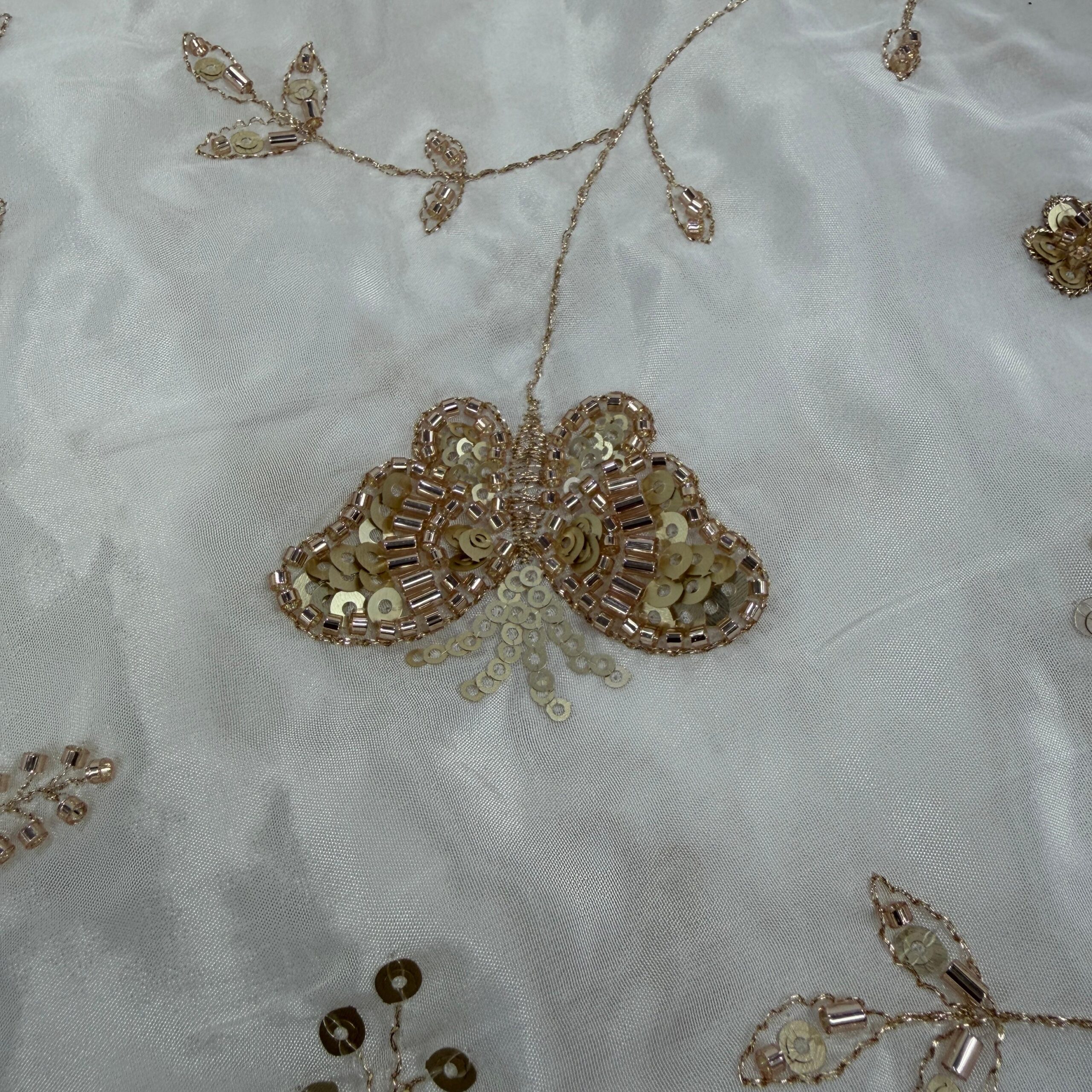 Upgrade your designer collection with this pure natural crepe handwork fabric, featuring an exquisite allover jaal work design with two stunning butterfly and traditional kairi motifs 🦋✨. Inspired by celebrity-style outfits, this fabric delivers a high-end, couture look perfect for modern weddings and festive fashion.
