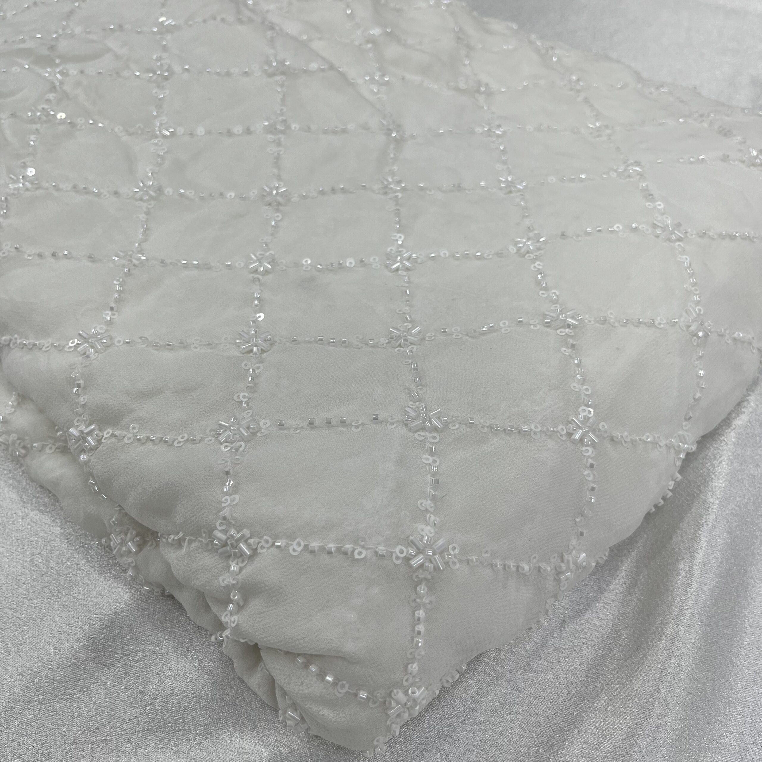Pure Viscose Georgette Dyeable Fabric with Handwork Cutdana Square Design – Elegant Choice for Weddings & Festive Outfits