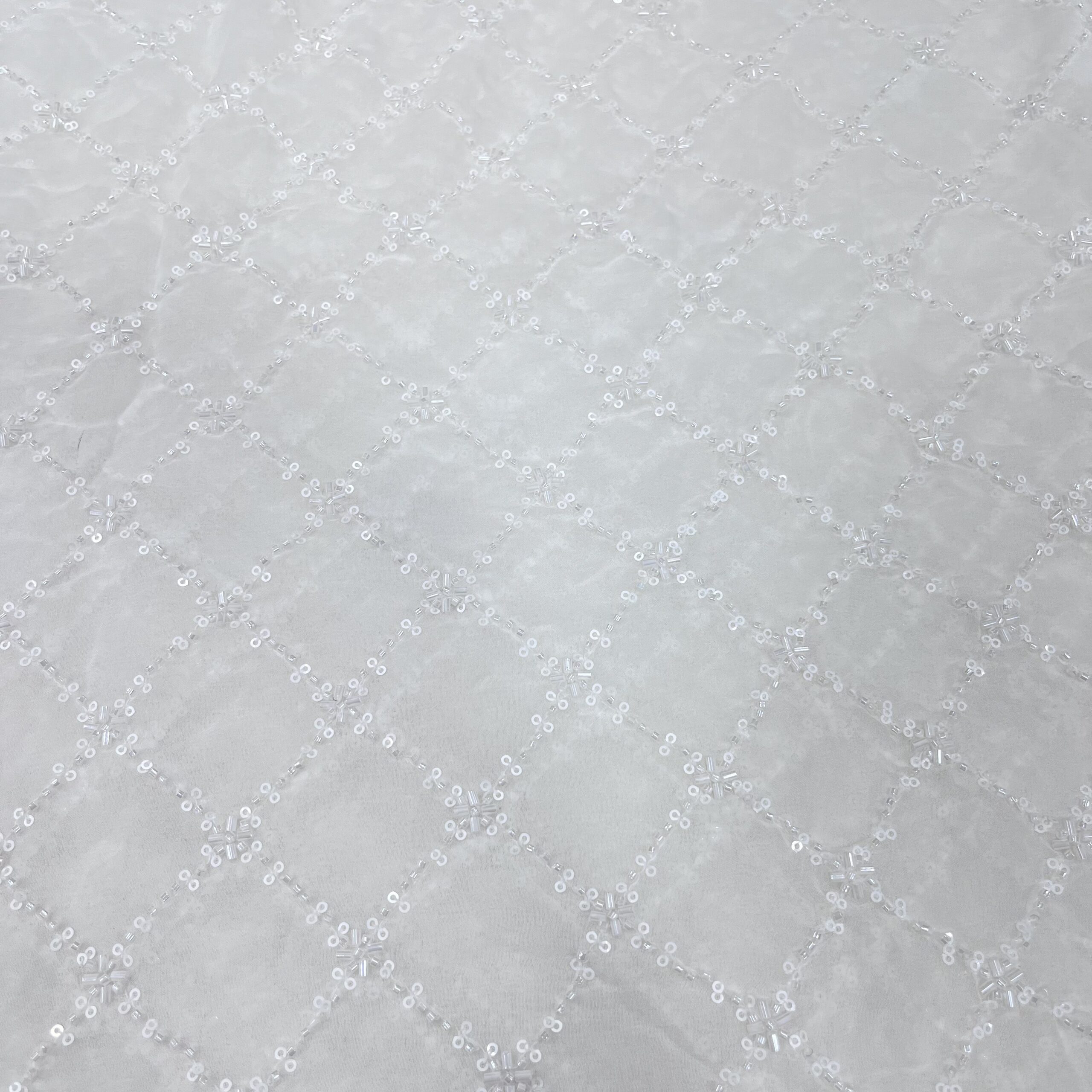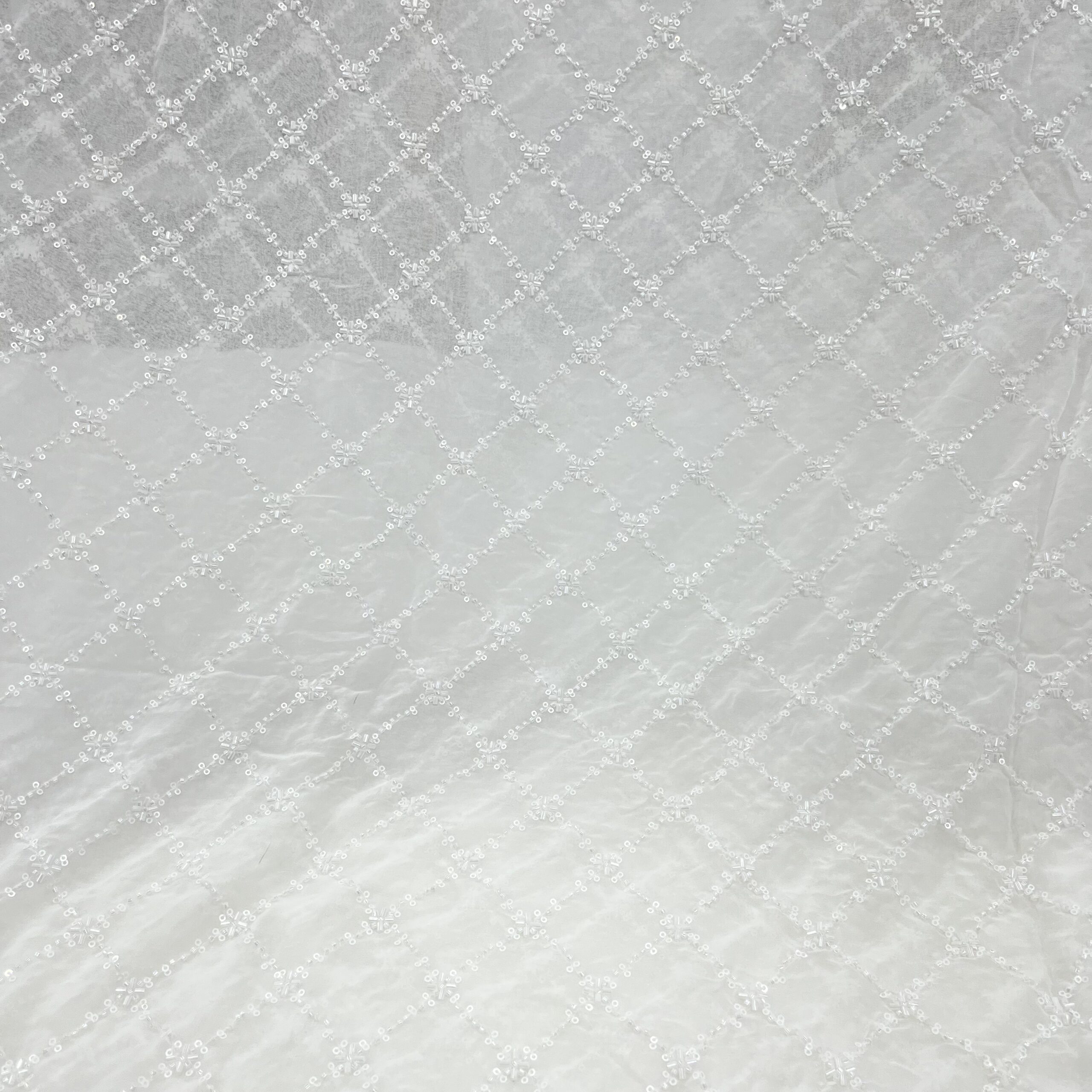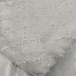 Discover timeless elegance with our Pure Viscose Georgette Dyeable Fabric, beautifully embellished with handwork cutdana square patterns and white bead detailing all over. This luxurious fabric offers a perfect balance of sophistication and craftsmanship, making it ideal for designer creations for both men and women.