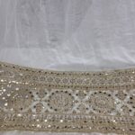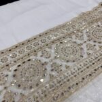 Discover the elegance of our Pure Viscose Georgette Dyeable Fabric featuring a heavy border with fox mirror and embroidery work, perfect for creating luxurious and designer outfits. The unique advantage of this fabric is that it can be dyed in your favorite color, giving you the freedom to customize your dream look.