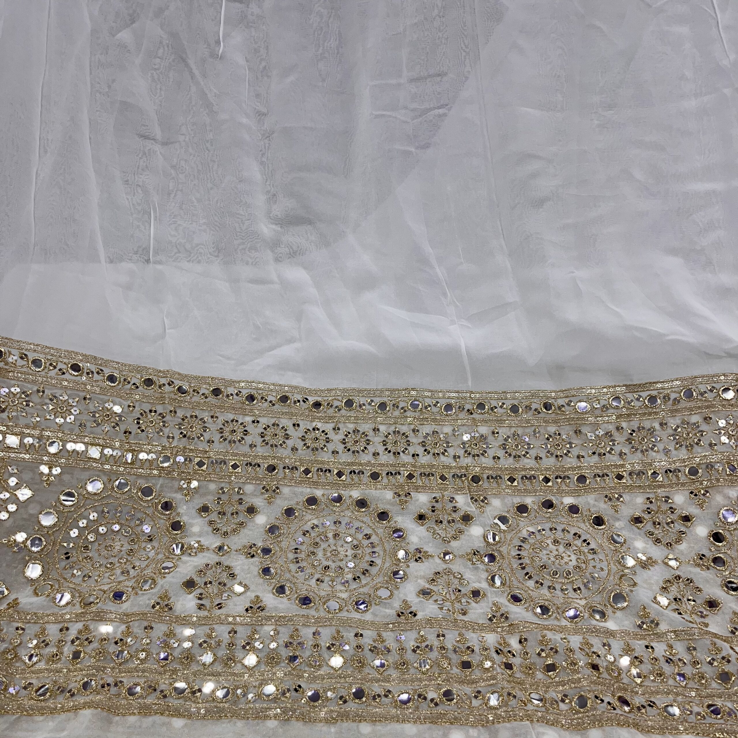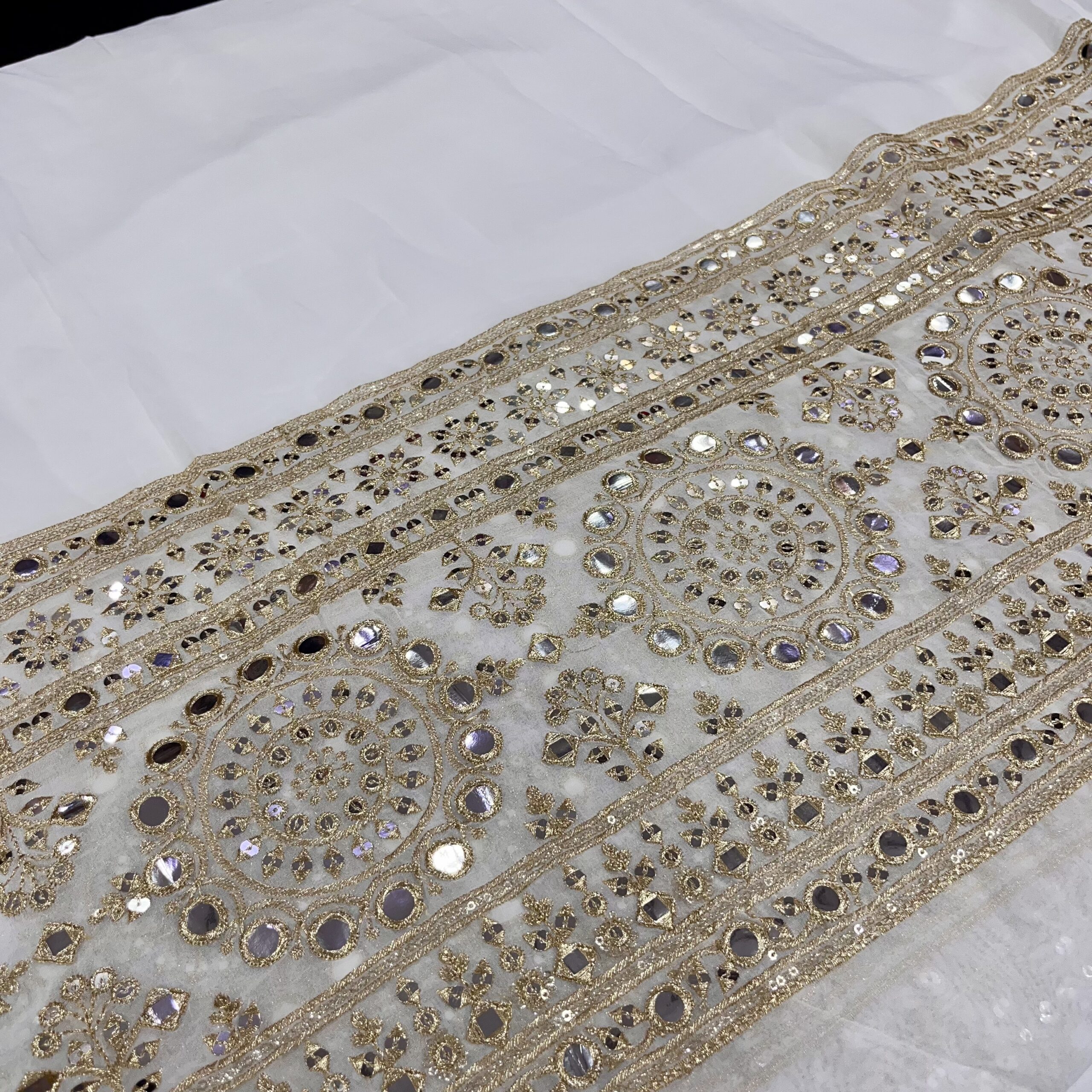 Pure Viscose Georgette Dyeable Fabric with Heavy Border Fox Mirror & Embroidery Work | Party & Wedding Wear