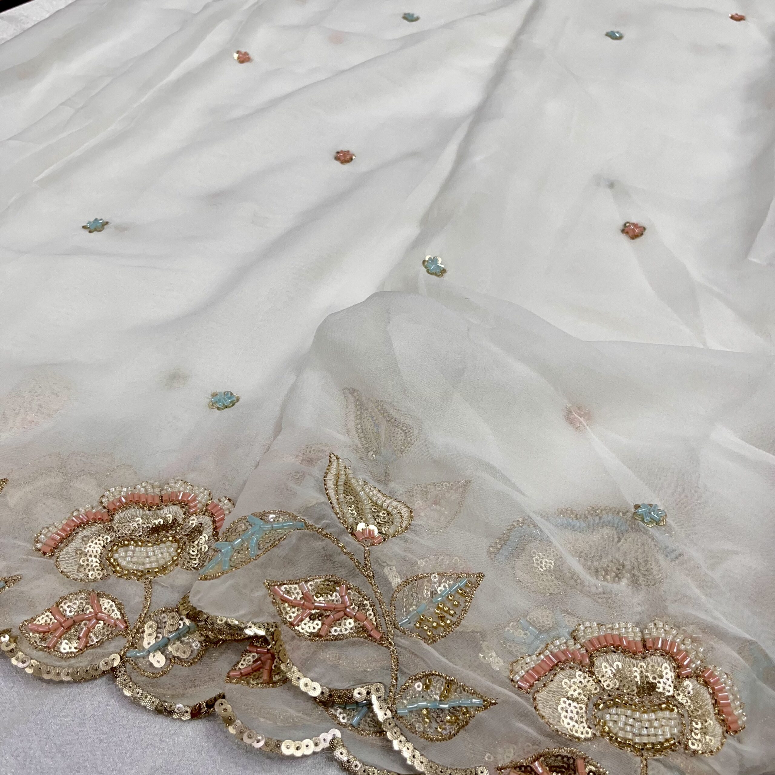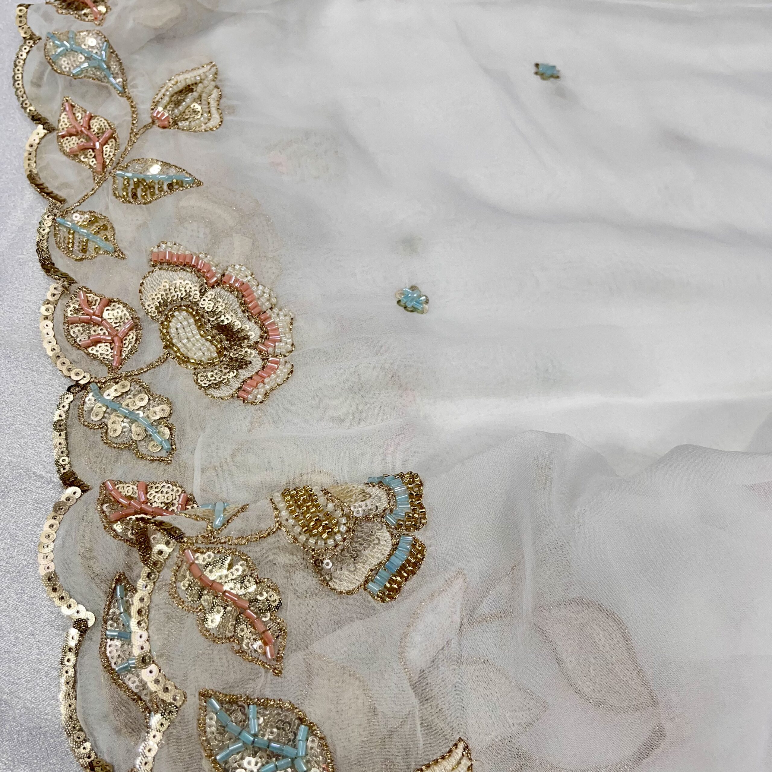 Craft a designer look with this versatile and elegant handcrafted dupatta that blends tradition with sophistication.