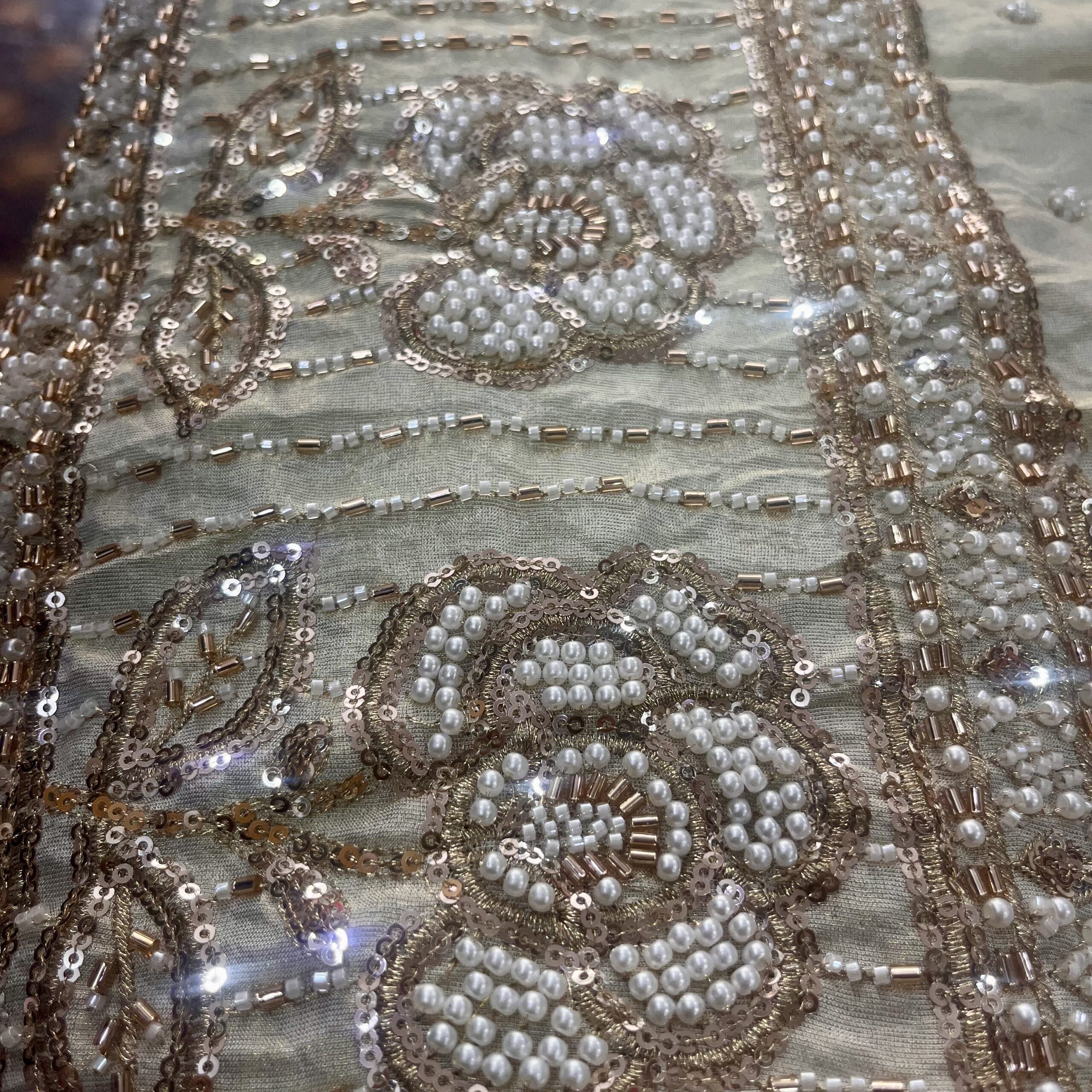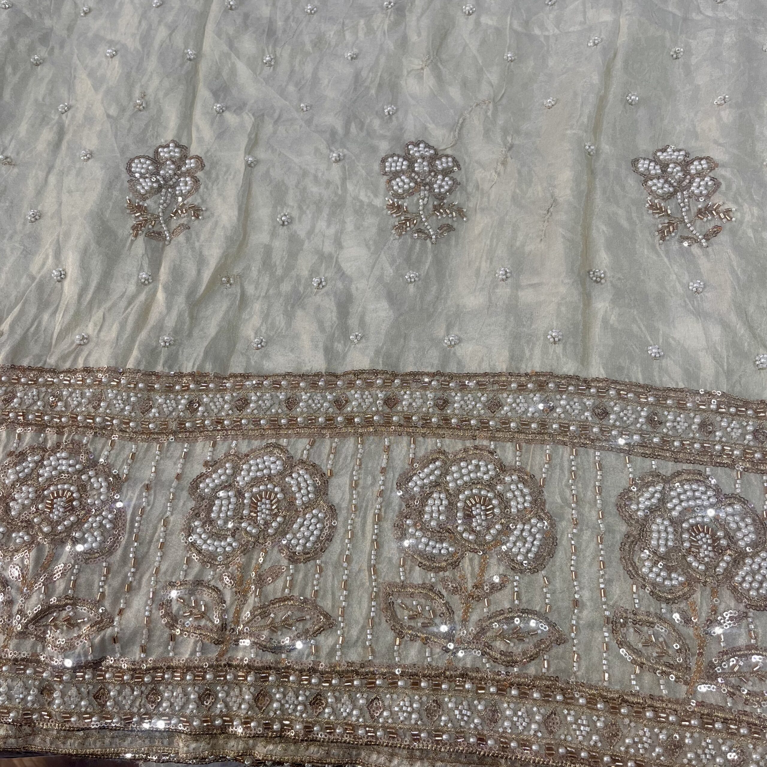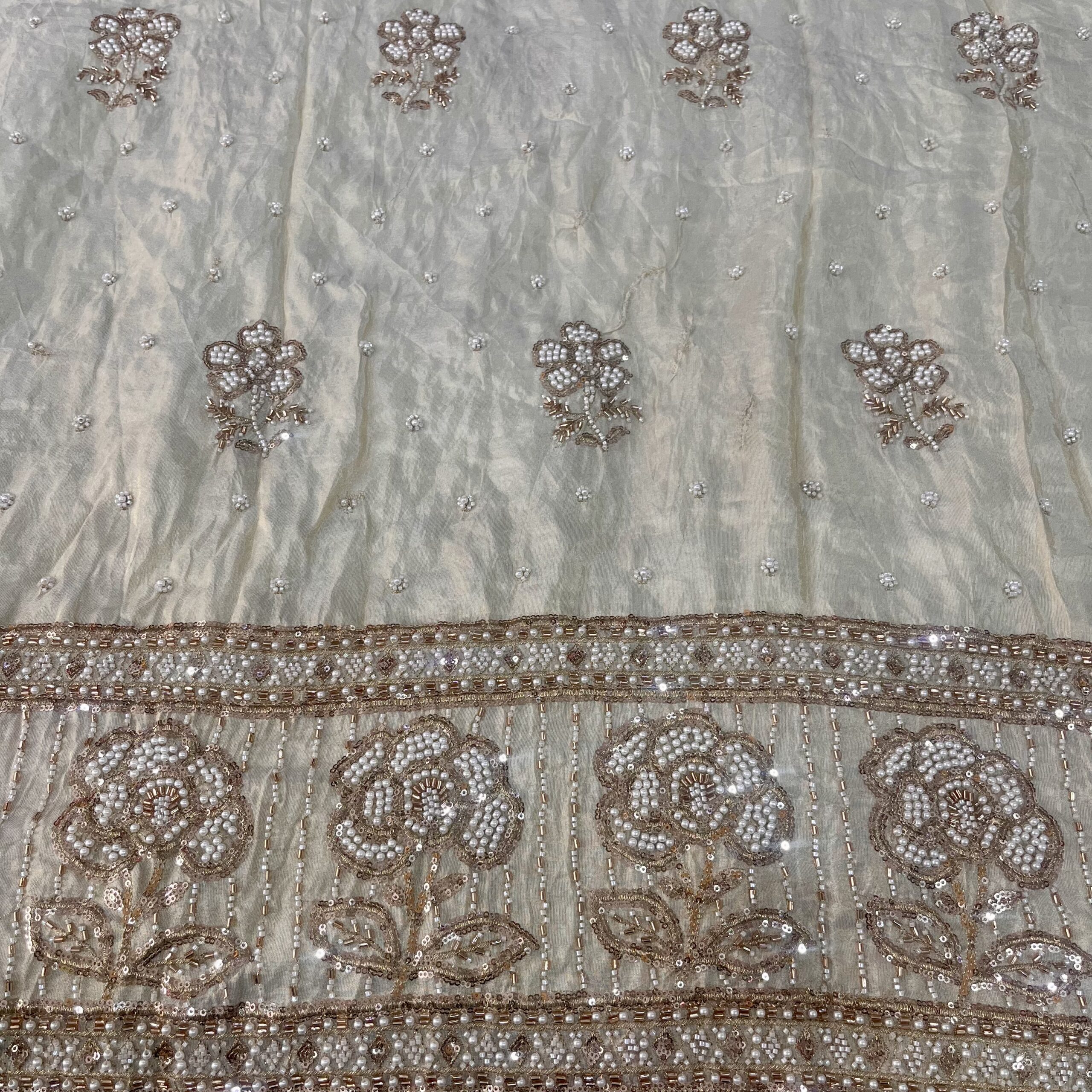 Pure Zari Tissue Handwork Dyeable Fabric with Heavy Floral Beads & Daman Design – Perfect for Wedding & Festive Outfits