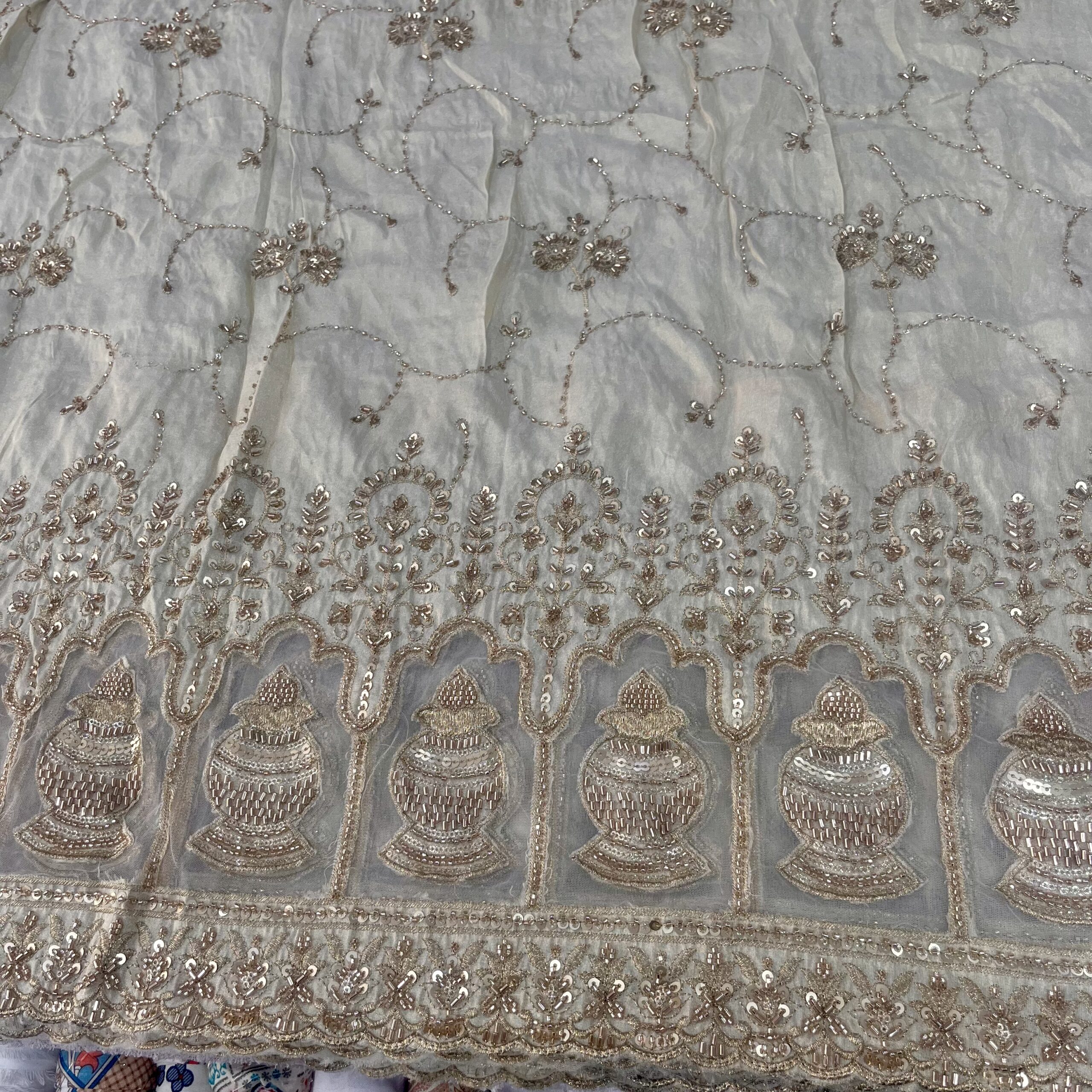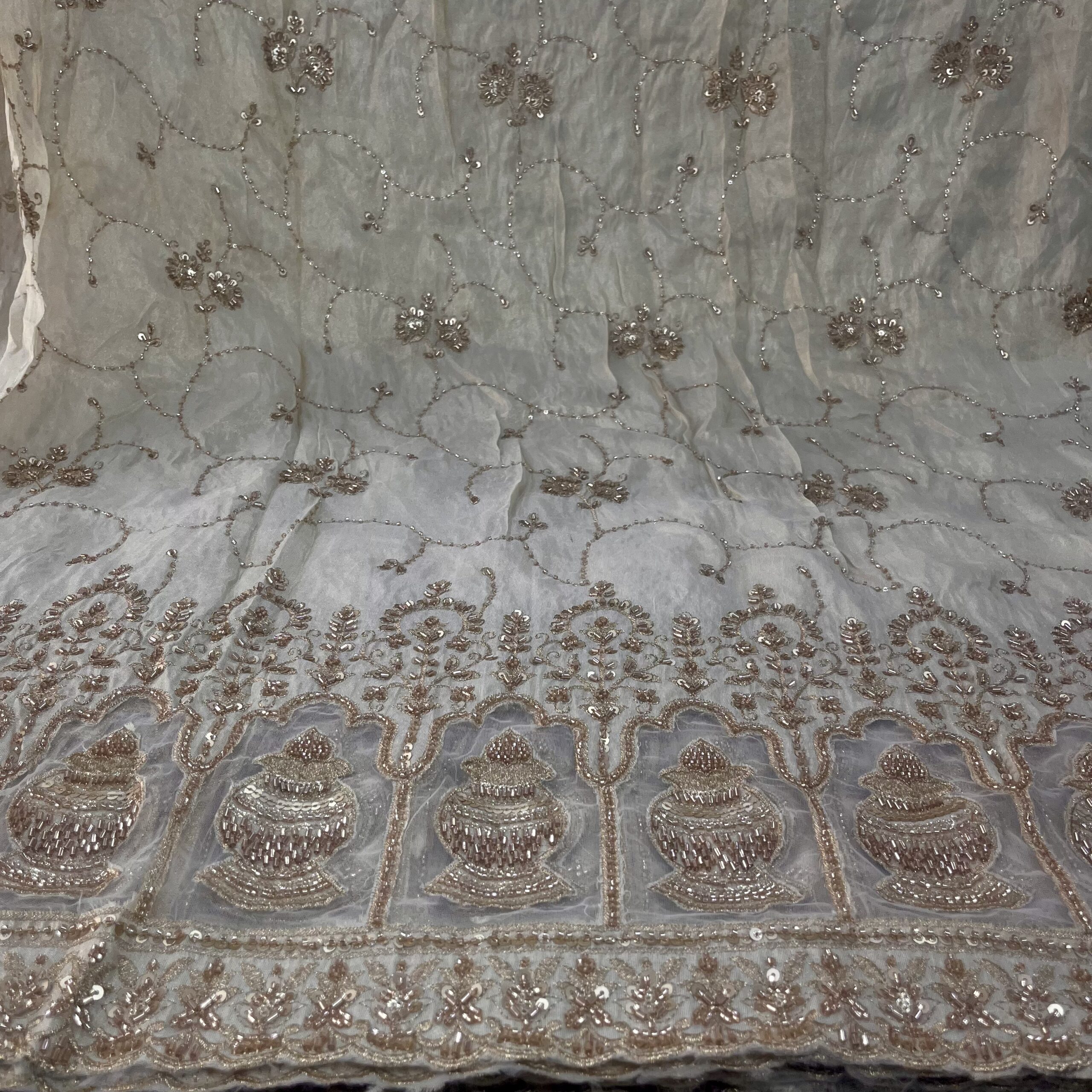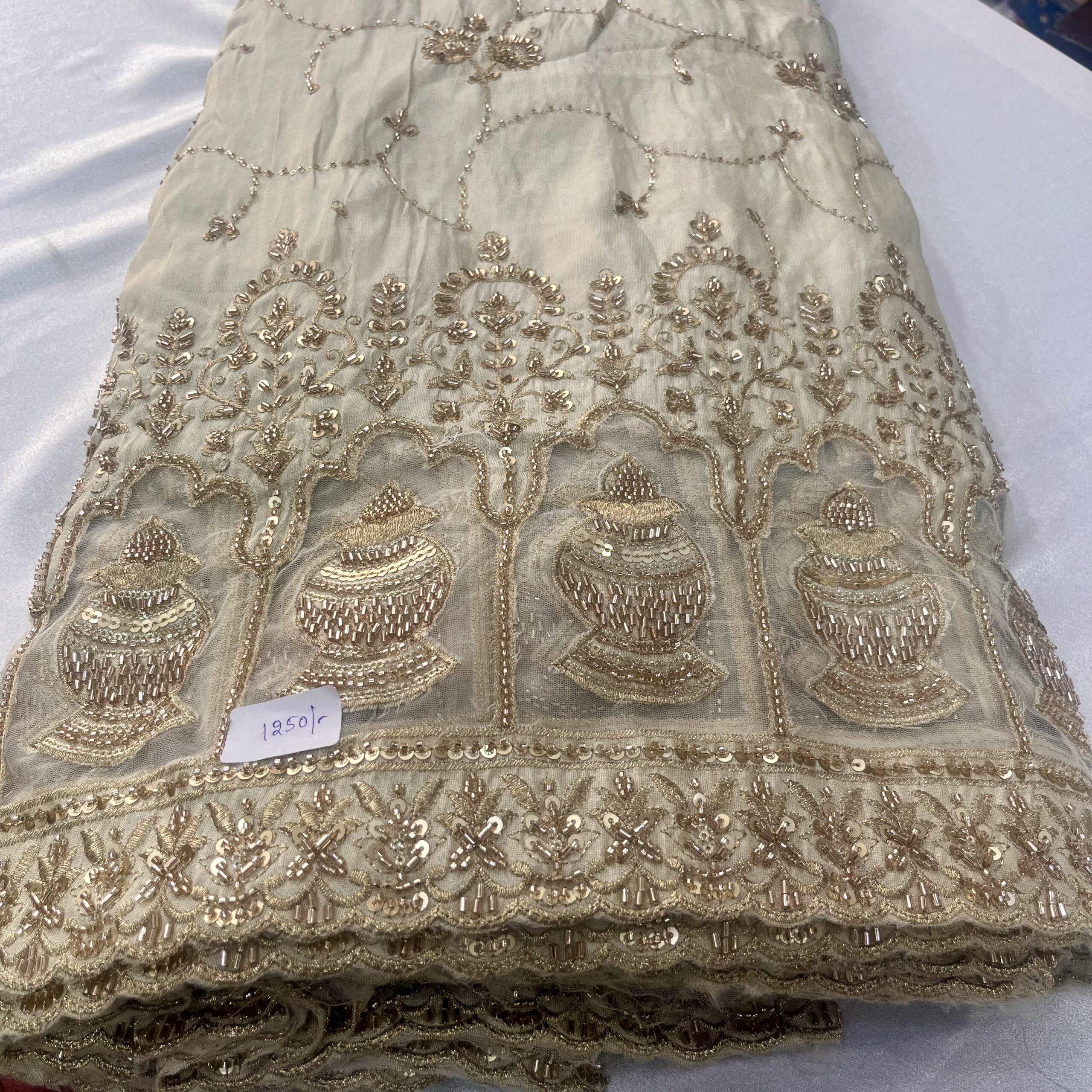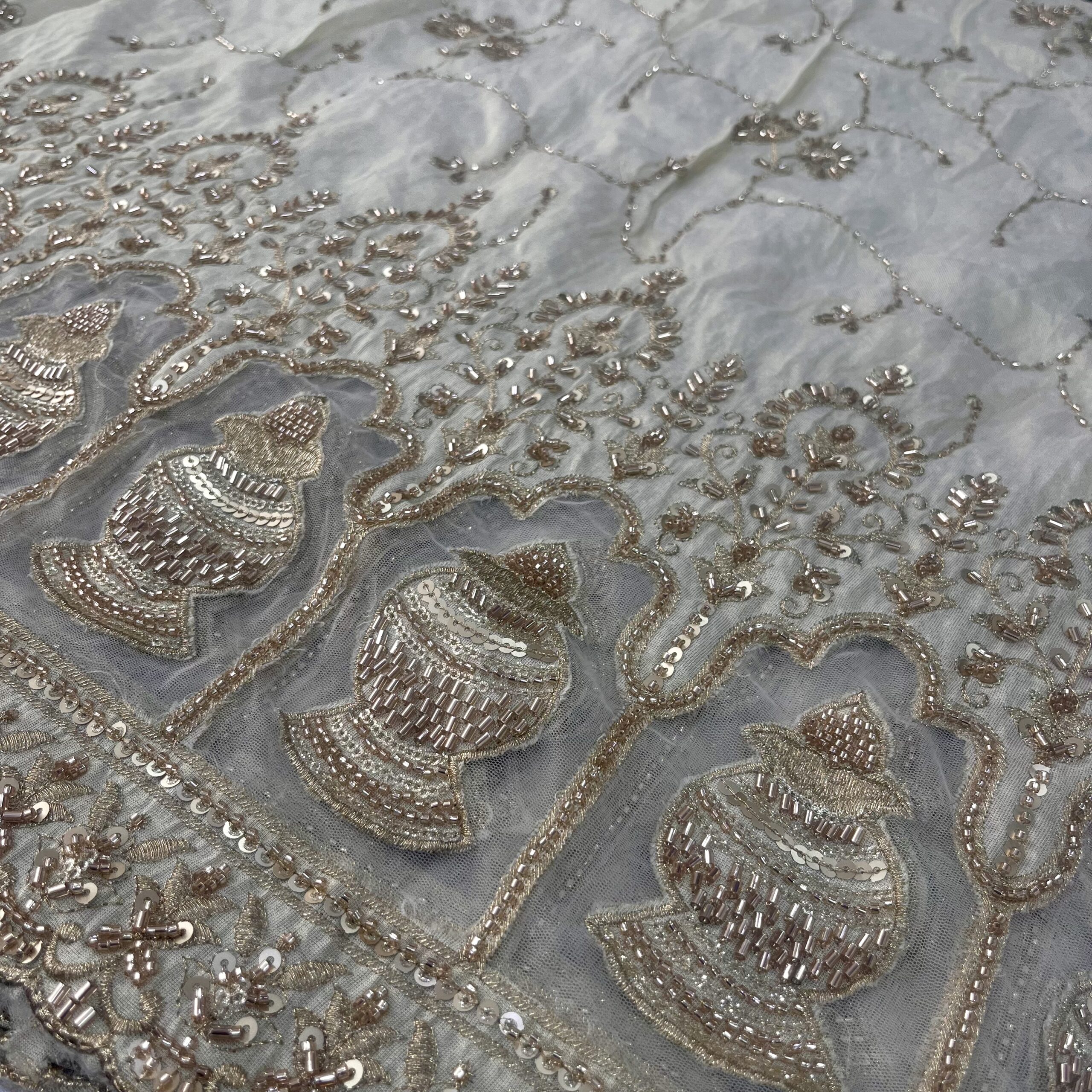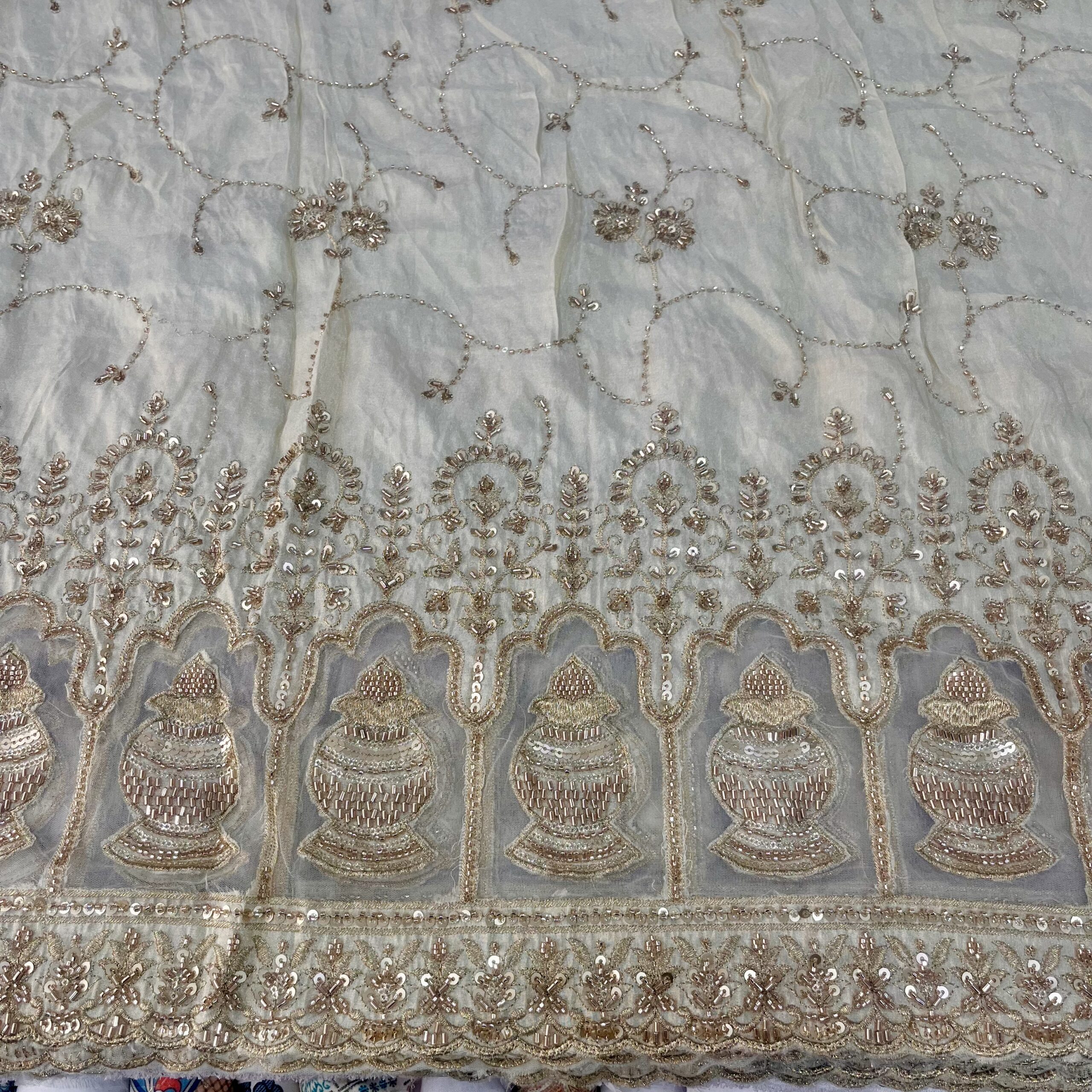 Pure Zari Tissue Handwork Dyeable Fabric with Kalash Design Daman & Beads Jaal Work – Perfect for Wedding & Festive Wear