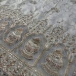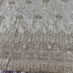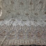 Add a royal touch to your collection with our Pure Zari Tissue Handwork Dyeable Fabric, featuring a heavy daman in elegant Kalash design with intricate net cutwork, beads jaal work, and hand embroidery all over the fabric. This luxurious and richly detailed fabric is perfect for designing exclusive wedding and festive outfits for both men and women.