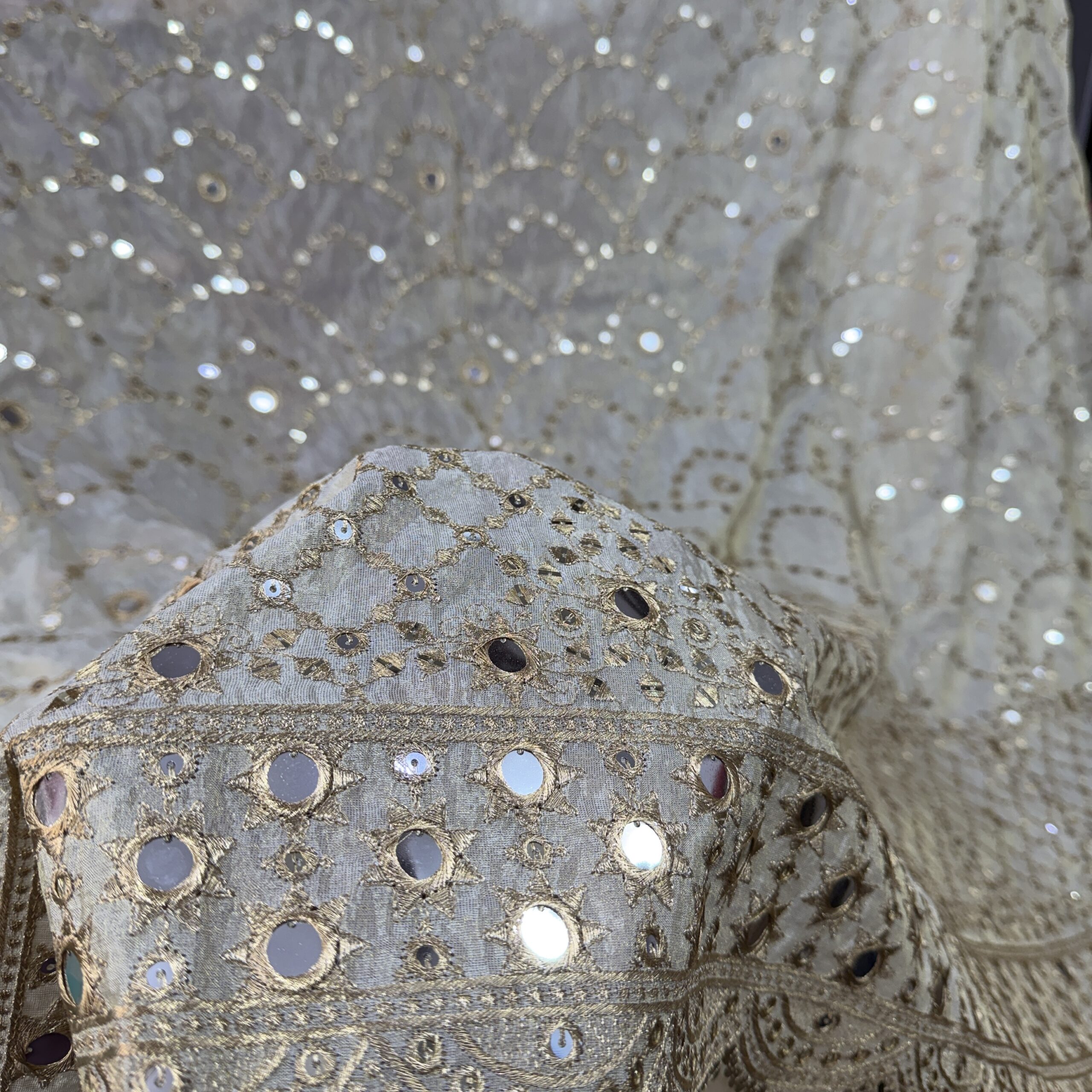 ✔ Faux Mirror Work with Sequins & Zari Embroidery