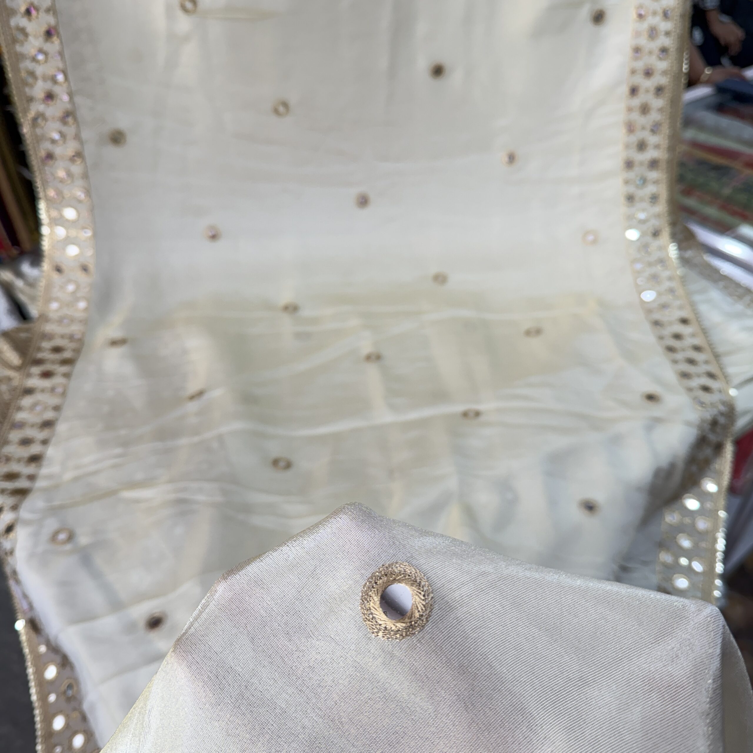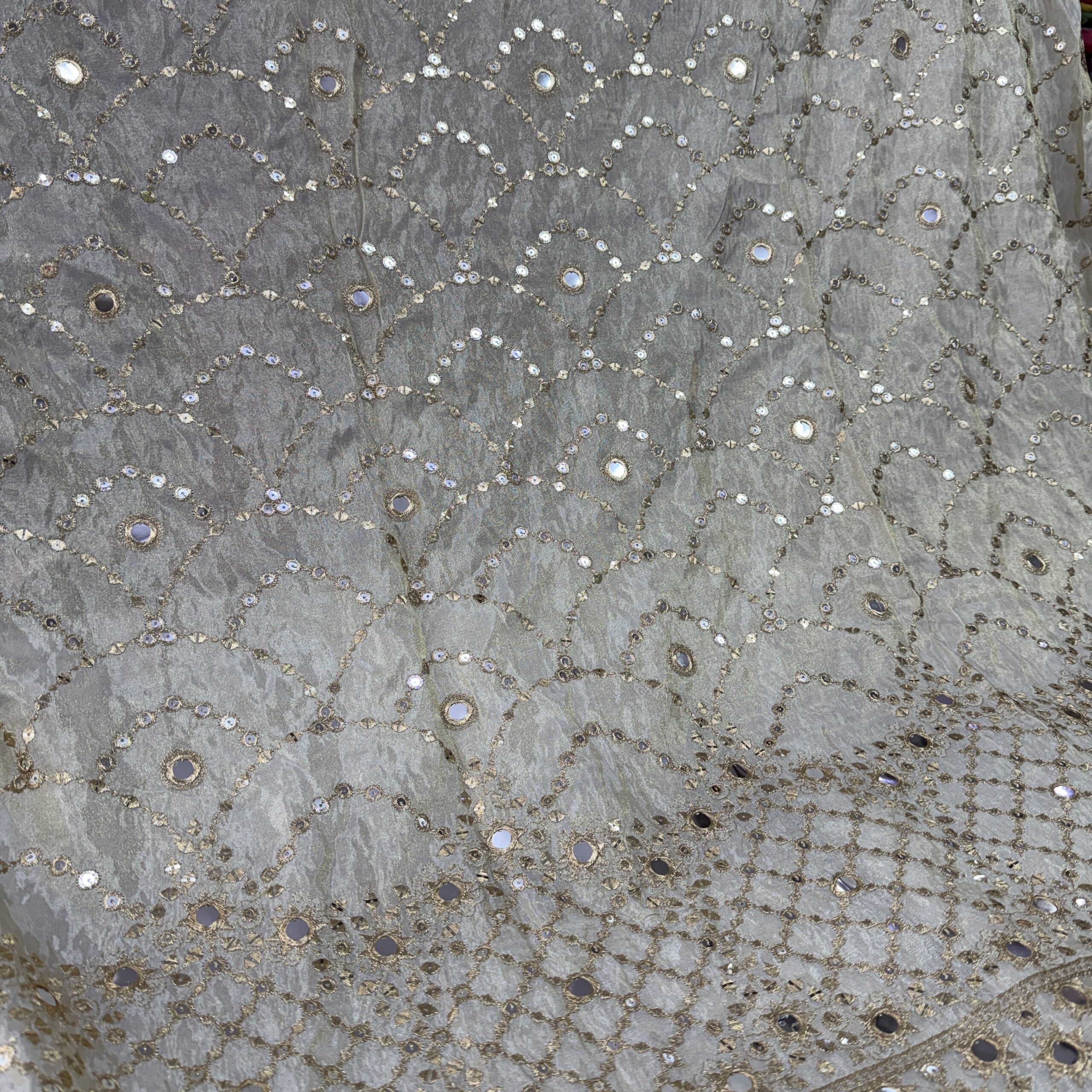 Pure Zari Tissue Dyeable Fabric with Faux Mirror & Sequins Work – Designer Wedding & Party Wear Fabric