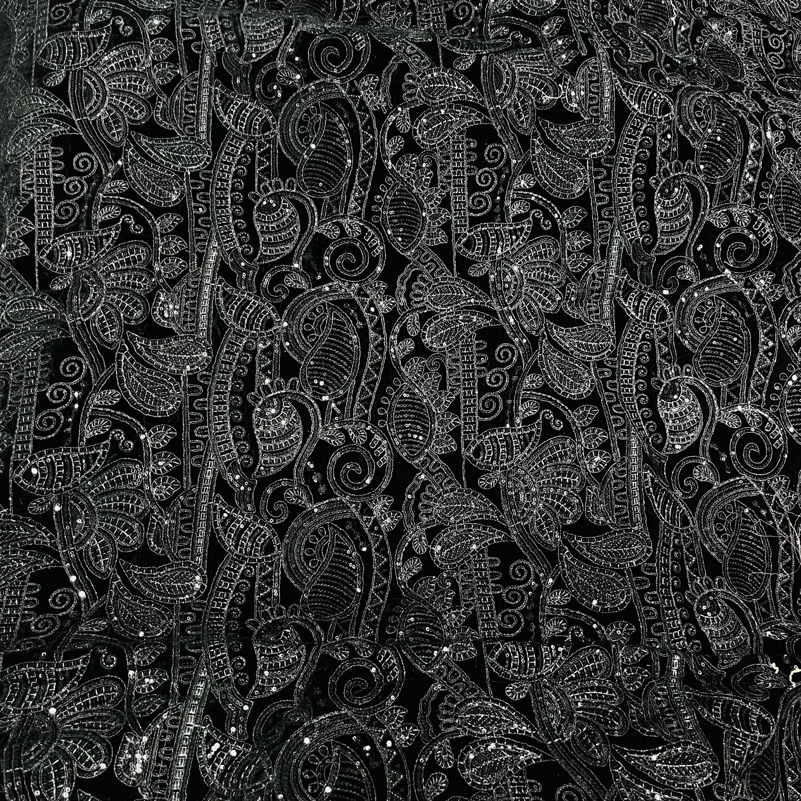 Velvet 9000 Fabric – Black | Heavy Allover Embroidery & Sequins | Premium Wedding Wear Fabric