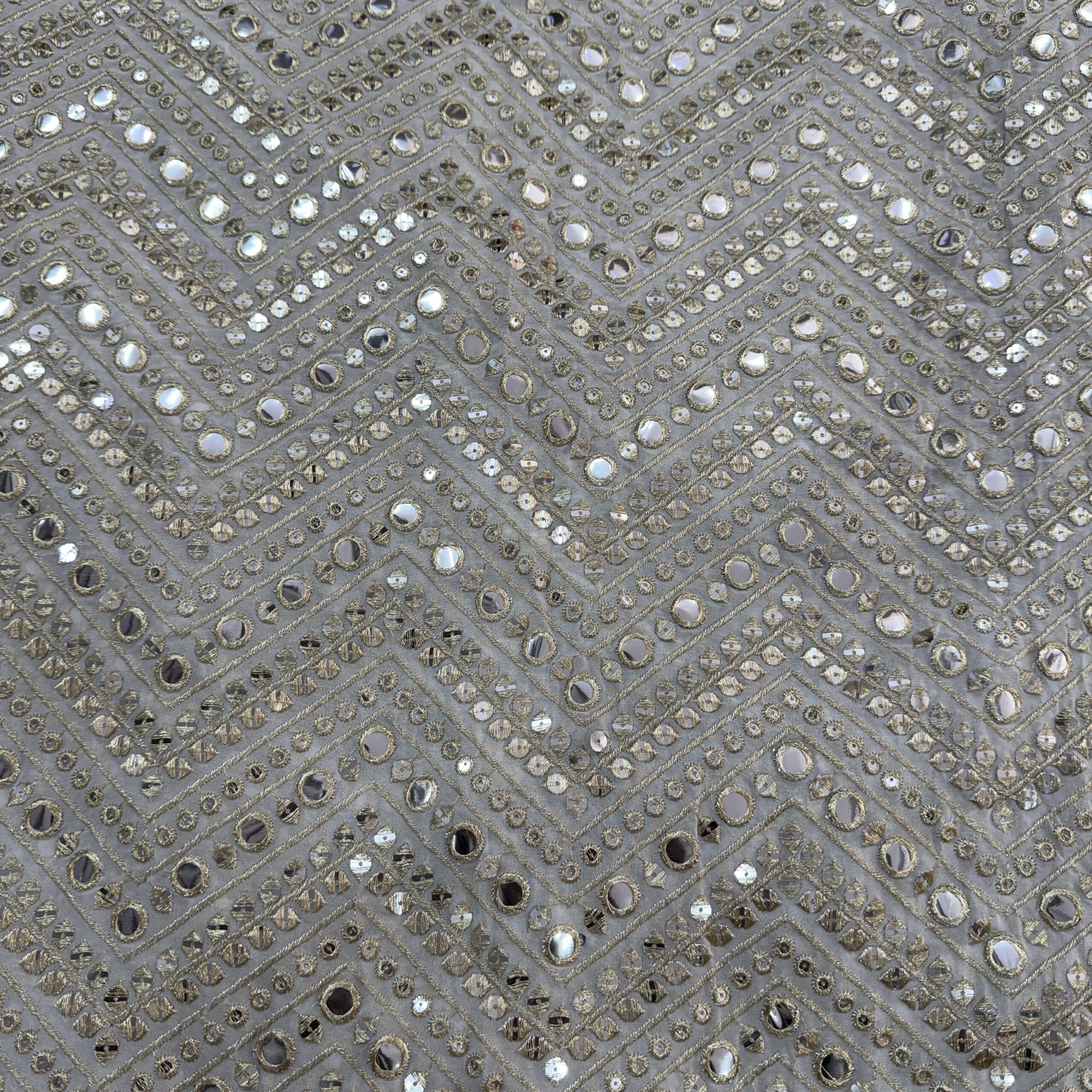 ✨ Viscose Georgette Dyeable Fabric with Faux Mirror & Zari Stripe Work ✨