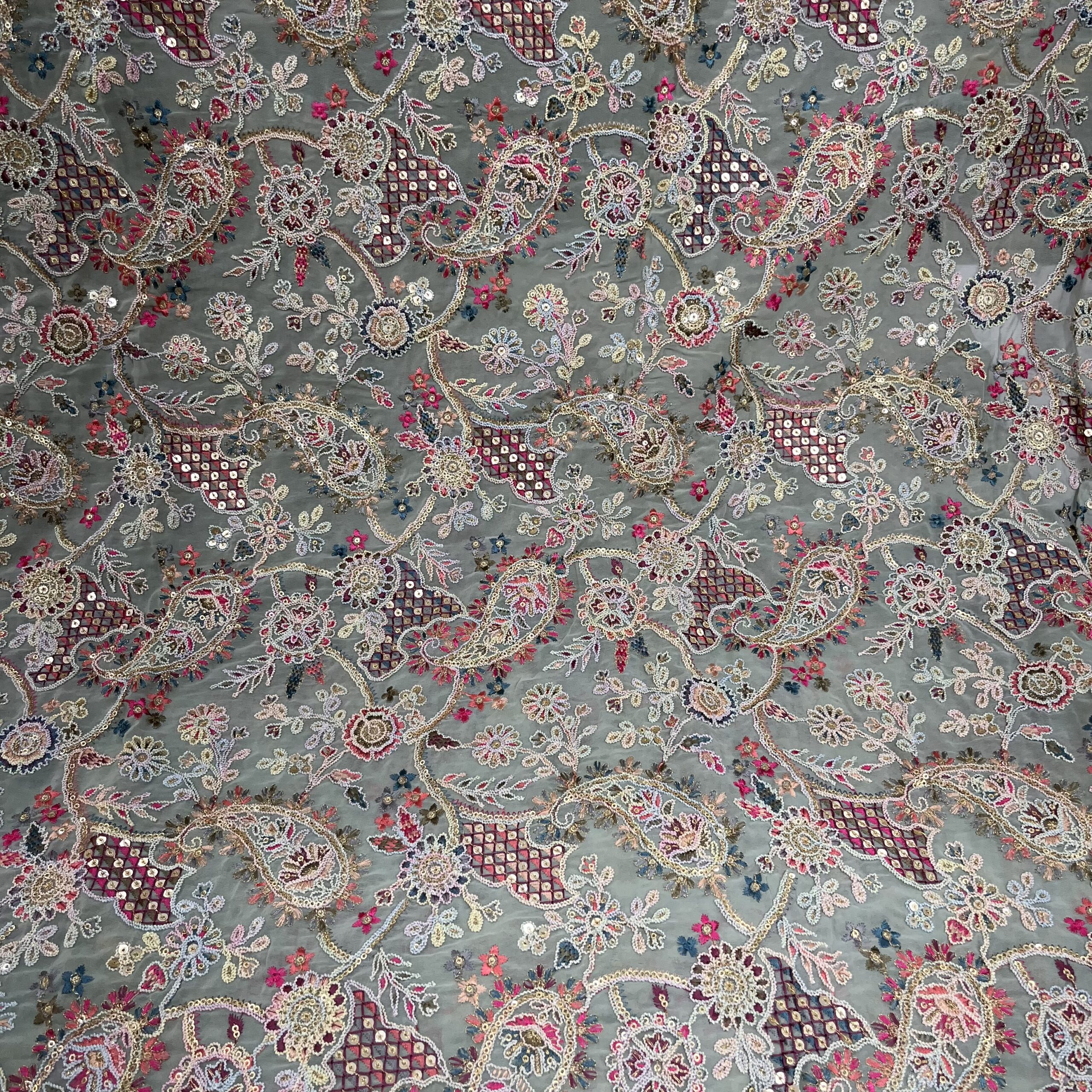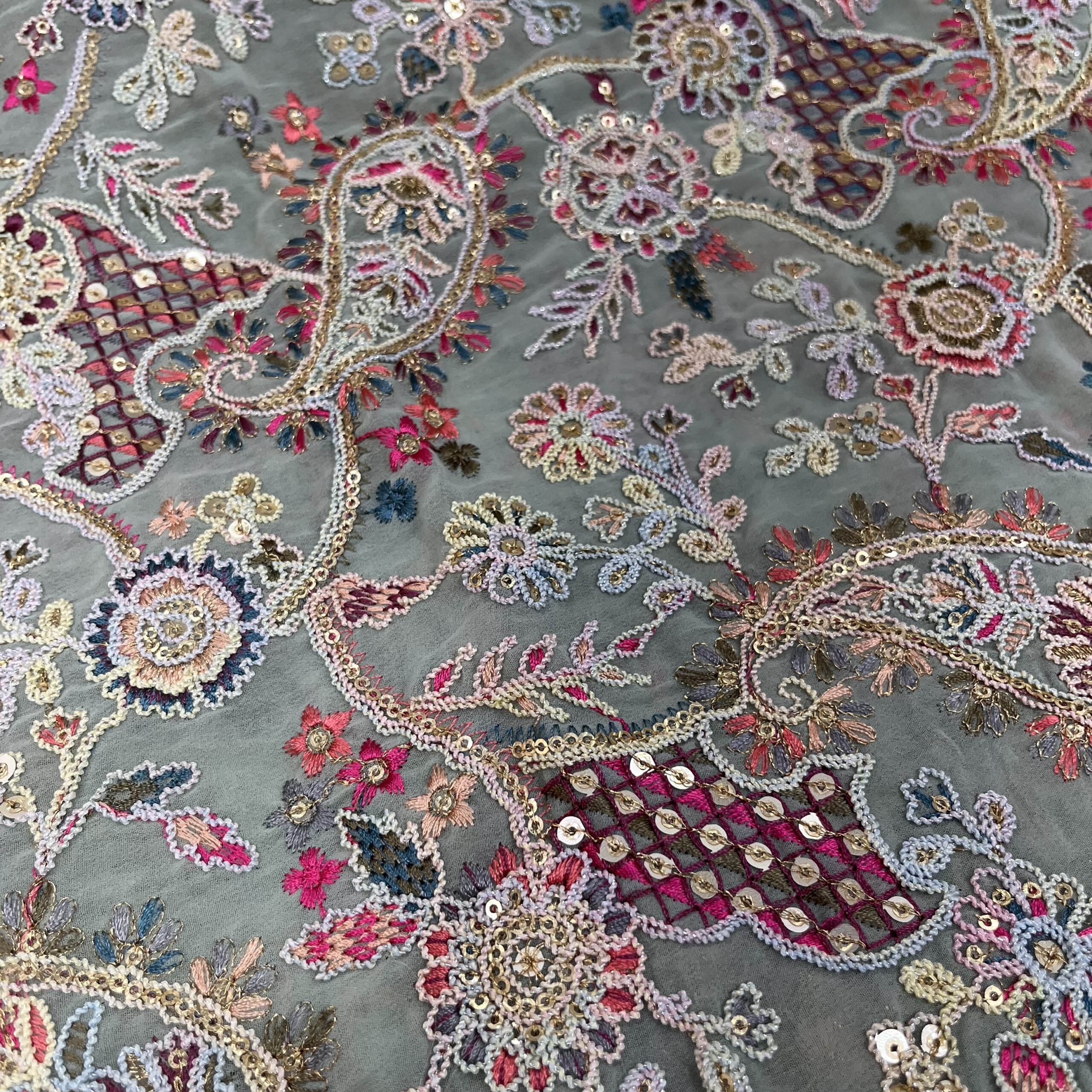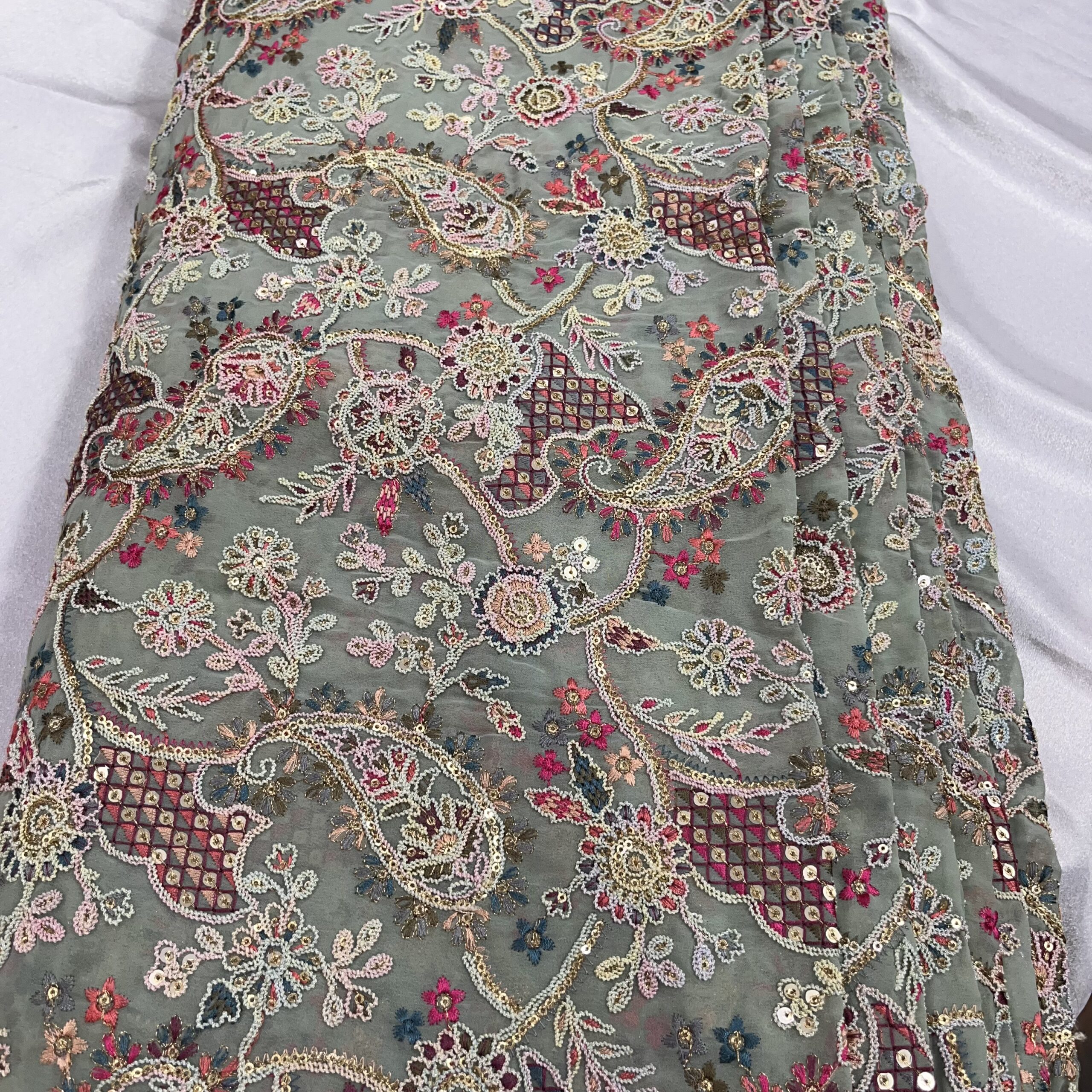 Elevate your ethnic collection with our Viscose Georgette Fabric, featuring multicolor embroidery, heavy coding design, thread and sequins detailing for a rich and elegant look. Available in beautiful pastel shades, this premium fabric is perfect for creating wedding, carnival, haldi, festive, and party wear outfits.